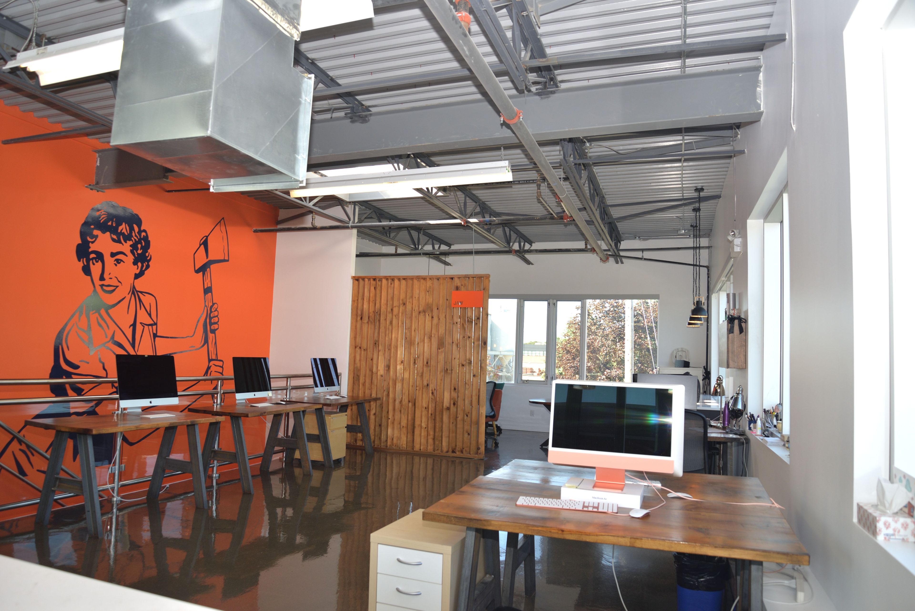 • Flexible layout can work as offices or an open showroom as needed.