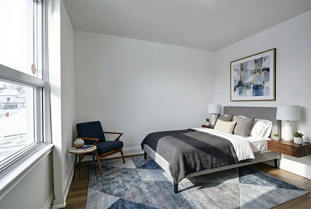 • Bright, spacious rooms with no carpet for easy maintenance.