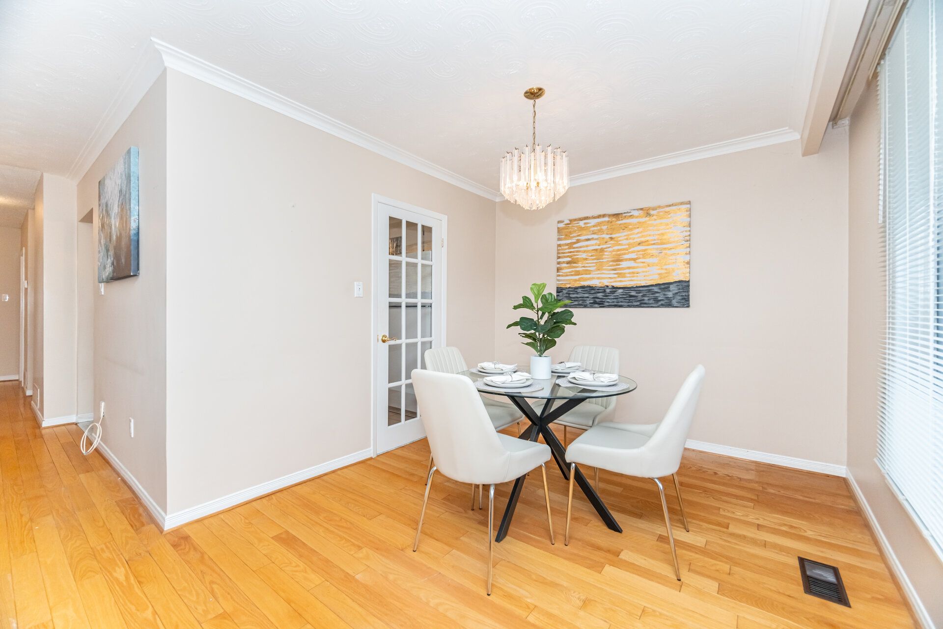 • Hardwood flooring in living and dining areas for easy cleaning.
