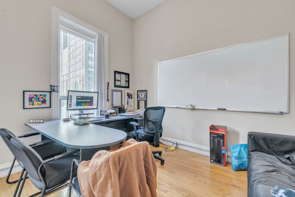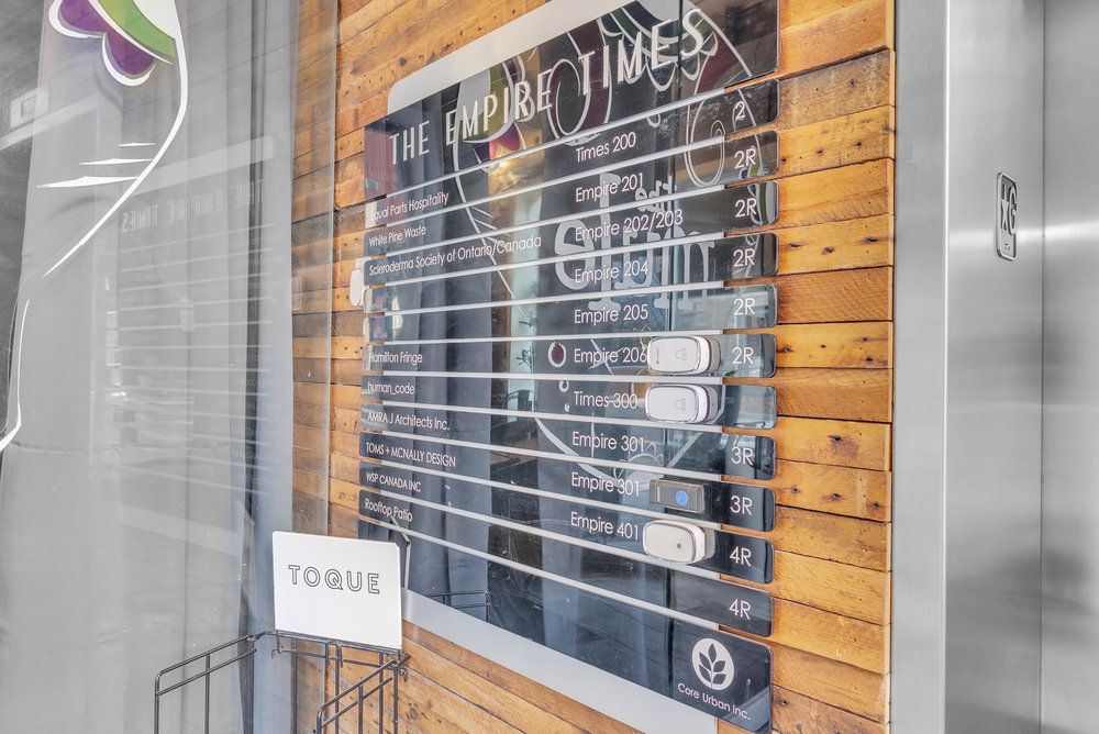 An exceptional turnkey office opportunity in the highly sought-after empire times building, ideally situated in the heart of the king william restaurant district. Surrounded by vibrant new developments and renowned local destinations, including the mule, the french, the diplomat, and berkeley north, this prime location offers outstanding visibility and an unmatched urban atmosphere. Through the thoughtful integration of two historic buildings, owner and developer core urban has created one of hamilton's leading hubs for professional and hospitality spaces. Enter via the prominent king william street entrance and ascend to the third floor by a striking, glass-walled, two-sided elevator that opens directly into the suite. The office features a functional and modern layout, including an open-concept bullpen work area, a glass-enclosed boardroom, kitchenette, and two private offices. Secure, fob-controlled elevator access ensures that entry is limited to your staff and invited clients, providing both privacy and peace of mind. This signature location offers immediate access to the newly-renovated td coliseum restaurants, financial institutions, courthouses, public transit, and a wide array of downtown amenities. Available today in one of hamilton's most distinguished commercial buildings. Note: furniture shown in photography belongs to existing tenant and not available for use. Square footage provided by landlord.