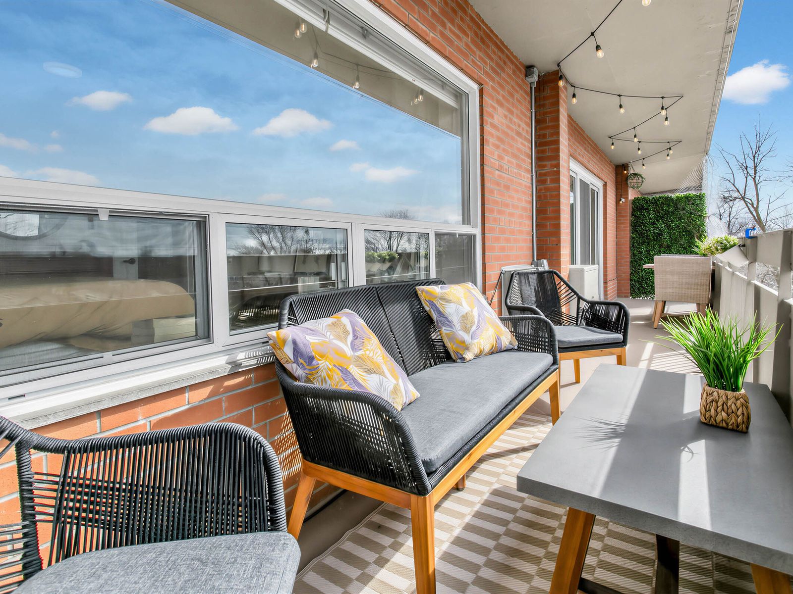 • Generous bedroom, updated bath, and large private balcony for relaxation.