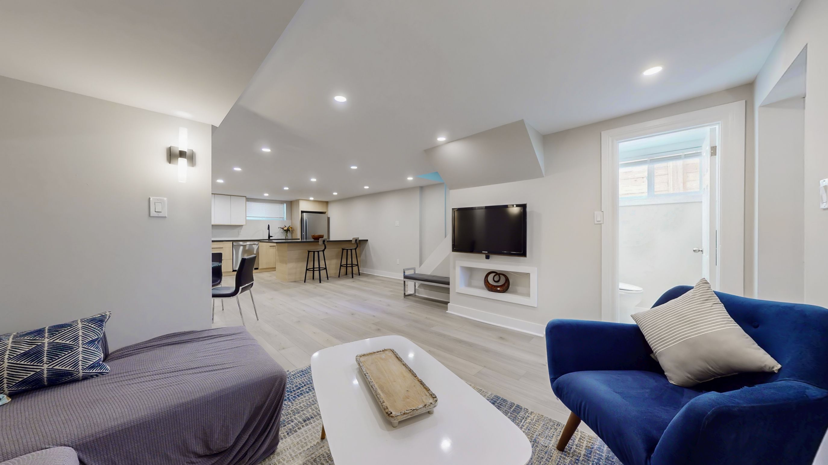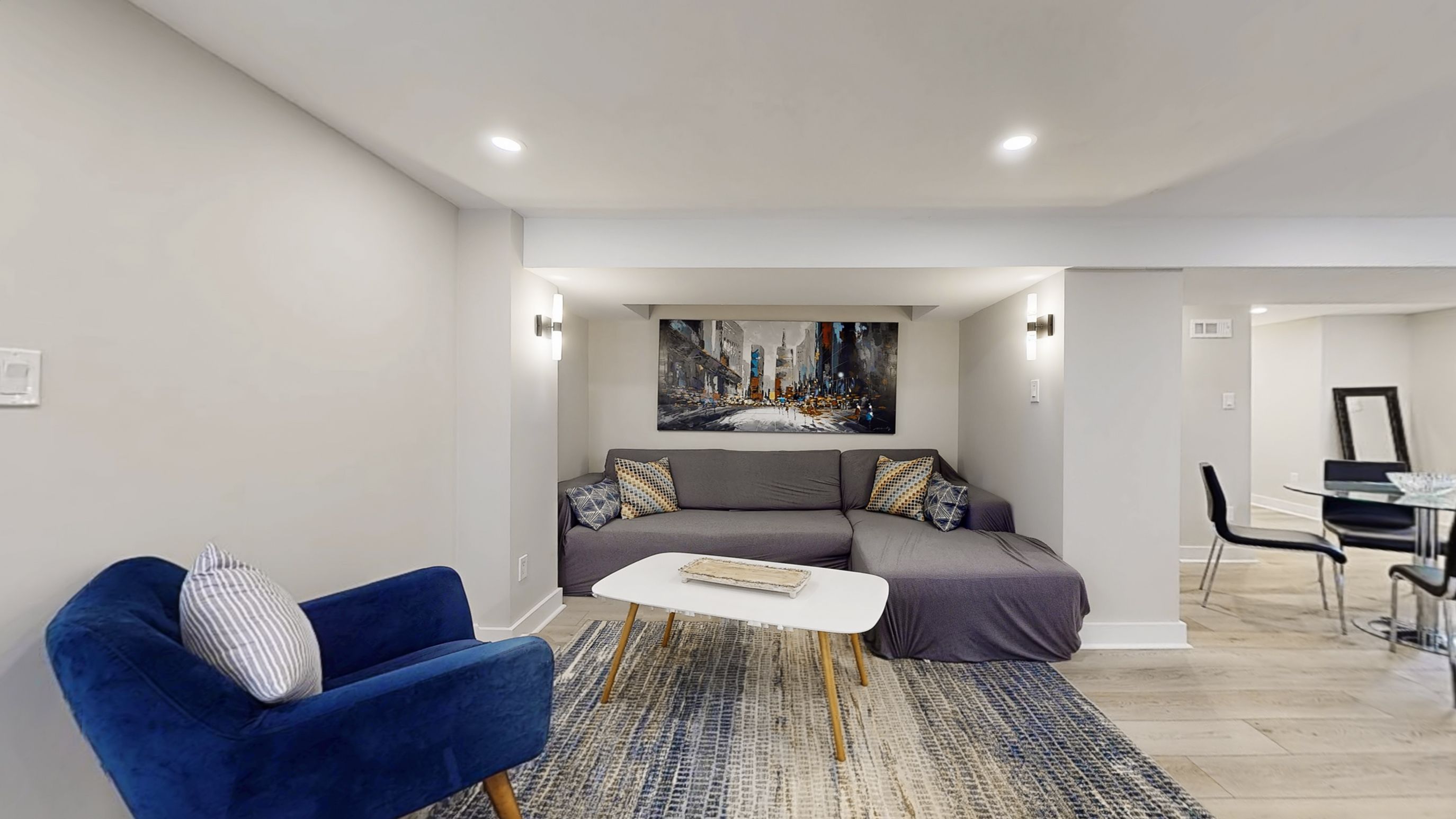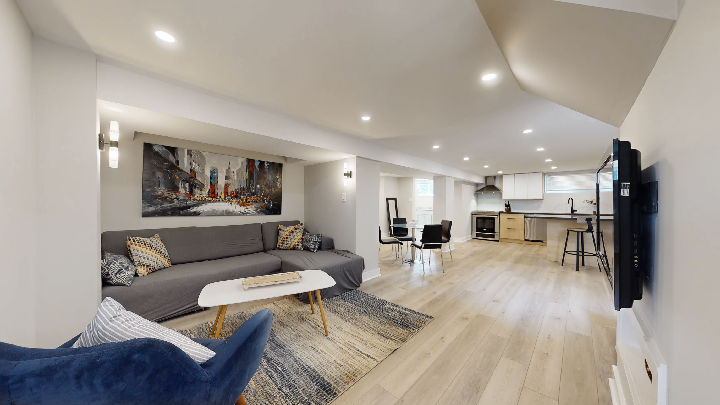 Elegant & spacious 1-bedroom retreat in etobicoke fully furnished, 1,100 sq. Ft. ! Welcome to your private oasis at 41 lesmar dr, etobicoke a beautifully furnished, self-contained one-bedroom suite offering over 1,100 sq. Ft. Of luxurious living space. Nestled in a serene, upscale neighborhood, this expansive retreat is designed for comfort, style, and convenience. Step inside to discover an open-concept layout bathed in natural light, featuring elegant furnishings and modern finishes. The generous living area invites relaxation with plush seating with a pull out sofa bed and tasteful décor, while the fully equipped kitchen boasts stainless steel appliances, quartz counter and large island with ample storage, and everything you need to prepare gourmet meals. The spacious bedroom is a haven of tranquility, complete with a cozy queen-sized bed, premium linens, and ample closet space. A beautifully appointed bathroom offers a spa-like experience with contemporary fixtures and a soothing ambiance. Additional highlights include: private entrance for ultimate privacy, in-suite laundry for added convenience, fiber internet & smart tv for entertainment, 2 dedicated parking available. Close proximity to parks, shopping, transit, and major highways. 41 lesmar dr is a practical furnished suite.