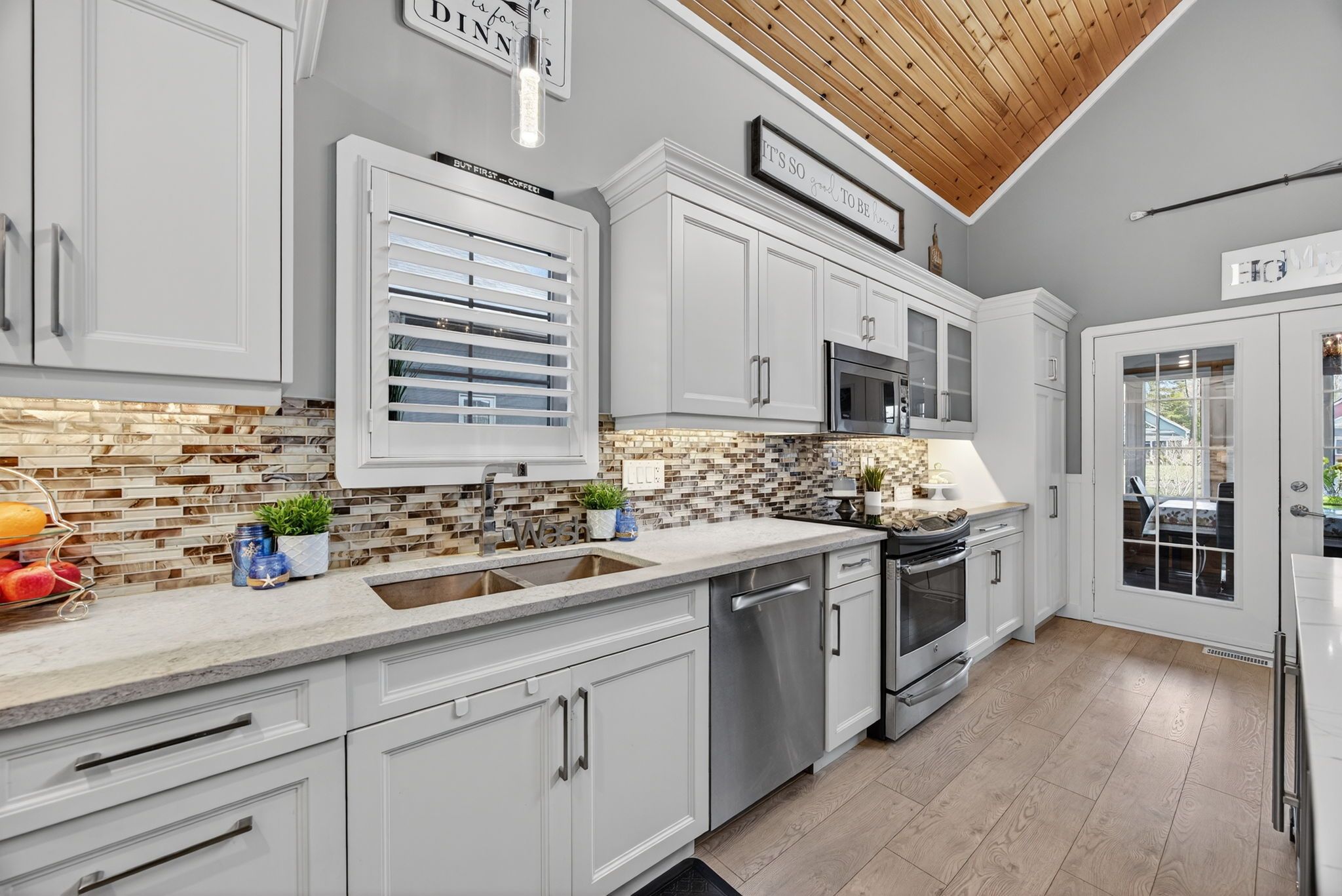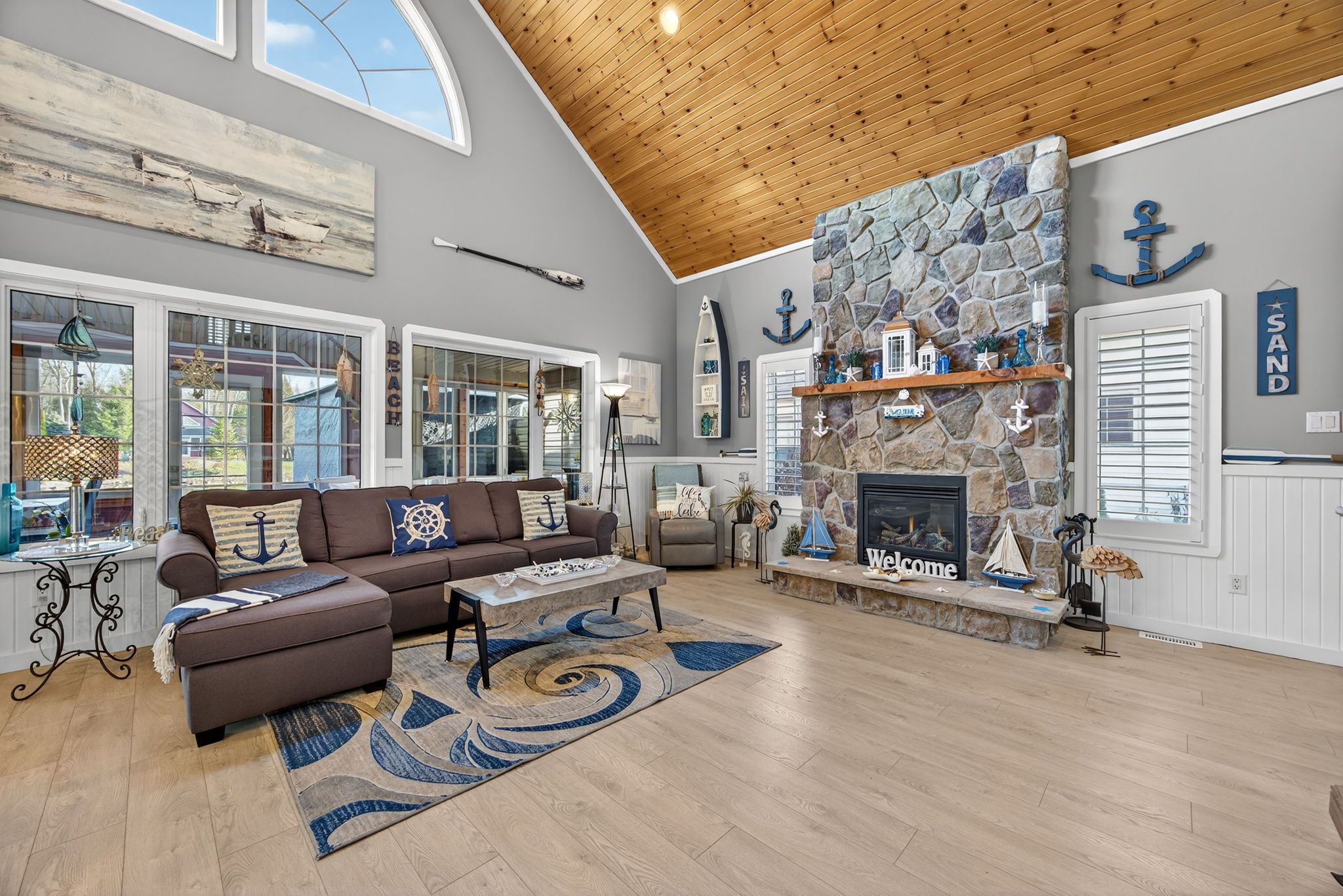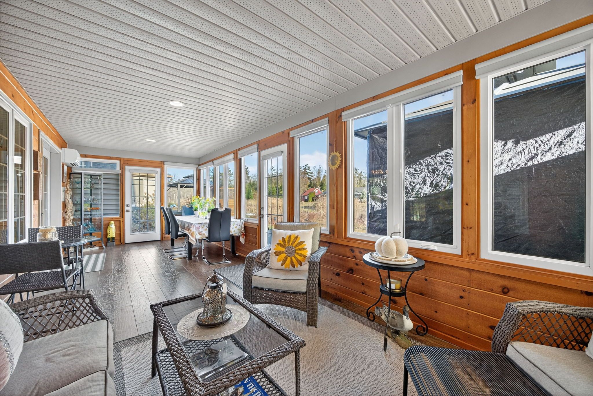 Welcome to 41 madawaska trail: a beautifully renovated, open-concept 3-bed, 2-bath year-round home in the gated wasaga countrylife resort, featuring high-end finishes, a gourmet eat-in kitchen, a grand gas fireplace, and a 4-season sunroom overlooking a serene pond. Just steps from the sandy beaches of georgian bay and surrounded by resort amenities including 5 pools, sports courts, a rec centre, and more, this immaculate property offers the perfect blend of luxury, comfort, and lifestyle living.