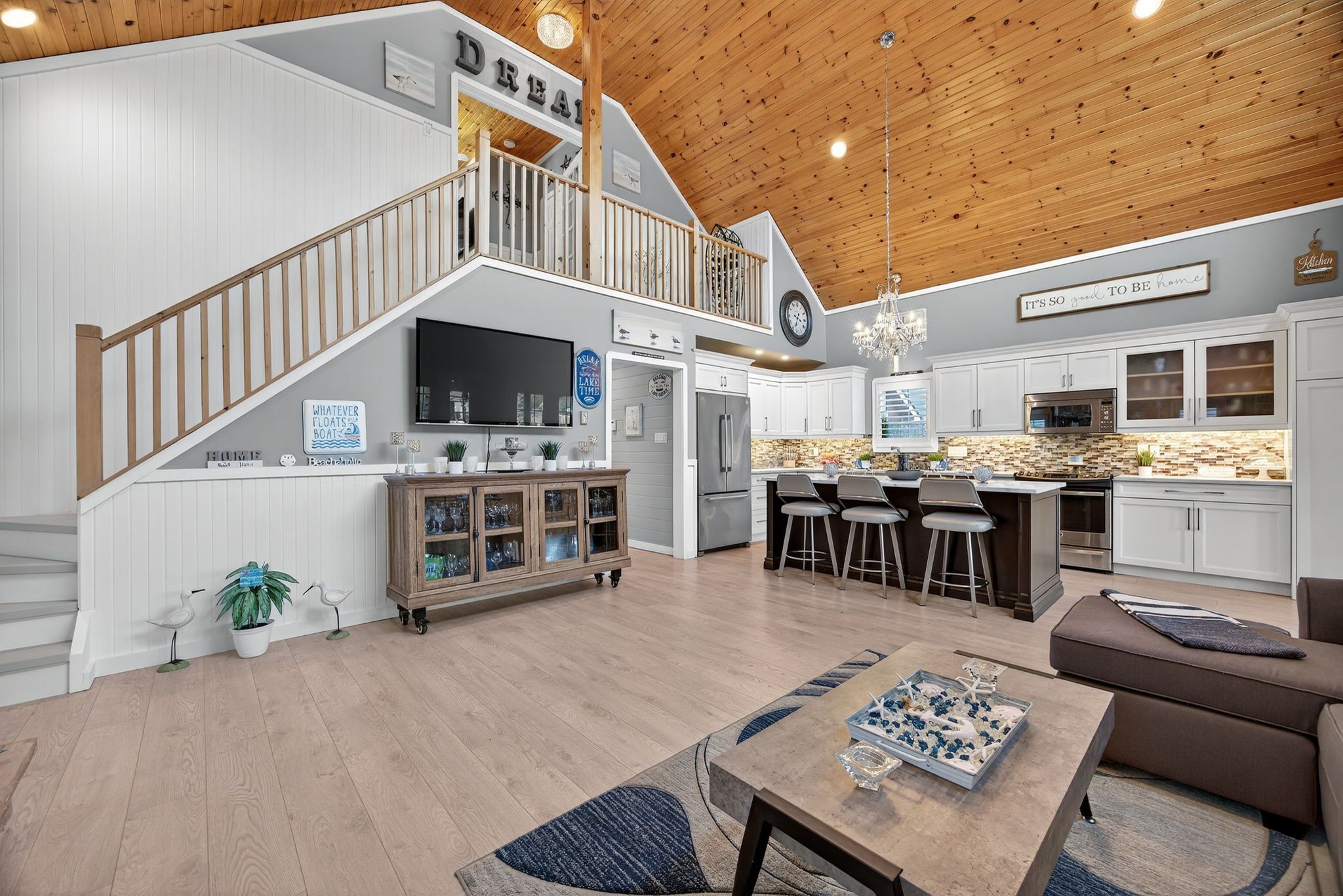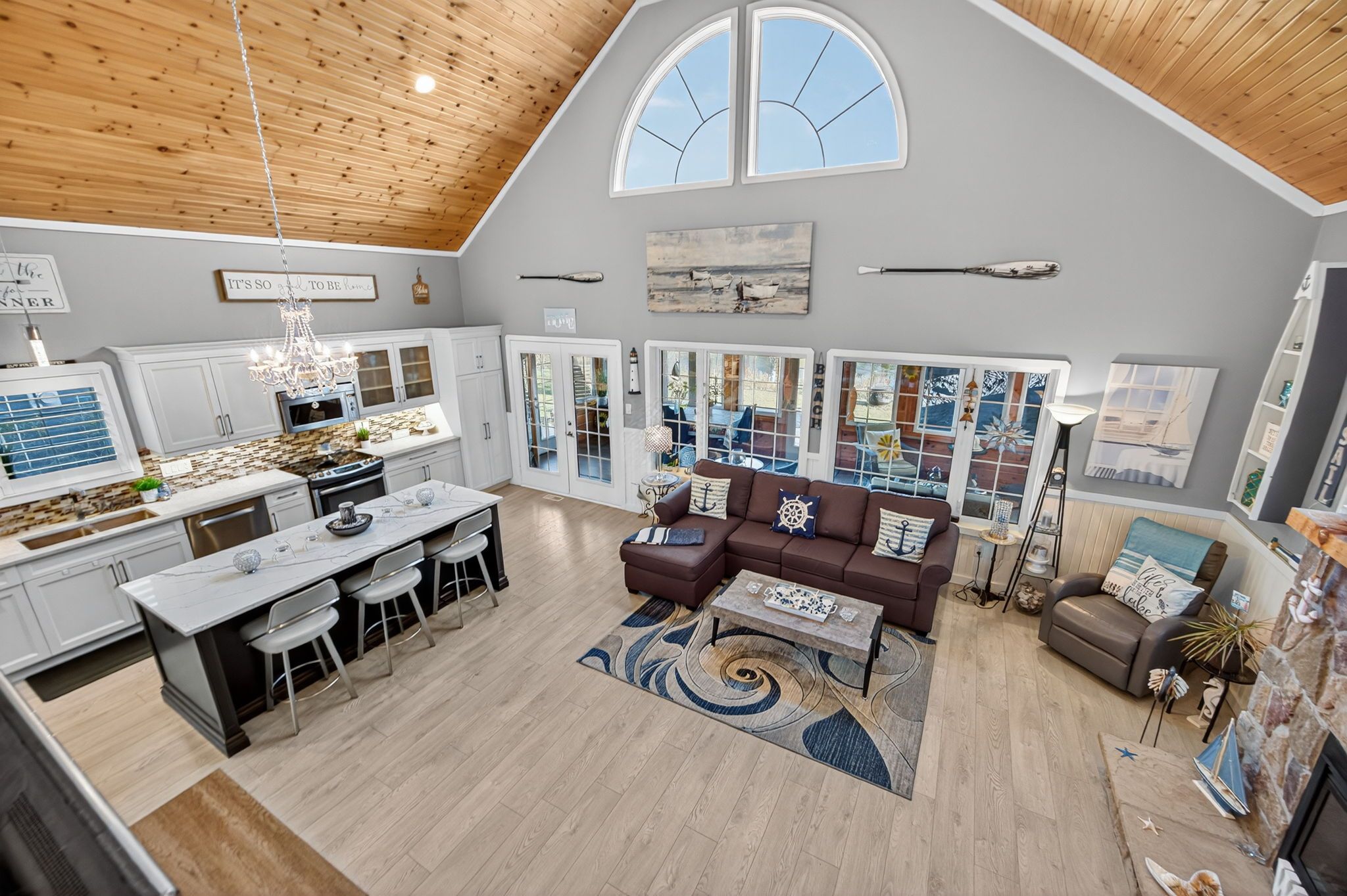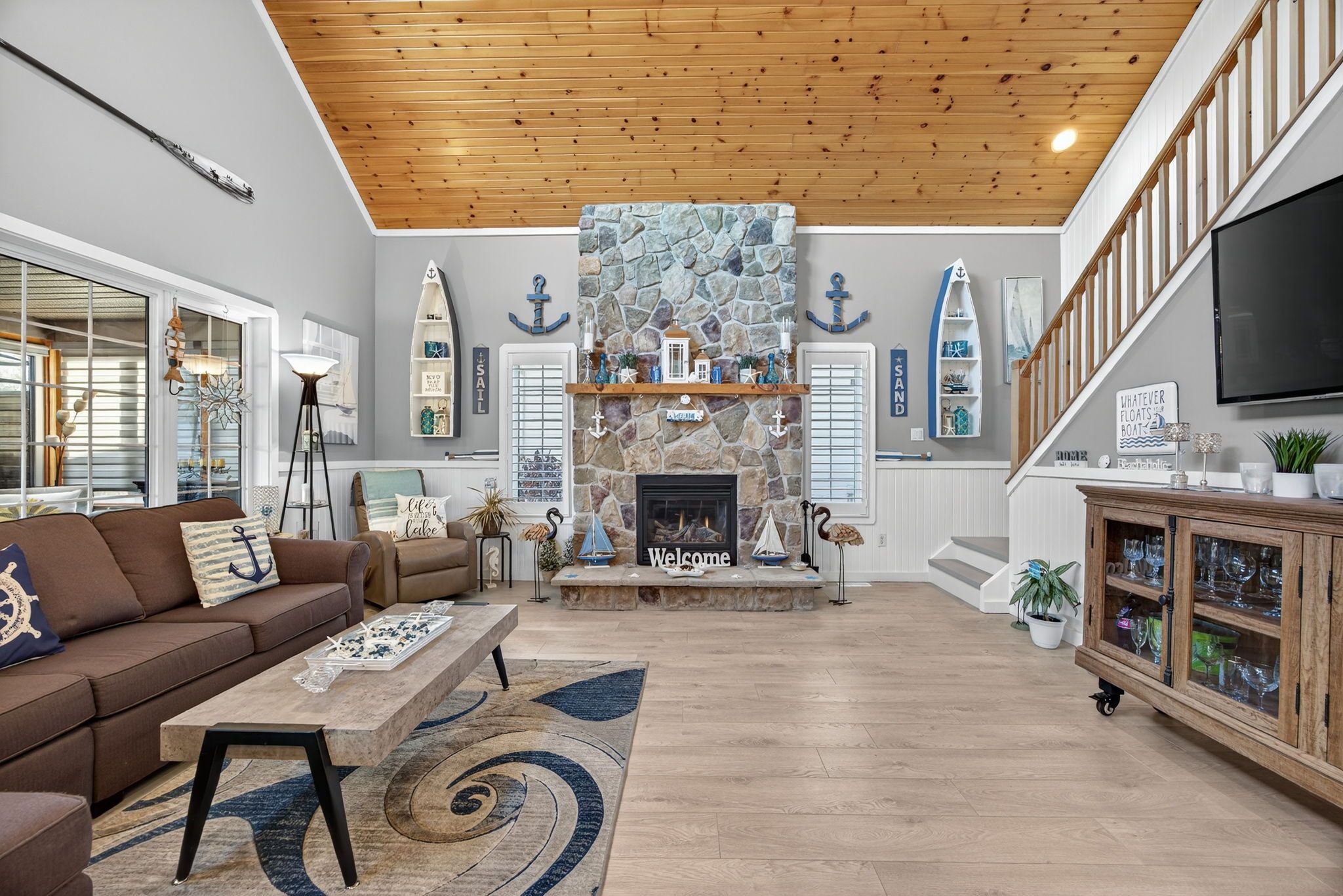 Welcome to 41 madawaska trail: a beautifully renovated, open-concept 3-bed, 2-bath year-round home in the gated wasaga countrylife resort, featuring high-end finishes, a gourmet eat-in kitchen, a grand gas fireplace, and a 4-season sunroom overlooking a serene pond. Just steps from the sandy beaches of georgian bay and surrounded by resort amenities including 5 pools, sports courts, a rec centre, and more, this immaculate property offers the perfect blend of luxury, comfort, and lifestyle living.