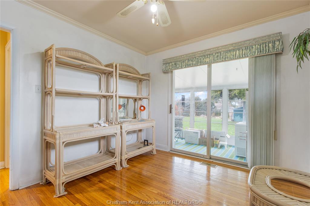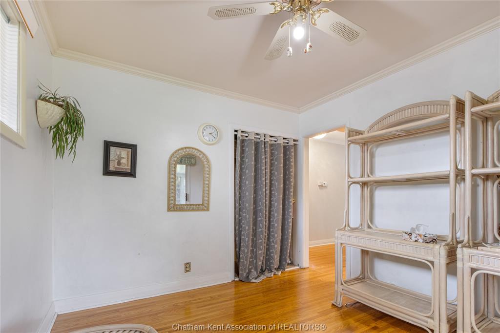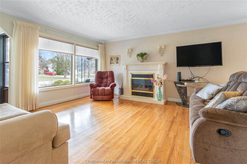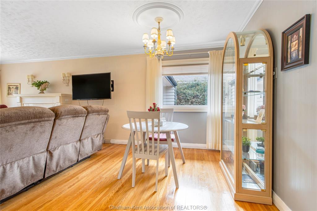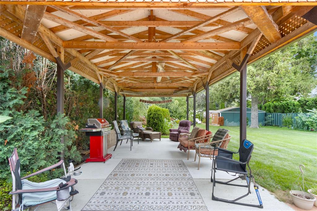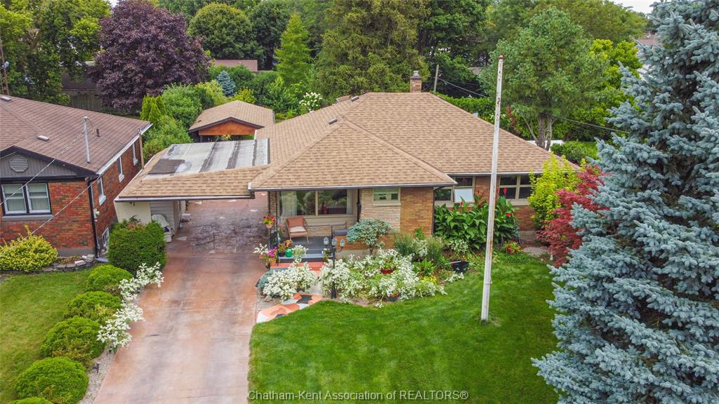 Welcome to this charming bungalow on chatham’s desirable north side, ideally located on a quiet dead-end street just minutes from schools, shopping, and everyday conveniences. Offering 2 bedrooms and 2 full bathrooms, this home stands out with its inviting curb appeal, thoughtful updates, and a backyard setting that feels more like a private retreat than a city lot. Inside, you’ll find hardwood floors throughout the main living areas and a gas fireplace that adds both warmth and character to the living room. The bathroom has been updated with tasteful finishes, blending nicely with the home’s timeless style. The basement extends the living space with a large rec room, a built-in sauna, plenty of storage, and lots of room to tailor the space to your needs, whether that’s a home gym, hobby area, or just a comfortable spot to unwind. Step outside and you’ll find a large yard designed for both function and leisure. A large workshop provides plenty of space for hobbies or storage, while a concrete pad with a covered gazebo creates the perfect spot for summer gatherings. The oversized sunroom extends your living space, blending indoor comfort with views of the beautiful backyard. This property is the perfect blend of location, comfort, and lifestyle, offering the convenience of city living with the feel of a private retreat. Call today!