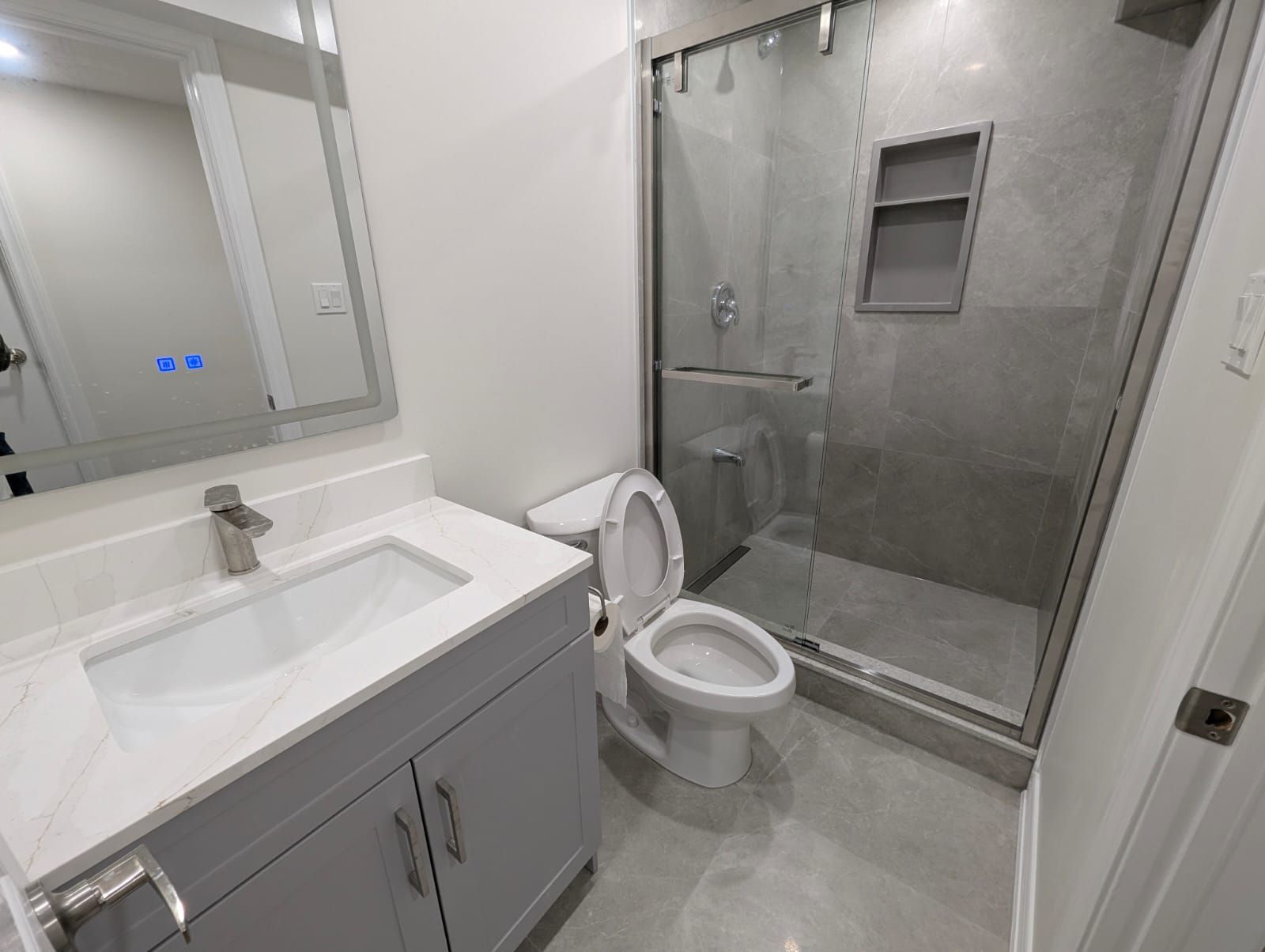 • Full bathroom equipped with a contemporary walk-in shower.