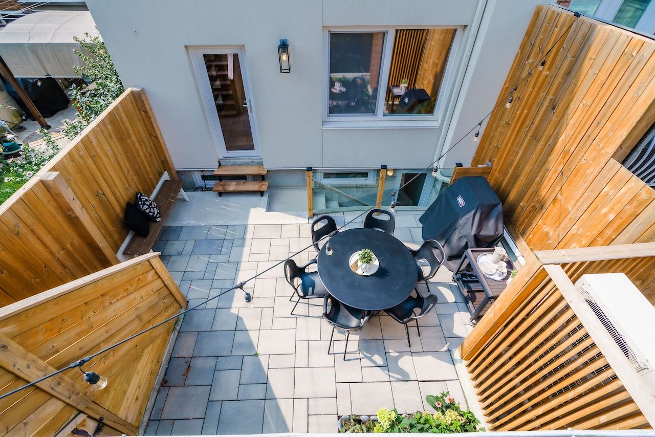 A rare certified passive home in queen west, this modern masterpiece is designed for both style and sustainability. Purpose-built to meet rigorous energy-efficiency standards, this ultra-low-cost home offers over 3,000 sq ft of above-ground living space, where sleek finishes and thoughtful details define an elevated urban lifestyle. The main floor welcomes you to a bright, open-concept layout featuring wide-plank hardwood floors, a statement staircase with glass railings, custom oak cabinetry, and designer led lighting throughout. The chef's kitchen is a true showstopper complete with integrated high-end appliances, stone countertops, dramatic backsplash, and an oversized island with seating. The adjoining family room offers a seamless indoor-outdoor connection with a walkout to the private back patio. Upstairs, soaring 9ft ceilings enhance the sense of space and light. The serene primary suite features a walk-through closet with built-ins, a spa-like 4-pc ensuite, and large windows overlooking a private terrace. This level also includes a second bedroom with its own ensuite and a full laundry room. The third floor offers a stunning secondary primary retreat with a luxurious 5-pc ensuite featuring a soaker tub, extensive closet space, and direct access to a private rooftop deck. An additional large bedroom with generous storage completes this level. Bathrooms throughout are finished with premium fixtures by gessi, toto, and nobili, complemented by floating vanities and wall-hung toilets. The lower level, with separate entrance, offers a spacious living and dining area, a 4-piece bath, and a generous bedroom-ideal for an in-law, guest, or nanny suite. A detached two-car garage wired for an ev charger and a rooftop terrace further enhance the outdoor lifestyle. Steps to the shops, cafes, and restaurants of queen west and ossington, and minutes to the future king-liberty go station, this exceptional home delivers a rare blend of luxury, and urban convenience.