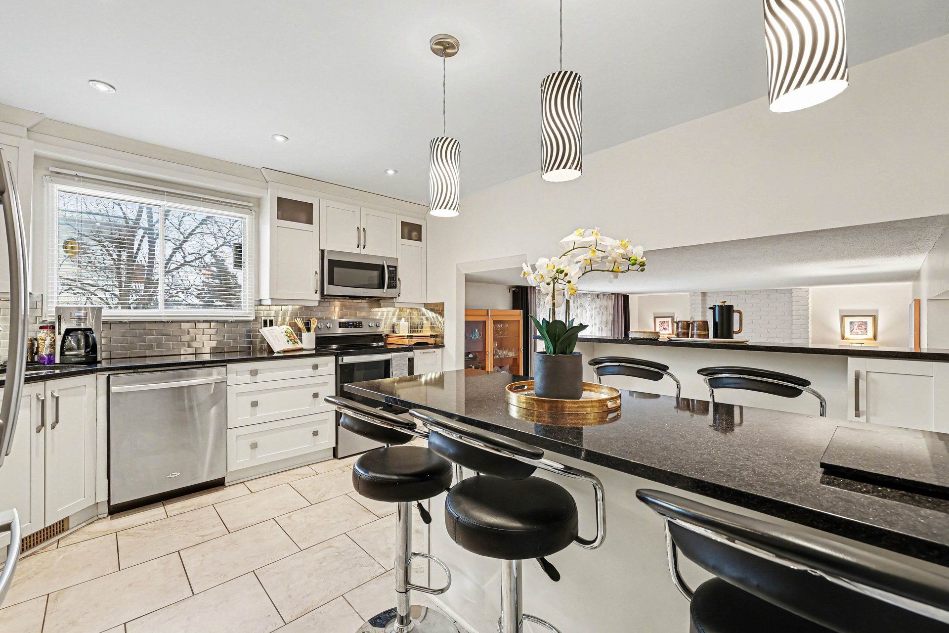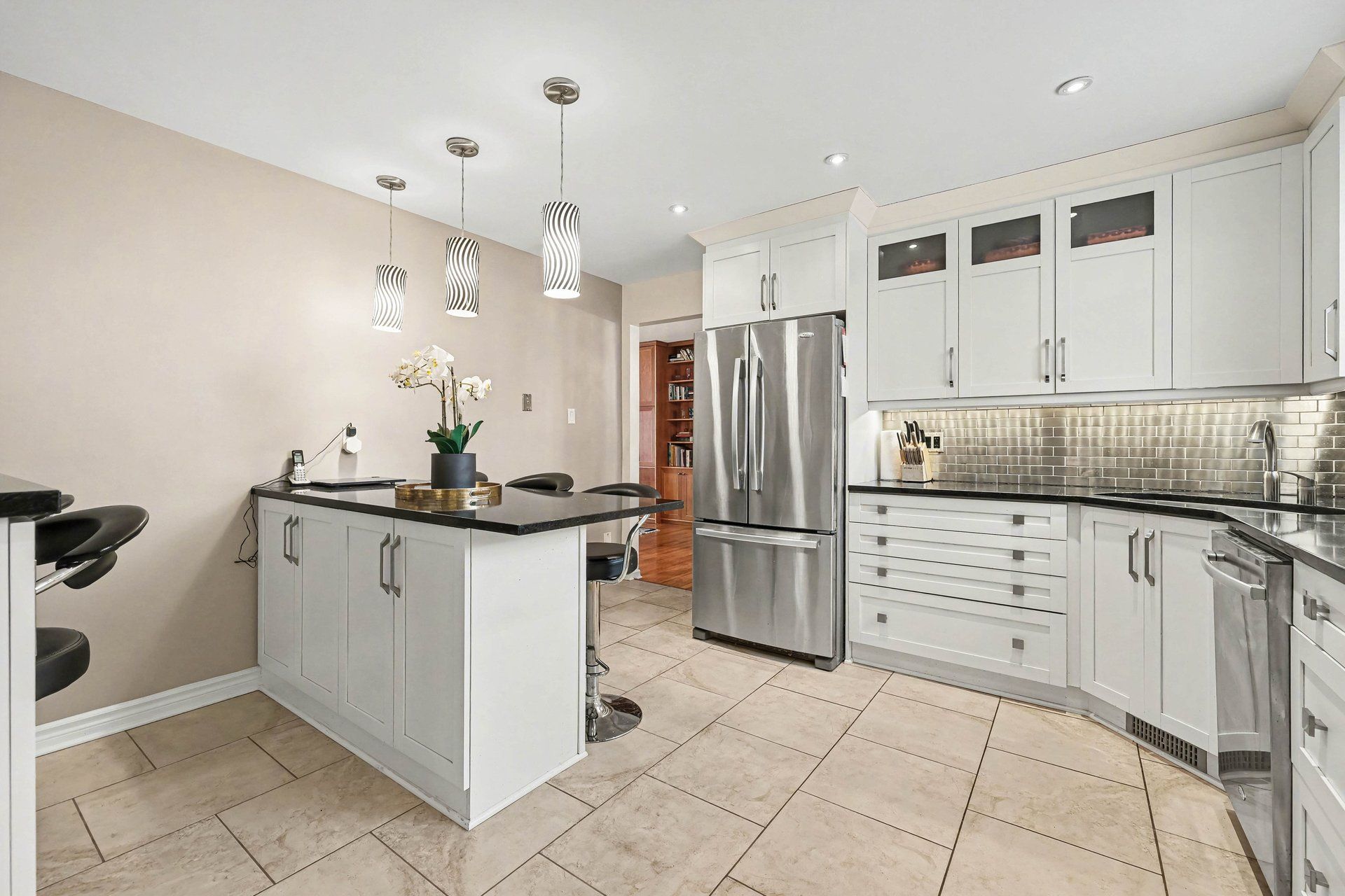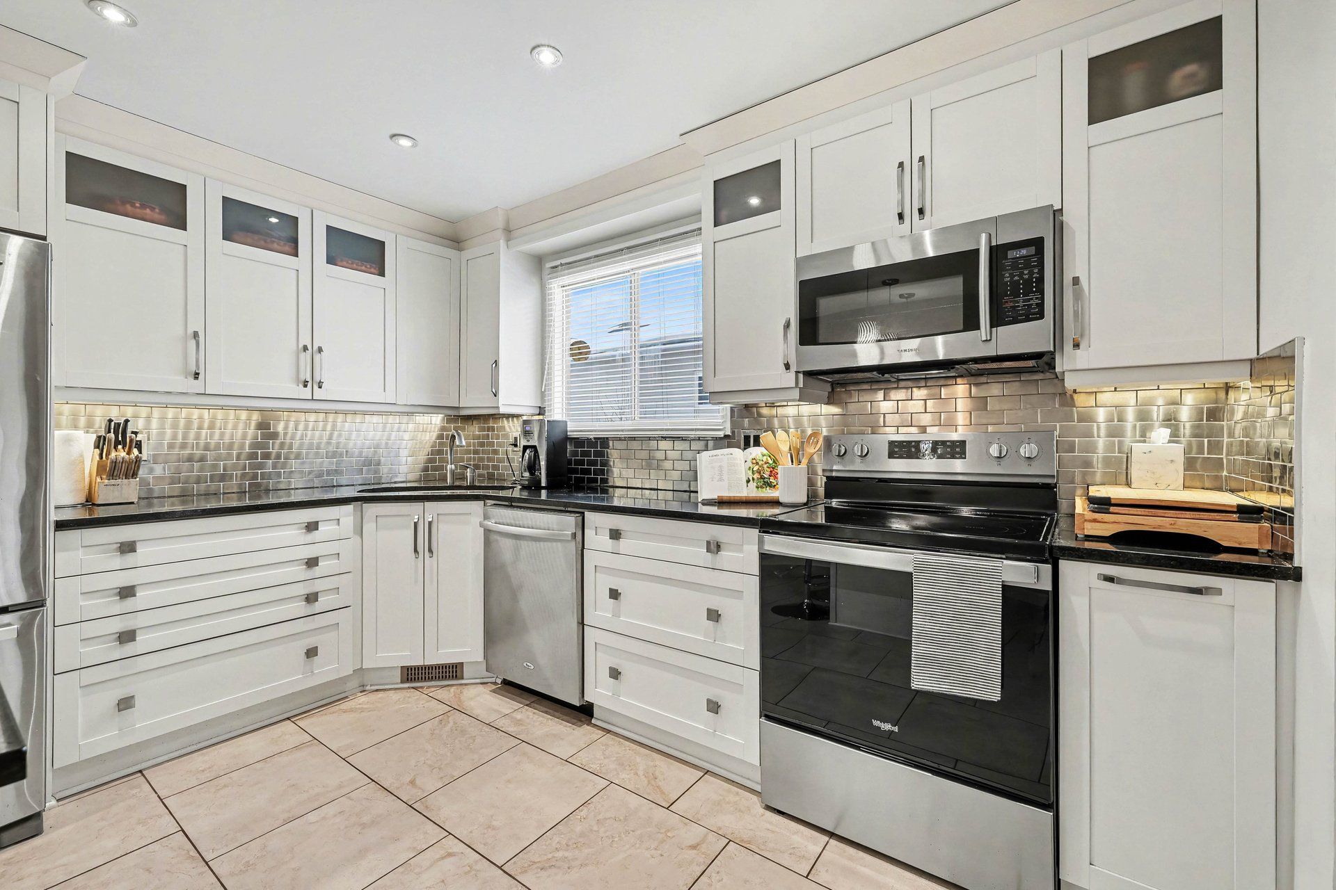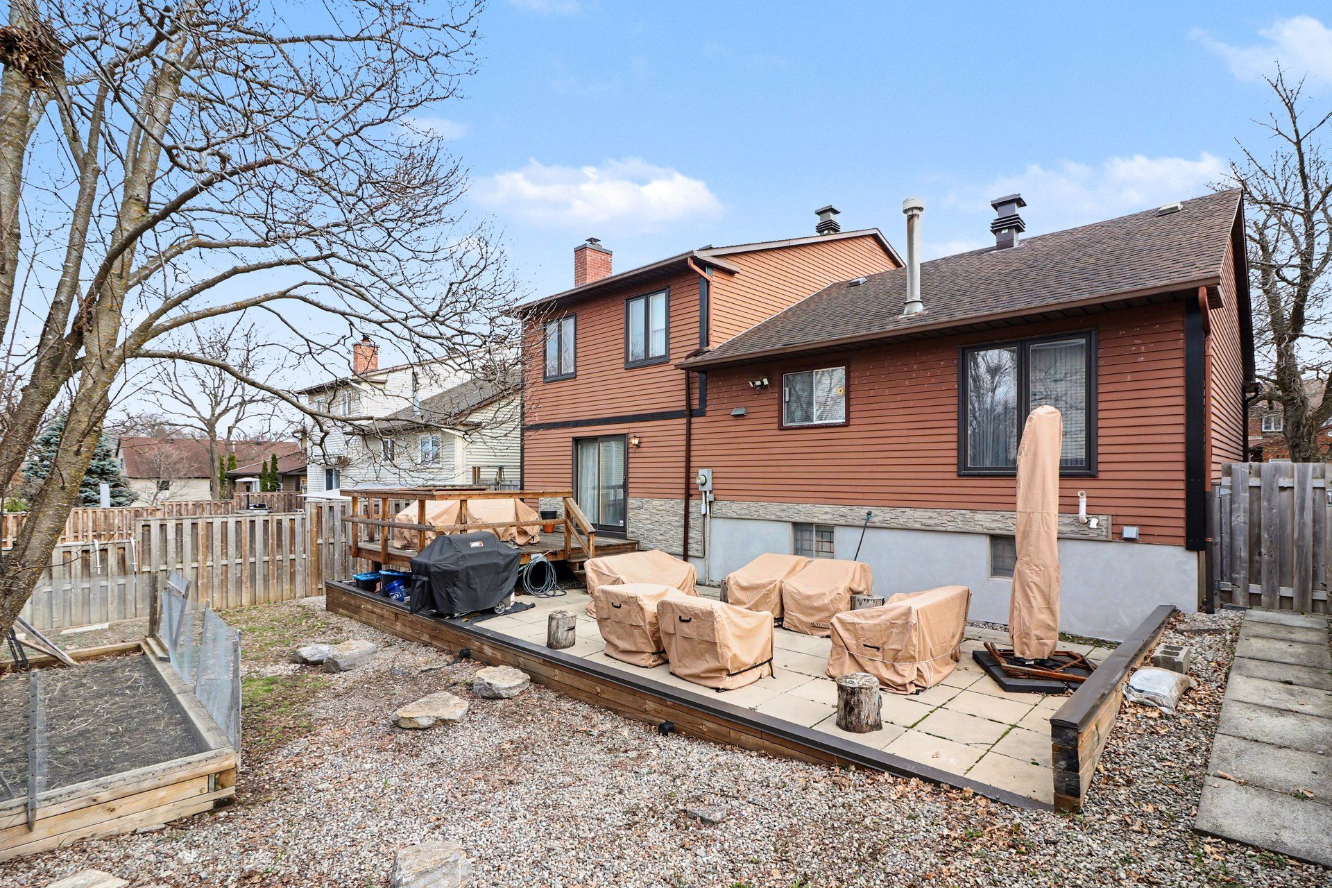 Welcome to this spacious and beautifully maintained family home offering a bright, functional split-level layout and over 2,300 sq ft of living space. Step inside to a sun-filled foyer with soaring ceilings and an inviting open-concept feel. The main level features generous living and dining areas, perfect for entertaining, along with a warm family room complete with custom built-in shelving. The updated kitchen is a true standout, showcasing modern cabinetry, stainless steel appliances, a sleek backsplash, and a large island with seating-ideal for everyday living and hosting guests. Upstairs, you'll find four well-proportioned bedrooms, including a spacious primary retreat with its own ensuite bathroom, plus an additional full bath on this level. The finished lower level provides exceptional bonus space with a large recreation room, wet bar, and flexibility for a home gym, office, or movie nights. Enjoy the fully fenced backyard with an expansive deck-perfect for summer bbqs and outdoor relaxation. Situated on a 0. 114-acre (approx. 4,983 sq ft) lot. Conveniently located close to parks, schools, transit, and everyday amenities, this is the perfect home for growing families seeking comfort, space, and versatility.