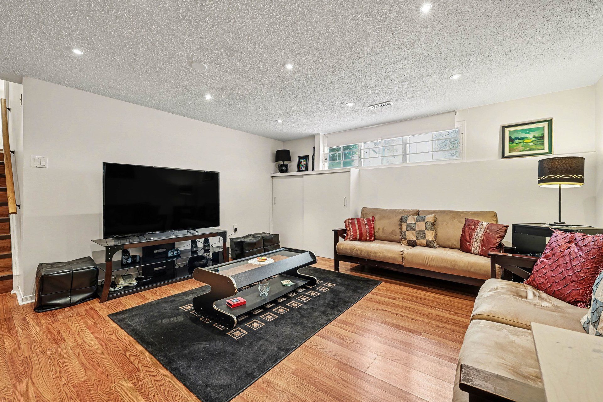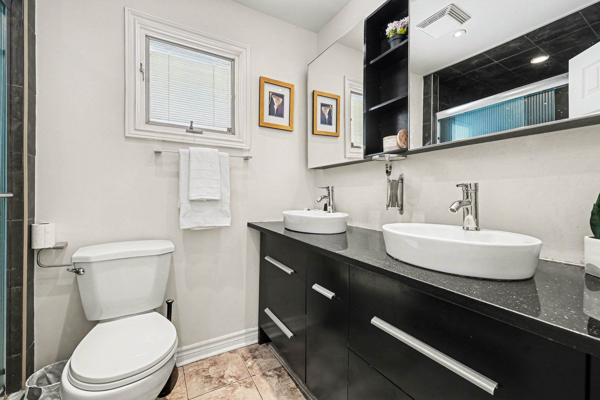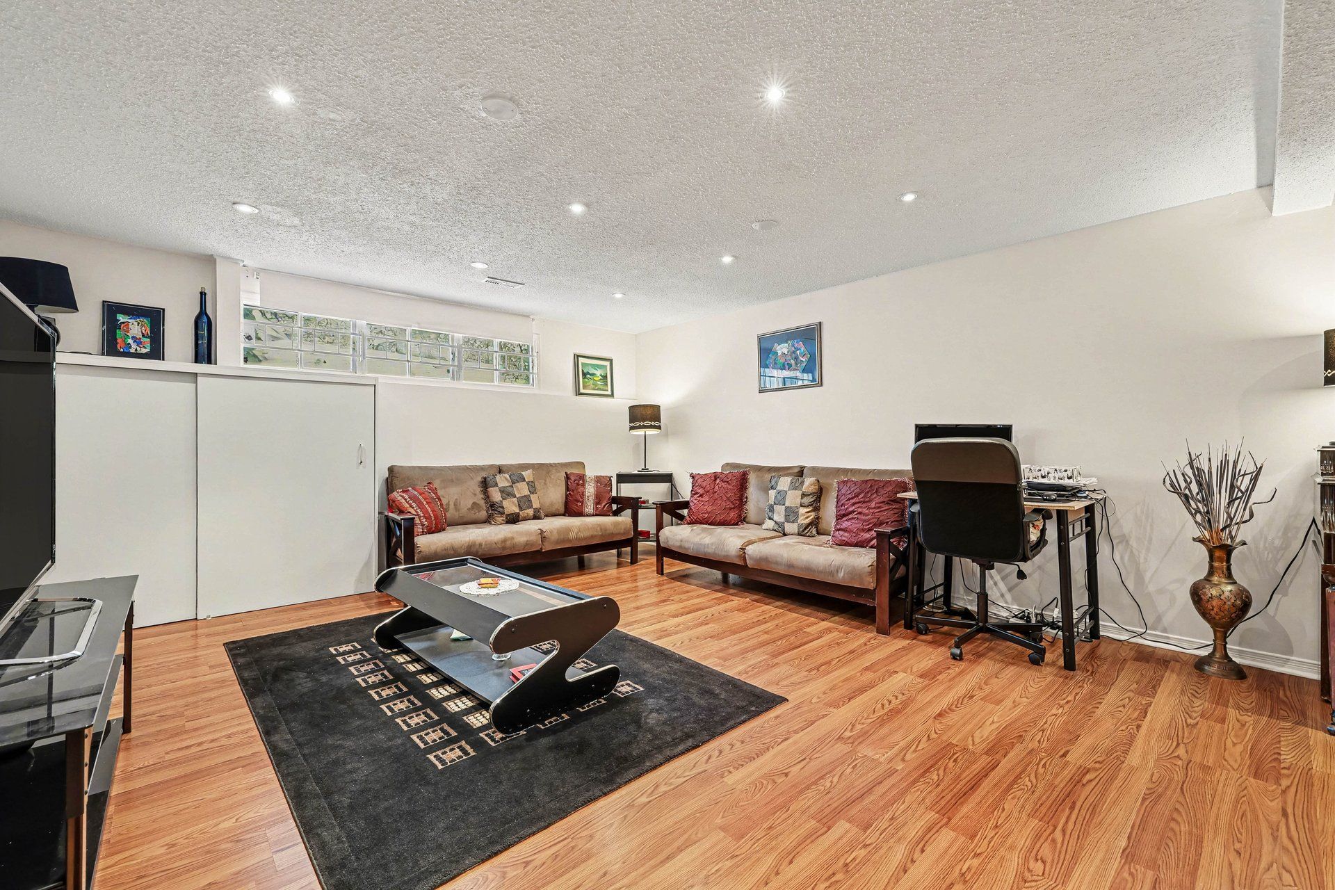 Welcome to this spacious and beautifully maintained family home offering a bright, functional split-level layout and over 2,300 sq ft of living space. Step inside to a sun-filled foyer with soaring ceilings and an inviting open-concept feel. The main level features generous living and dining areas, perfect for entertaining, along with a warm family room complete with custom built-in shelving. The updated kitchen is a true standout, showcasing modern cabinetry, stainless steel appliances, a sleek backsplash, and a large island with seating-ideal for everyday living and hosting guests. Upstairs, you'll find four well-proportioned bedrooms, including a spacious primary retreat with its own ensuite bathroom, plus an additional full bath on this level. The finished lower level provides exceptional bonus space with a large recreation room, wet bar, and flexibility for a home gym, office, or movie nights. Enjoy the fully fenced backyard with an expansive deck-perfect for summer bbqs and outdoor relaxation. Situated on a 0. 114-acre (approx. 4,983 sq ft) lot. Conveniently located close to parks, schools, transit, and everyday amenities, this is the perfect home for growing families seeking comfort, space, and versatility.