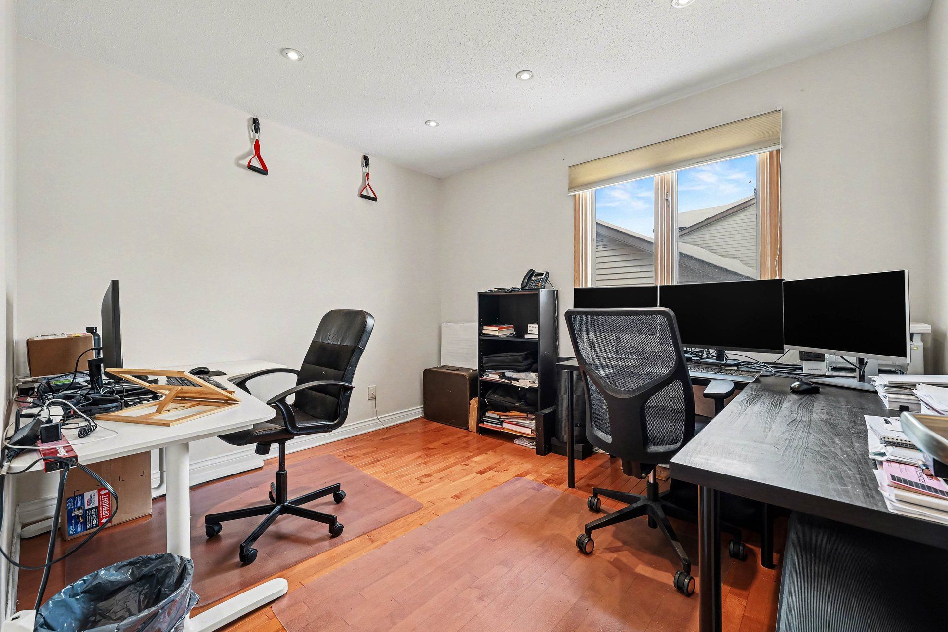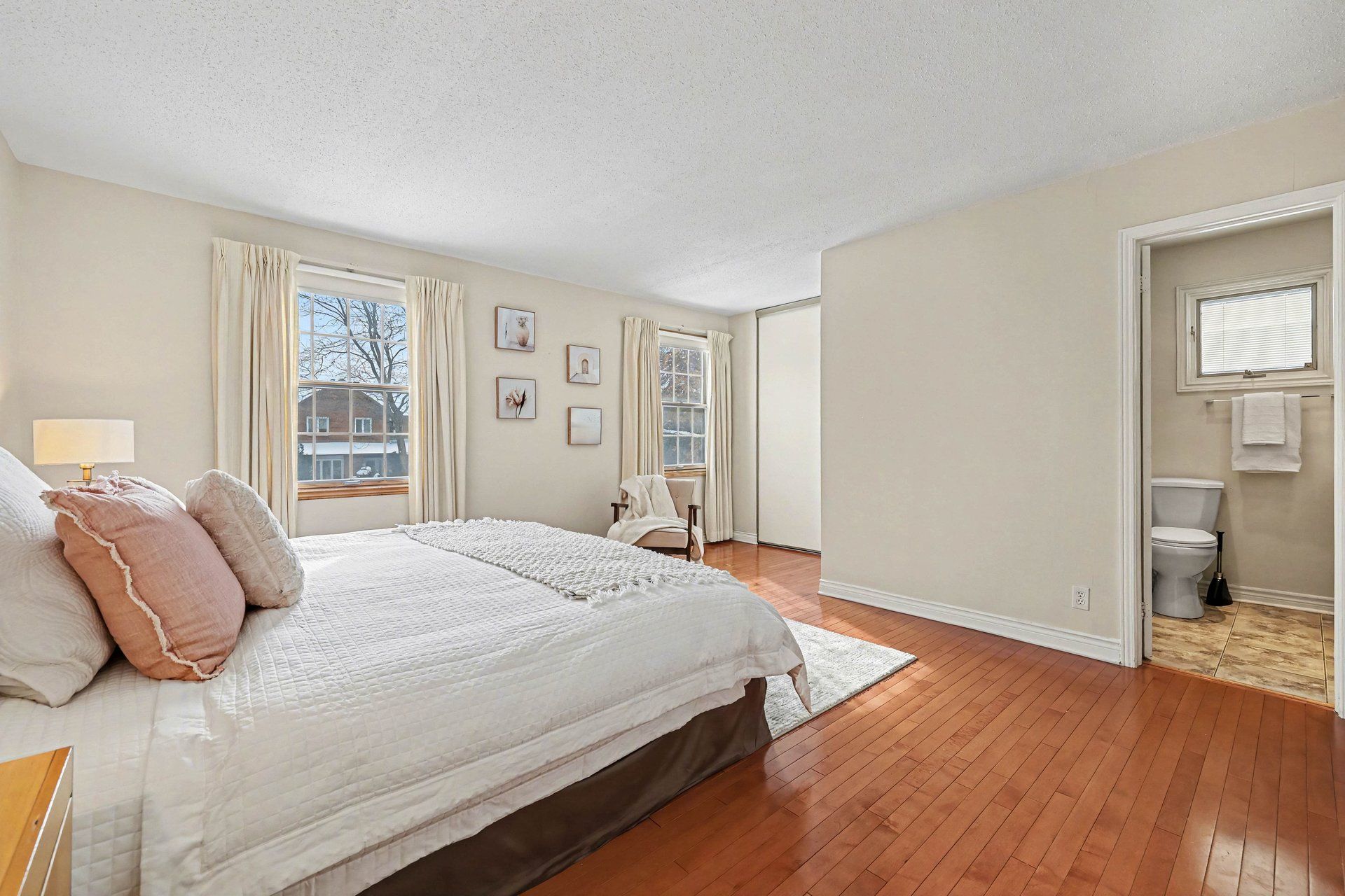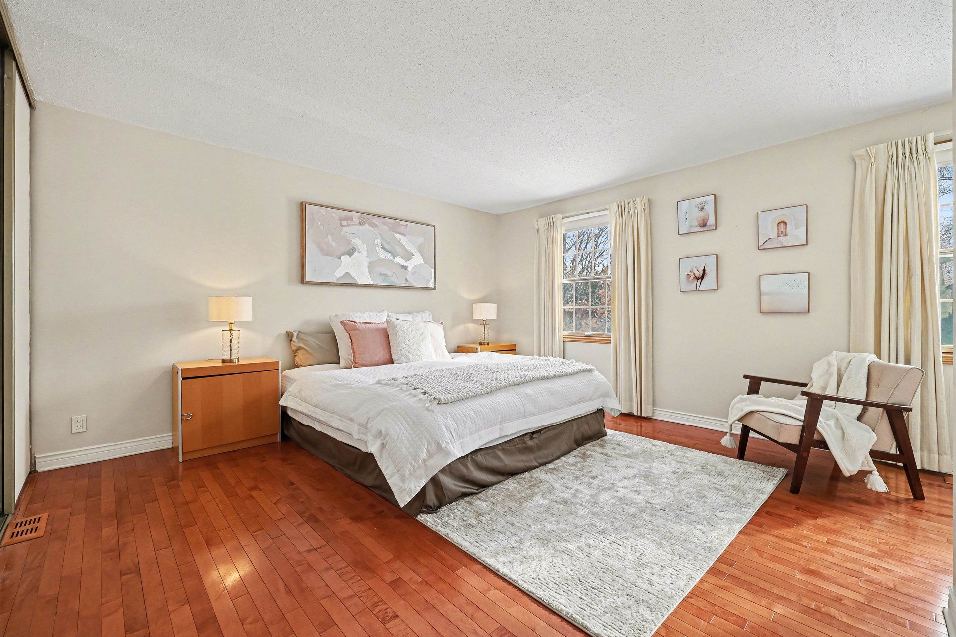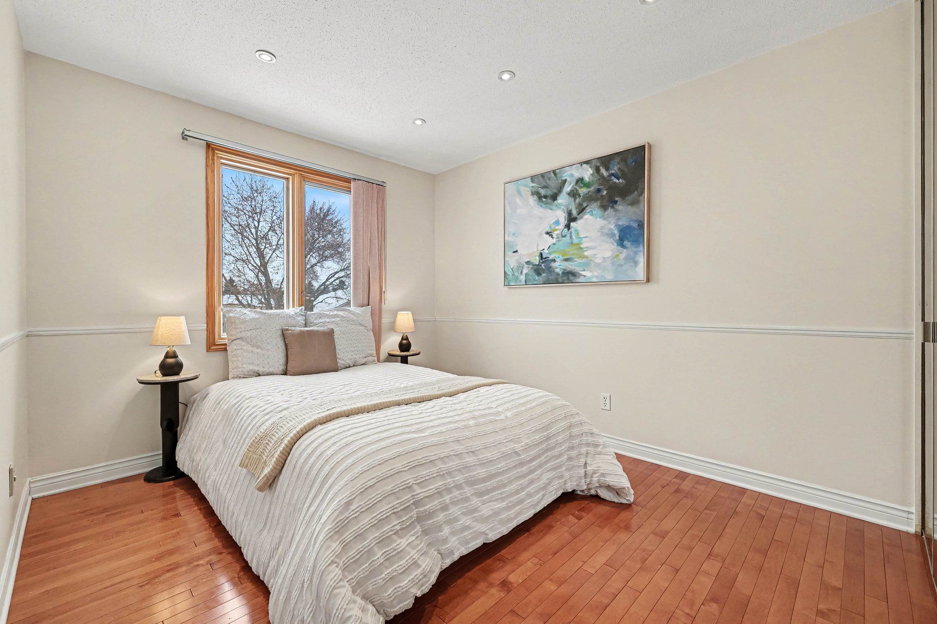 Welcome to this spacious and beautifully maintained family home offering a bright, functional split-level layout and over 2,300 sq ft of living space. Step inside to a sun-filled foyer with soaring ceilings and an inviting open-concept feel. The main level features generous living and dining areas, perfect for entertaining, along with a warm family room complete with custom built-in shelving. The updated kitchen is a true standout, showcasing modern cabinetry, stainless steel appliances, a sleek backsplash, and a large island with seating-ideal for everyday living and hosting guests. Upstairs, you'll find four well-proportioned bedrooms, including a spacious primary retreat with its own ensuite bathroom, plus an additional full bath on this level. The finished lower level provides exceptional bonus space with a large recreation room, wet bar, and flexibility for a home gym, office, or movie nights. Enjoy the fully fenced backyard with an expansive deck-perfect for summer bbqs and outdoor relaxation. Situated on a 0. 114-acre (approx. 4,983 sq ft) lot. Conveniently located close to parks, schools, transit, and everyday amenities, this is the perfect home for growing families seeking comfort, space, and versatility.