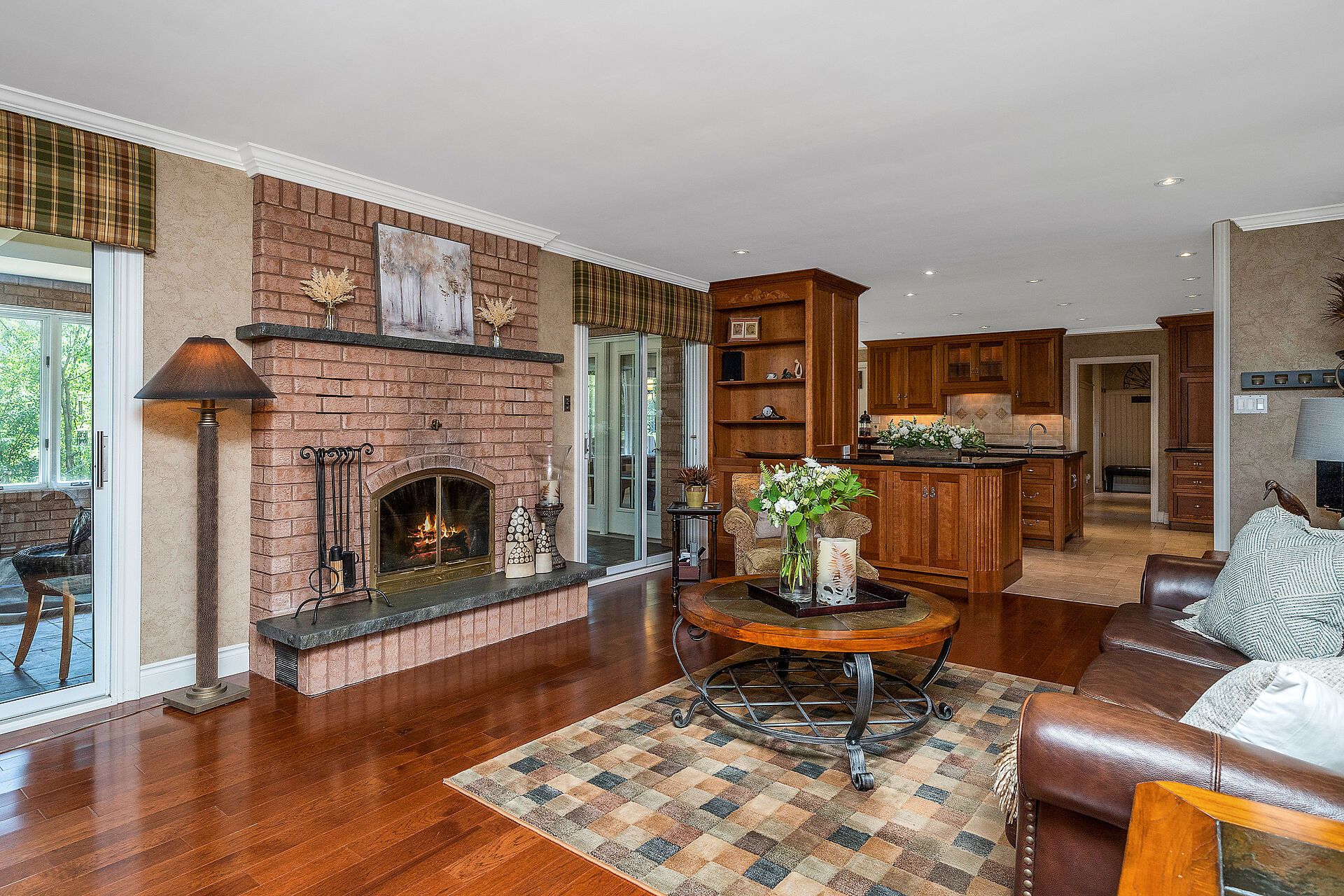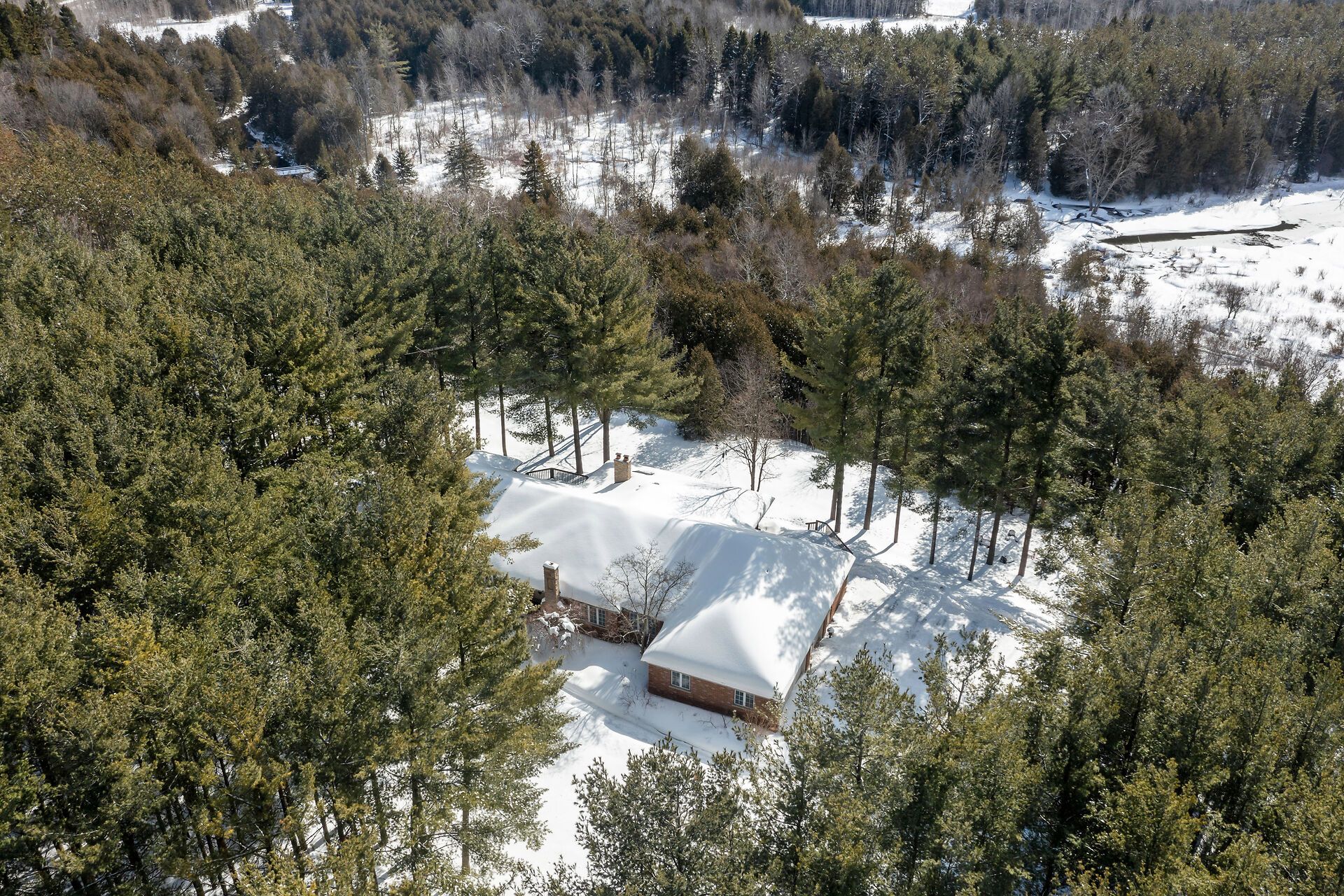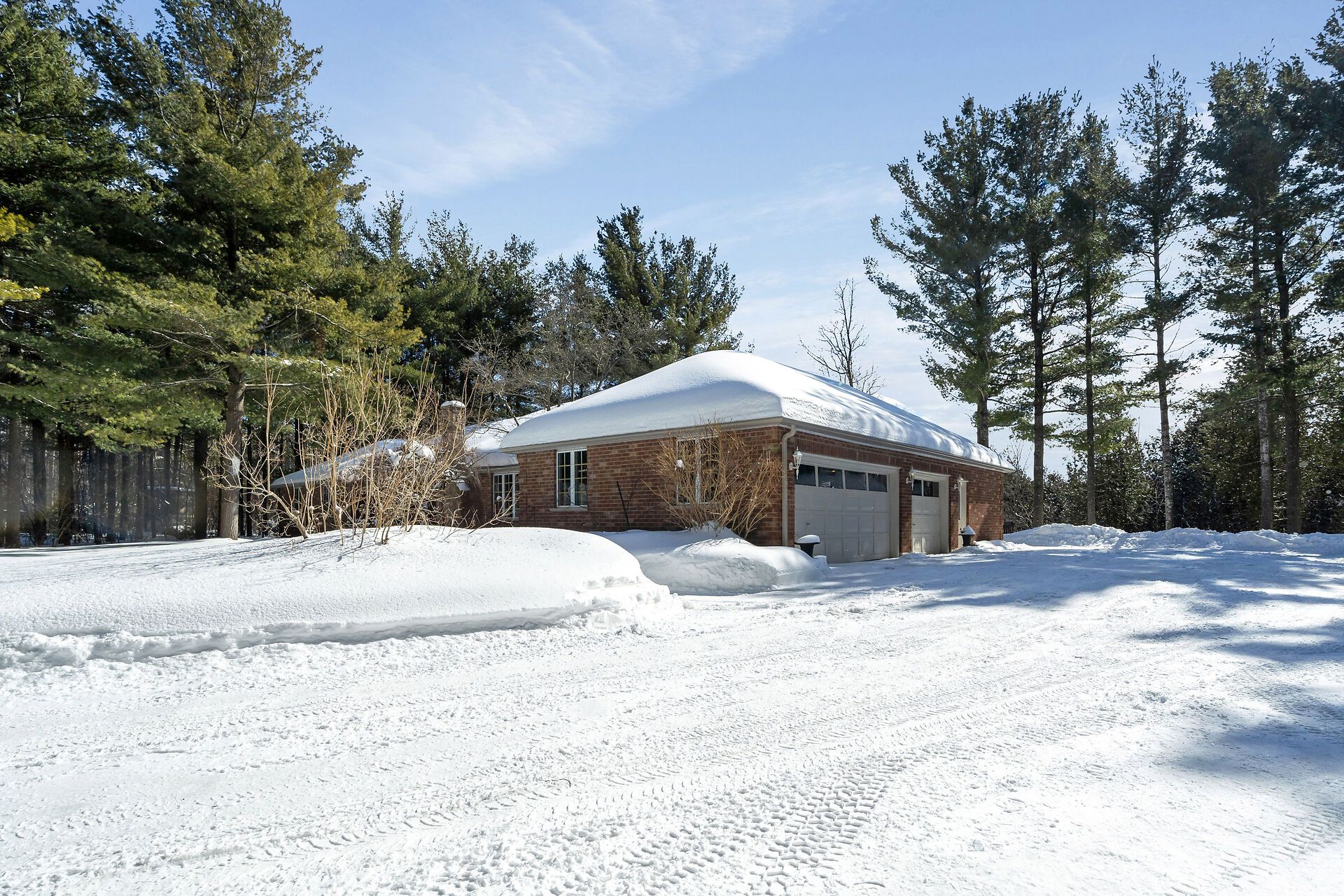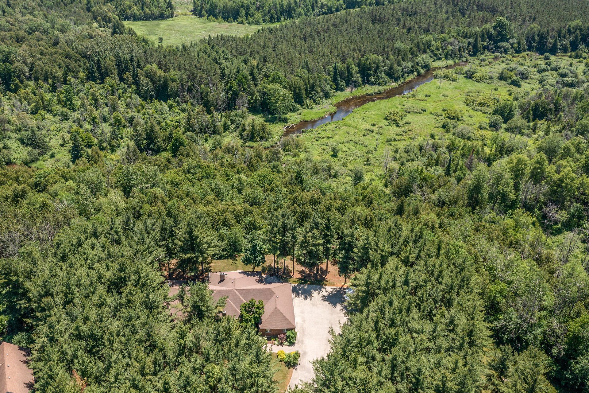 Welcome to 41 pine ridge road, a sprawling true bungalow set on 1. 47 acres, this property combines estate-style presence with over 6000 sq ft of living space. The long-poured concrete driveway creates an impressive approach and generous parking for guests. The true bungalow layout has a commanding living and dining room overlooking the expansive front lawn and gardens, surrounded by soaring pines and the west credit river running behind. A beautiful custom cherry hill style kitchen featuring a large centre island with gas cooktop, pop up exhaust, extensive cabinetry, and heated floors for year-round comfort. The kitchen opens to a warm family room with a wood burning fireplace. Adjacent solarium style room, filled with natural light and houses an indoor hot tub allowing year-round use in a protected environment. Three spacious main floor bedrooms with the primary suite as the star of the show, featuring a huge ensuite and walkout to the deck for morning coffee. The fully finished basement has an additional two bedrooms for guests, extended family, or home gym. The second kitchen creates a true in-law or multigenerational living option, or an ideal set up for entertaining. The custom bar area anchors the recreational space providing a fabulous area for entertaining or game nights. Two separate staircases connect the two floors improving flow and adding convenience. The oversized 3. 5 car garage offers room for vehicles, hobby space, and additional storage. Privacy is of the essence, yet neighbors near by for a game of road hockey. A short walk or bike ride into the village of erin on the safety of the elora-cataract trail. Walking distance to the schools, arena, tennis courts, and new library. An easy commute to the gta, with all the tranquility when you arrive home.