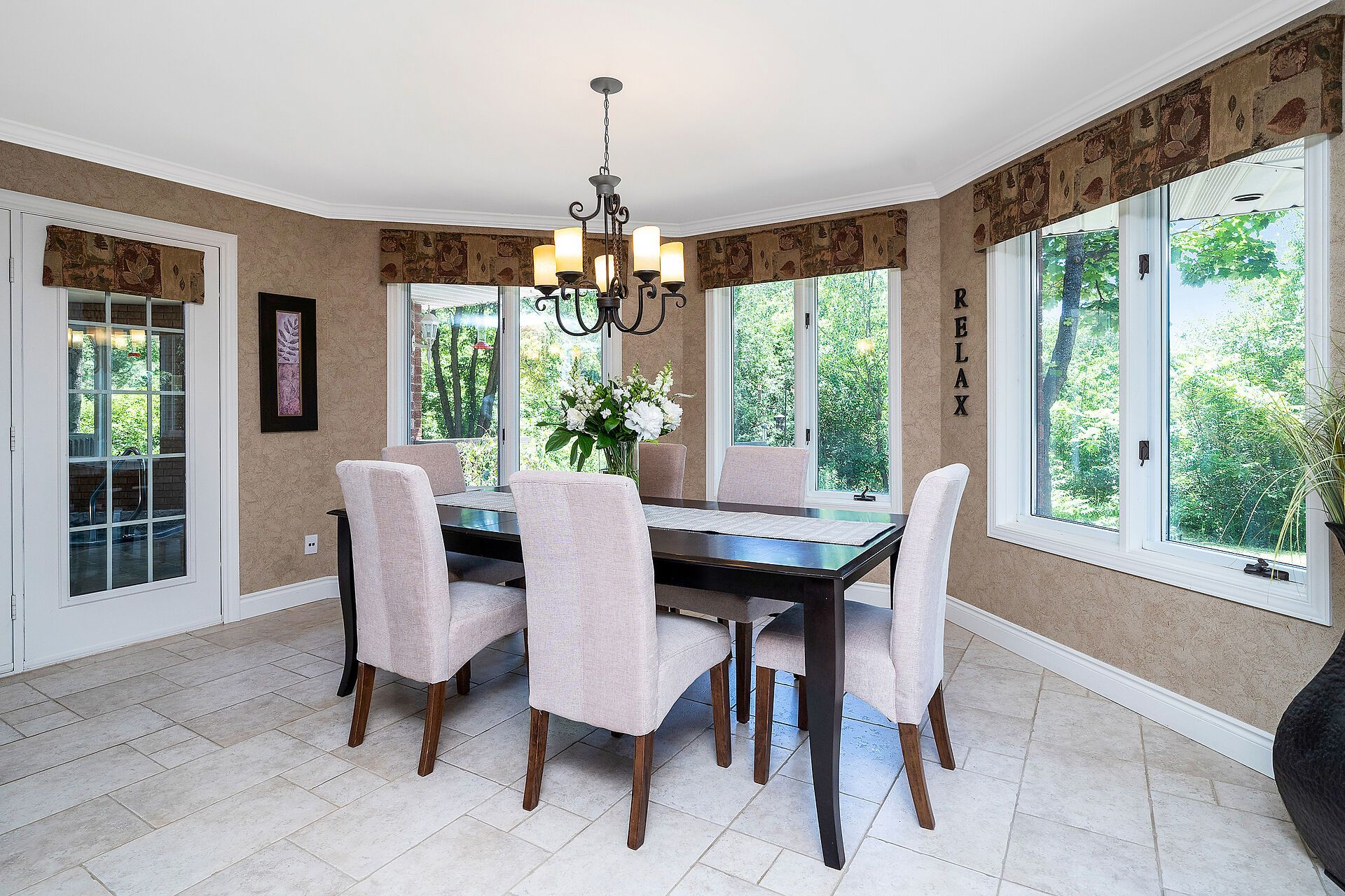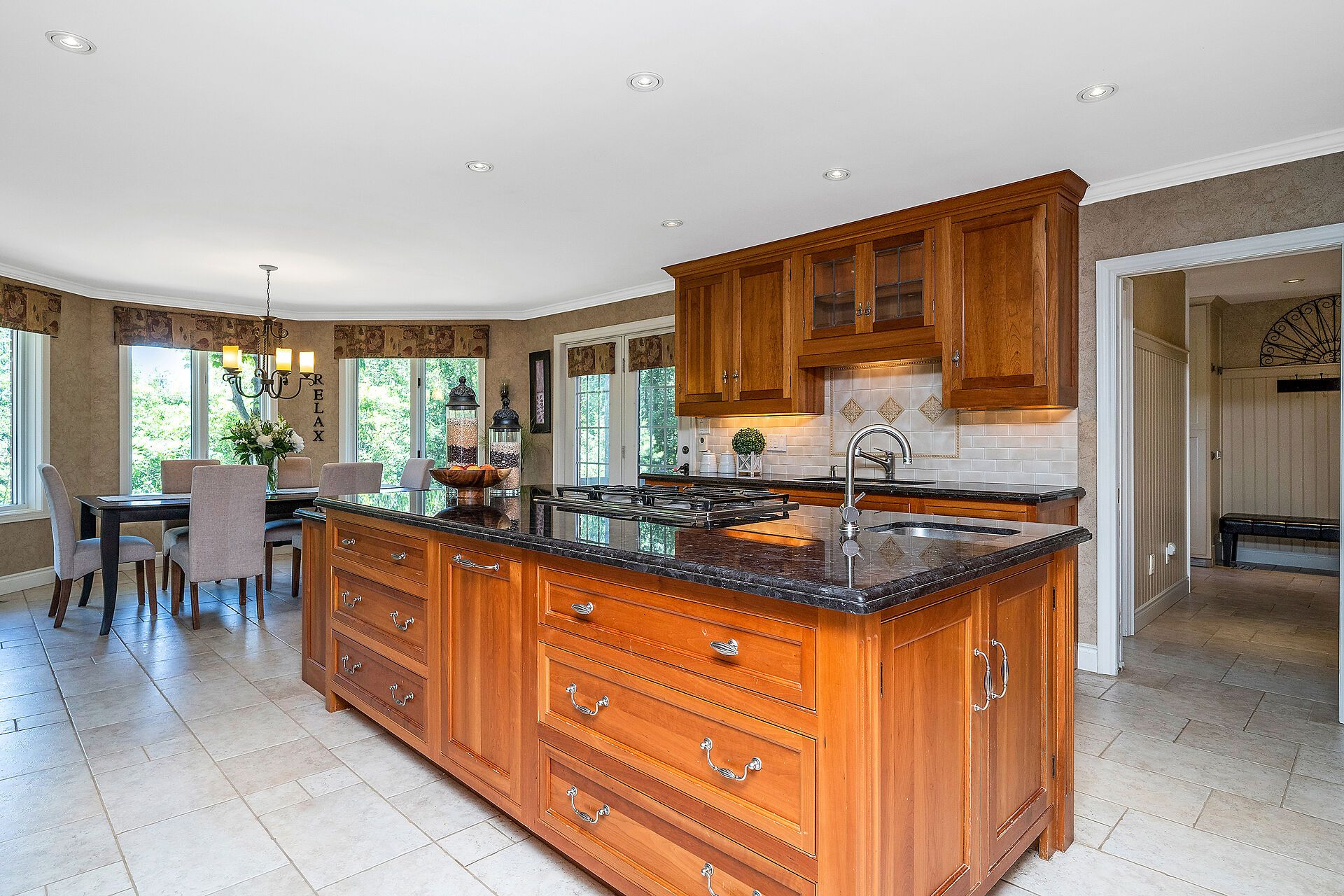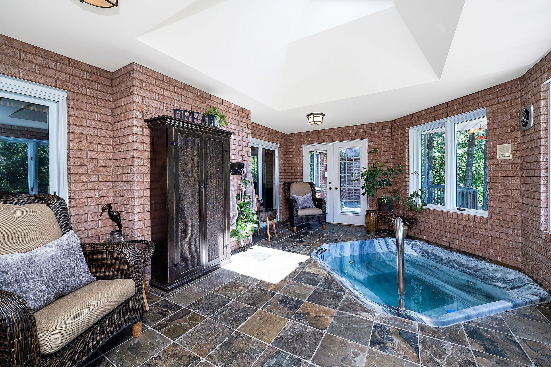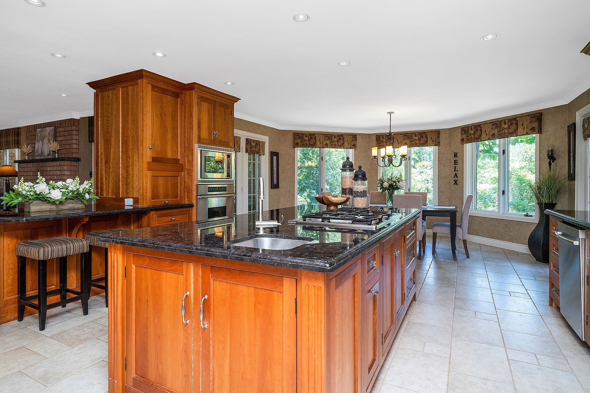 Welcome to 41 pine ridge road, a sprawling true bungalow set on 1. 47 acres, this property combines estate-style presence with over 6000 sq ft of living space. The long-poured concrete driveway creates an impressive approach and generous parking for guests. The true bungalow layout has a commanding living and dining room overlooking the expansive front lawn and gardens, surrounded by soaring pines and the west credit river running behind. A beautiful custom cherry hill style kitchen featuring a large centre island with gas cooktop, pop up exhaust, extensive cabinetry, and heated floors for year-round comfort. The kitchen opens to a warm family room with a wood burning fireplace. Adjacent solarium style room, filled with natural light and houses an indoor hot tub allowing year-round use in a protected environment. Three spacious main floor bedrooms with the primary suite as the star of the show, featuring a huge ensuite and walkout to the deck for morning coffee. The fully finished basement has an additional two bedrooms for guests, extended family, or home gym. The second kitchen creates a true in-law or multigenerational living option, or an ideal set up for entertaining. The custom bar area anchors the recreational space providing a fabulous area for entertaining or game nights. Two separate staircases connect the two floors improving flow and adding convenience. The oversized 3. 5 car garage offers room for vehicles, hobby space, and additional storage. Privacy is of the essence, yet neighbors near by for a game of road hockey. A short walk or bike ride into the village of erin on the safety of the elora-cataract trail. Walking distance to the schools, arena, tennis courts, and new library. An easy commute to the gta, with all the tranquility when you arrive home.