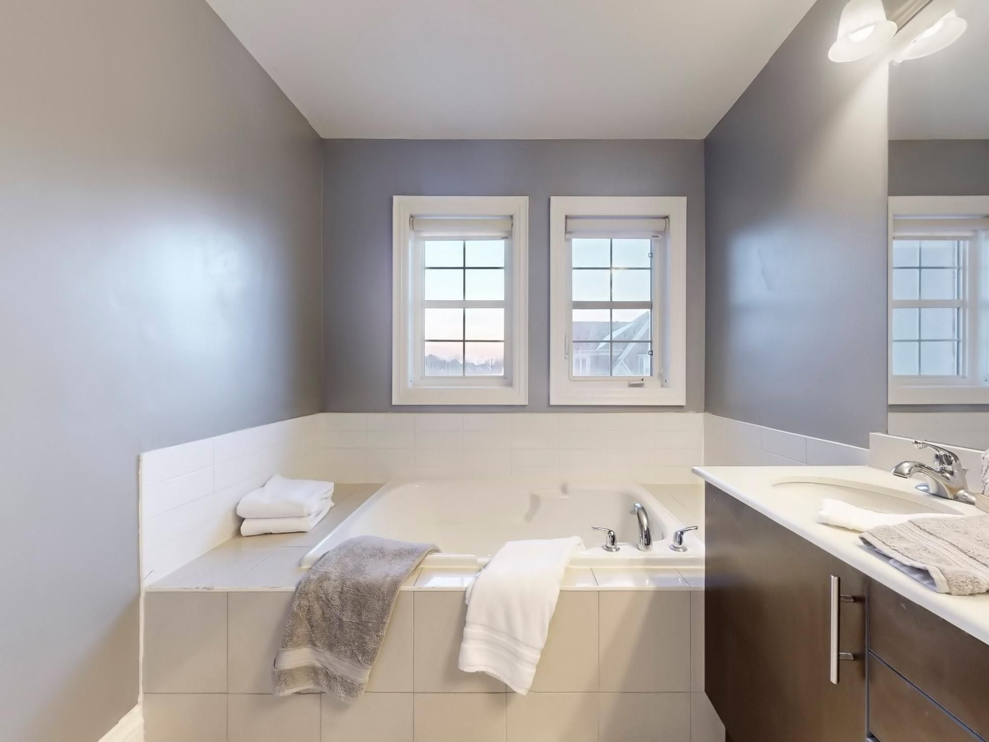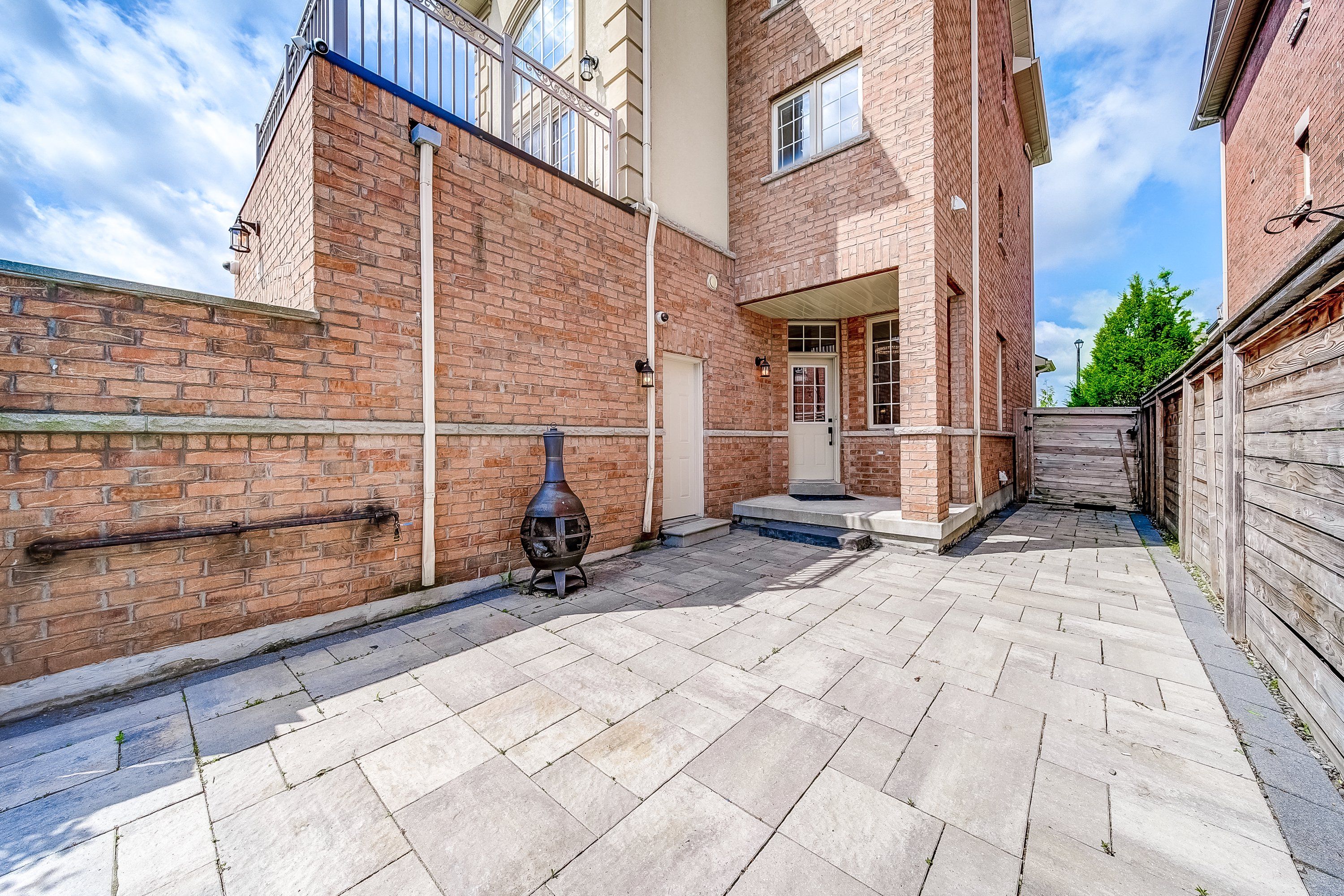 Nestled in the desirable heart of vellore village this spectacular 3-storey executive end unit, free hold townhouse offers over 2,380 sq ft of premium, carpet-free living space. (2000-2500 sq ft range)boasting 4 spacious bedrooms (including 2 ensuites) and 5 bathrooms, it's perfectly suited for families, multi-generational living, or those seeking extra convenience. The main level impresses with hardwood flooring throughout principal areas, elegant crown mouldings, and stylish italian light fixtures. Featuring a large interlocked backyard, perfect for kids to play or entertain family. Spacious eat-in kitchen glowing with quartz countertops,-stainless-steel appliances, and an island perfect for gatherings, flowing into open living/dining spaces filled with natural light. Upstairs, the family room opens to a private balcony overlooking the backyard, ideal for relaxation or play. Bedrooms are generous sizes, custom closets, and spa-like ensuites with glass showers and dual vanities. The finished basement featuring a large open space with pot lights and utility space. Exterior views reveal a handsome brick/stucco facade, private driveway plus attached garage (3 total spots). Move-in ready with owned water heater and central air, central vacuum, hvac system. Prime spot, minutes to hwy 400, cortellucci hospital, schools, transit, shops, and restaurants - exceptional value in a sought-after community.