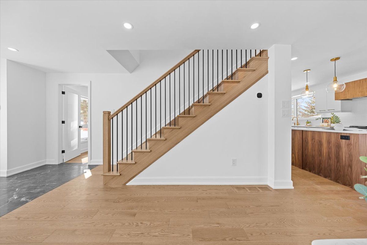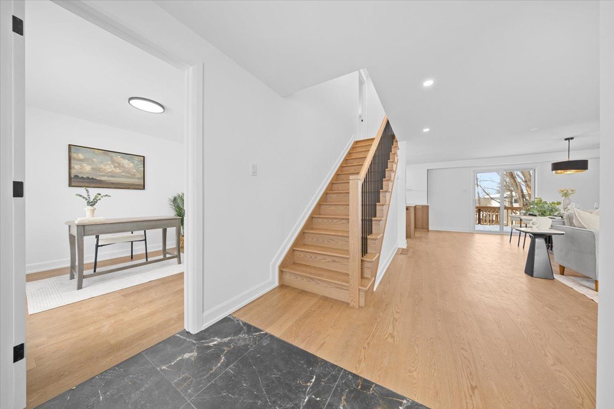 Wow! This beautifully renovated home, taken back to the studs and rebuilt with high-end finishings, offers the perfect blend of comfort, privacy, and flexibility. Featuring upgraded electrical and premium flooring throughout, including engineered oak hardwood, luxury vinyl plank, and ceramic, this exceptional home offers 2,178 sq. Ft. Of thoughtfully designed living space. The main level includes a dedicated office, ideal for working from home, and an open-concept living room, dining room, and kitchen that flow seamlessly together. This bright and inviting space is perfect for both everyday living and entertaining, with elegant finishes and abundant natural light throughout. Upstairs, the spacious primary bedroom serves as a private retreat, complete with a luxurious ensuite bathroom designed for comfort and relaxation. Two additional well-sized bedrooms provide comfortable accommodations for family or guests. The fully finished basement expands your living space with a large recreation room perfect for movie nights, family gatherings, or a separate lounge area, along with a fourth bedroom, a full bathroom, and a dedicated laundry and utility room. Designed with modern living in mind, this home offers exceptional space, and upscale finishes in every detail.