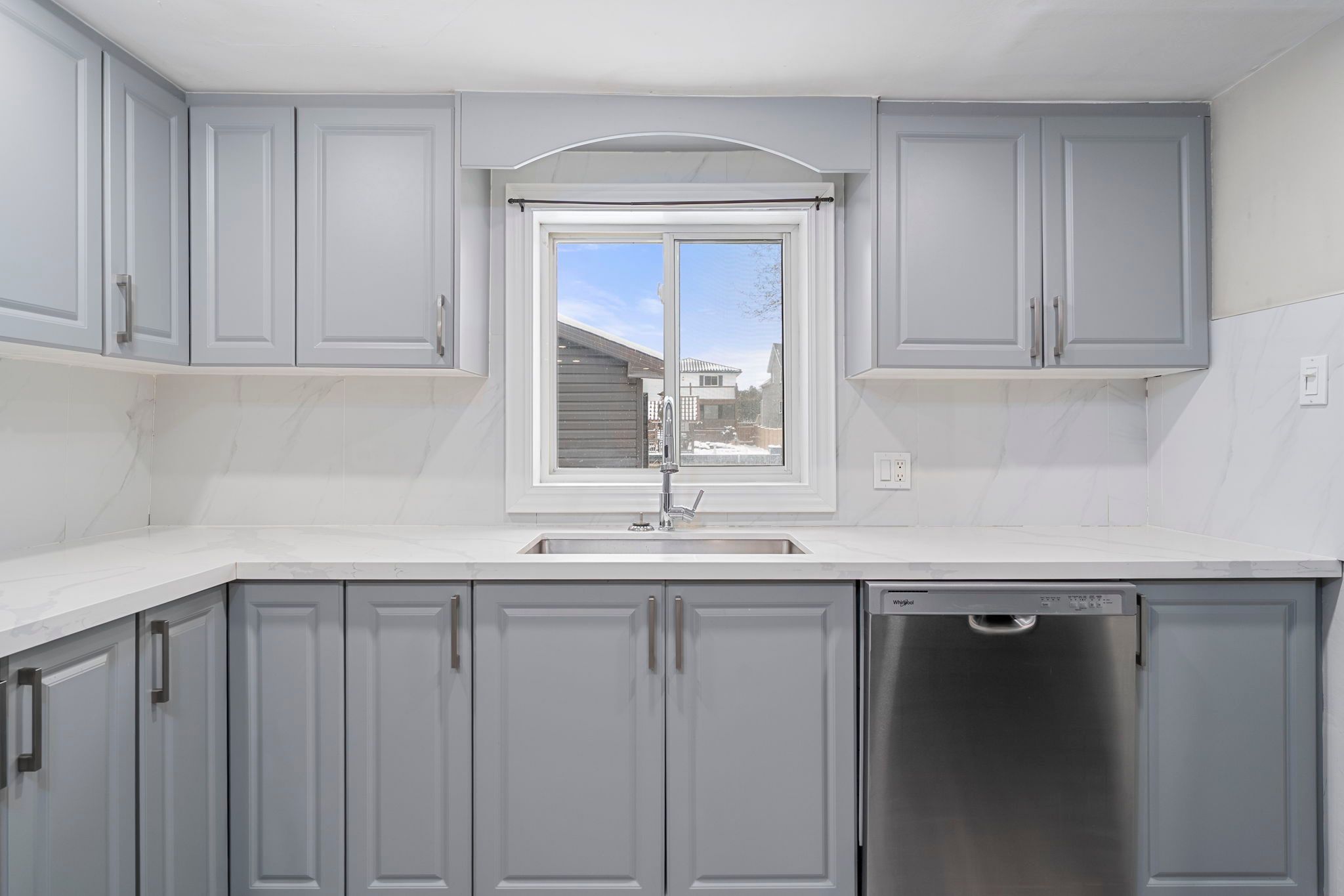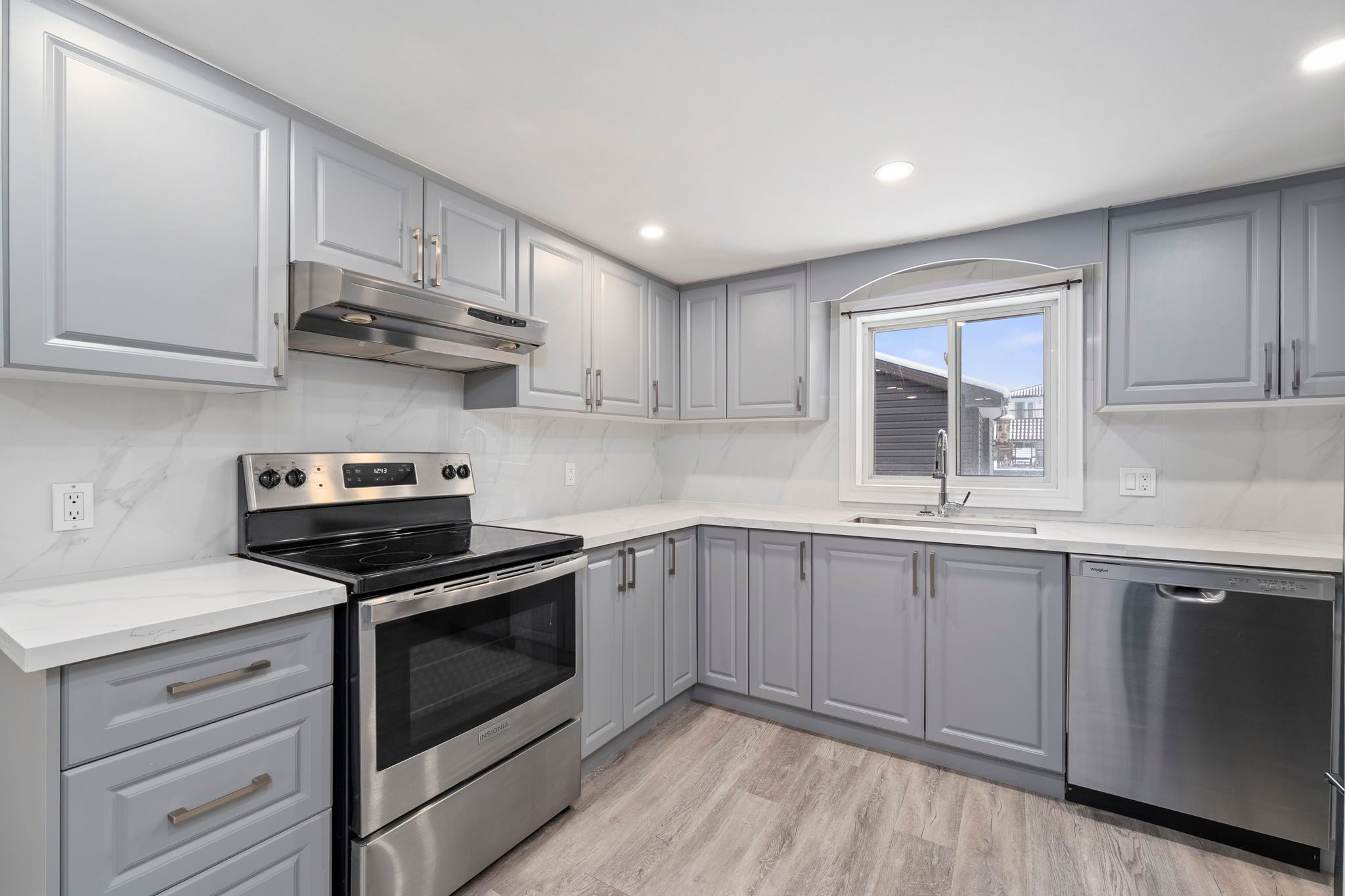 • Tastefully updated modern kitchen with quartz countertops and fresh finishes.