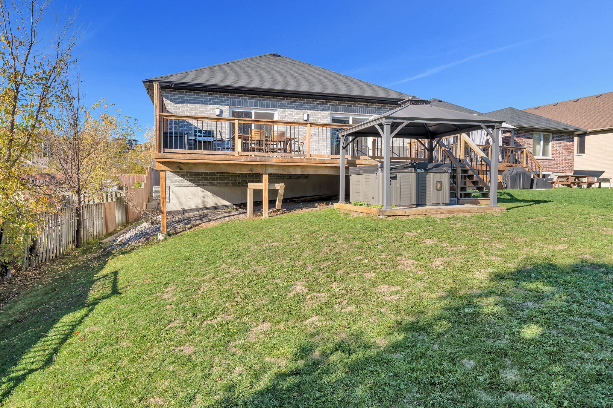 • Generous backyard with deck, BBQ hookup, and recreational areas.
