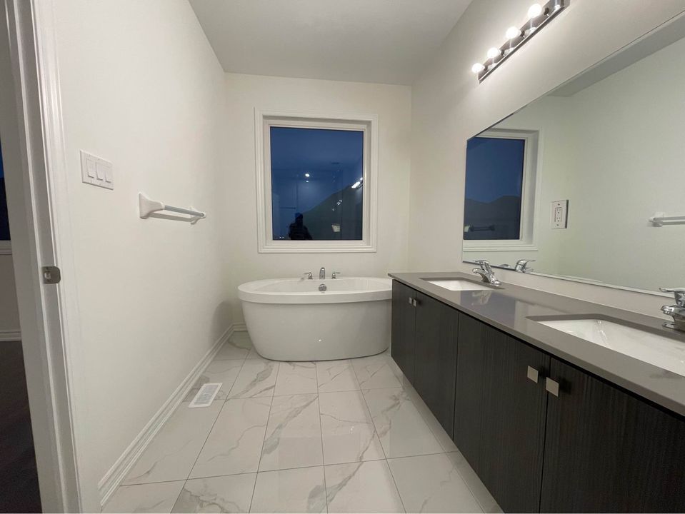 Beautiful 3 years old property with 9 ft ceilings, modern fireplace and open concept family room. Three full washrooms on the upper floor, a rare find in semis and is 2140 sqft per builder. A school is planned in the neighbourhood as per the builder's site plan and will be at a walkable distance from this property. Separate entrance by builder. The property is spacious with large 4 bedrooms and spend 75k on upgrades, richly stained staircase, a gorgeous kitchen with modern finishes, large island, stainless steel appliances. Large master bedroom with walk-in closet & 5 pc ensuite. Lots of windows for natural sunlight. Large windows & blinds are installed in rich color matching the walls.. And new central ac installed(may 2023). Utilities extra 70 % if basement rented .