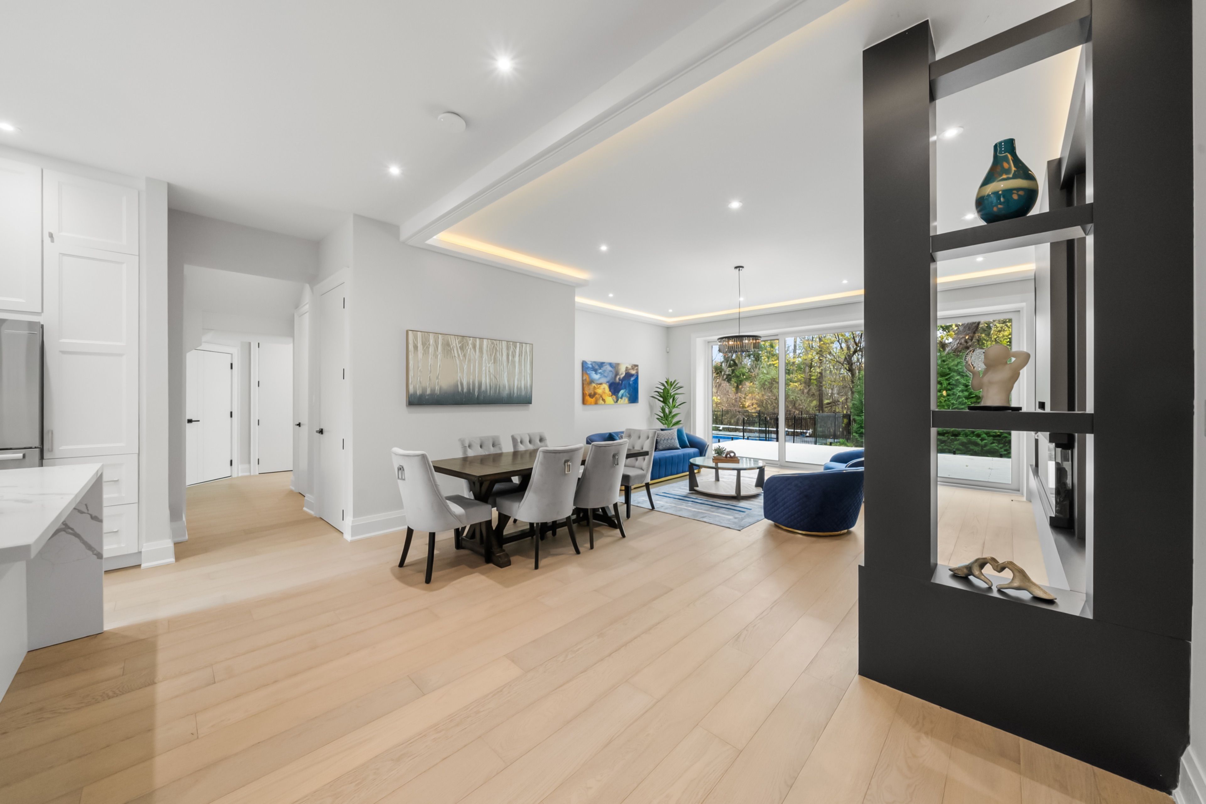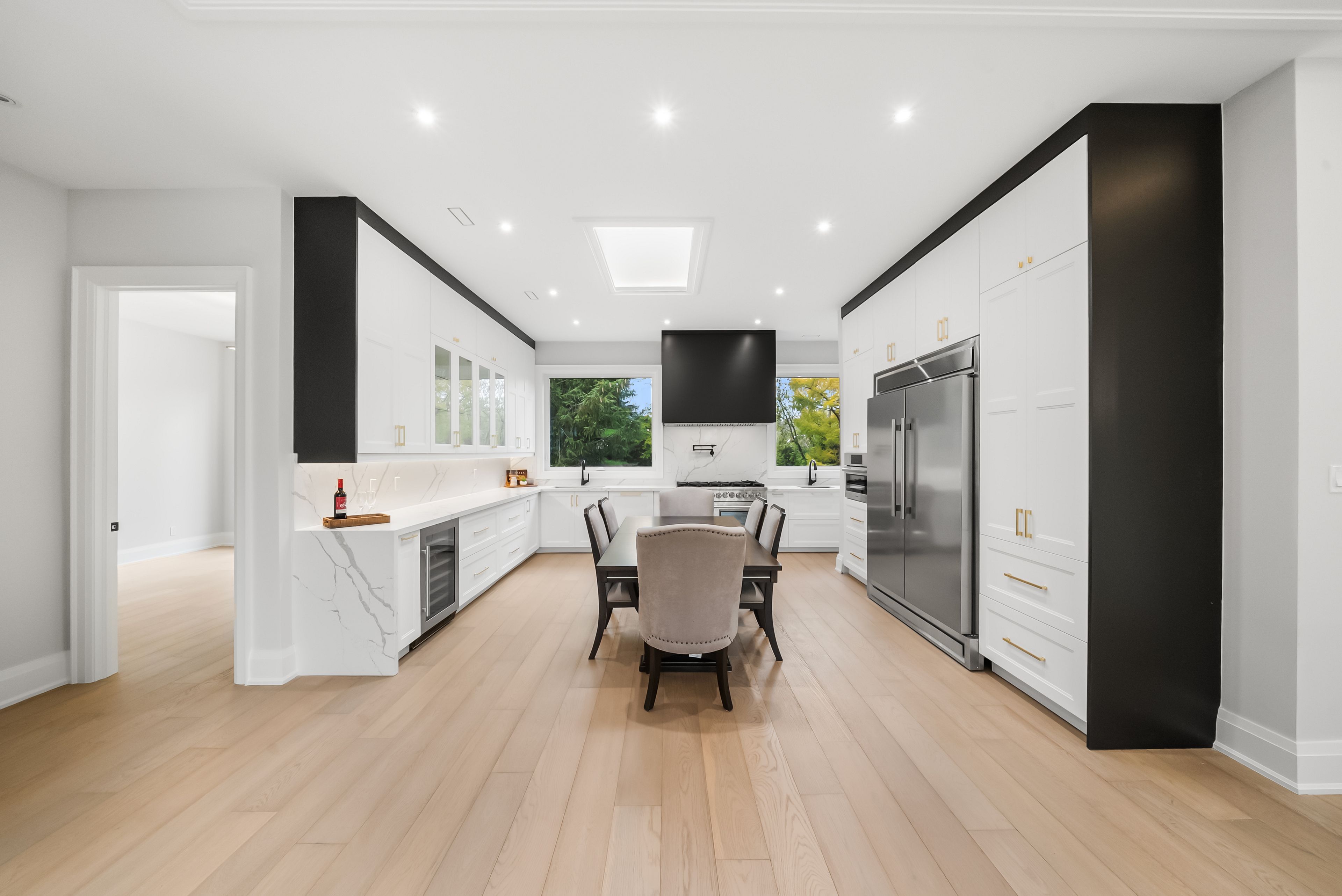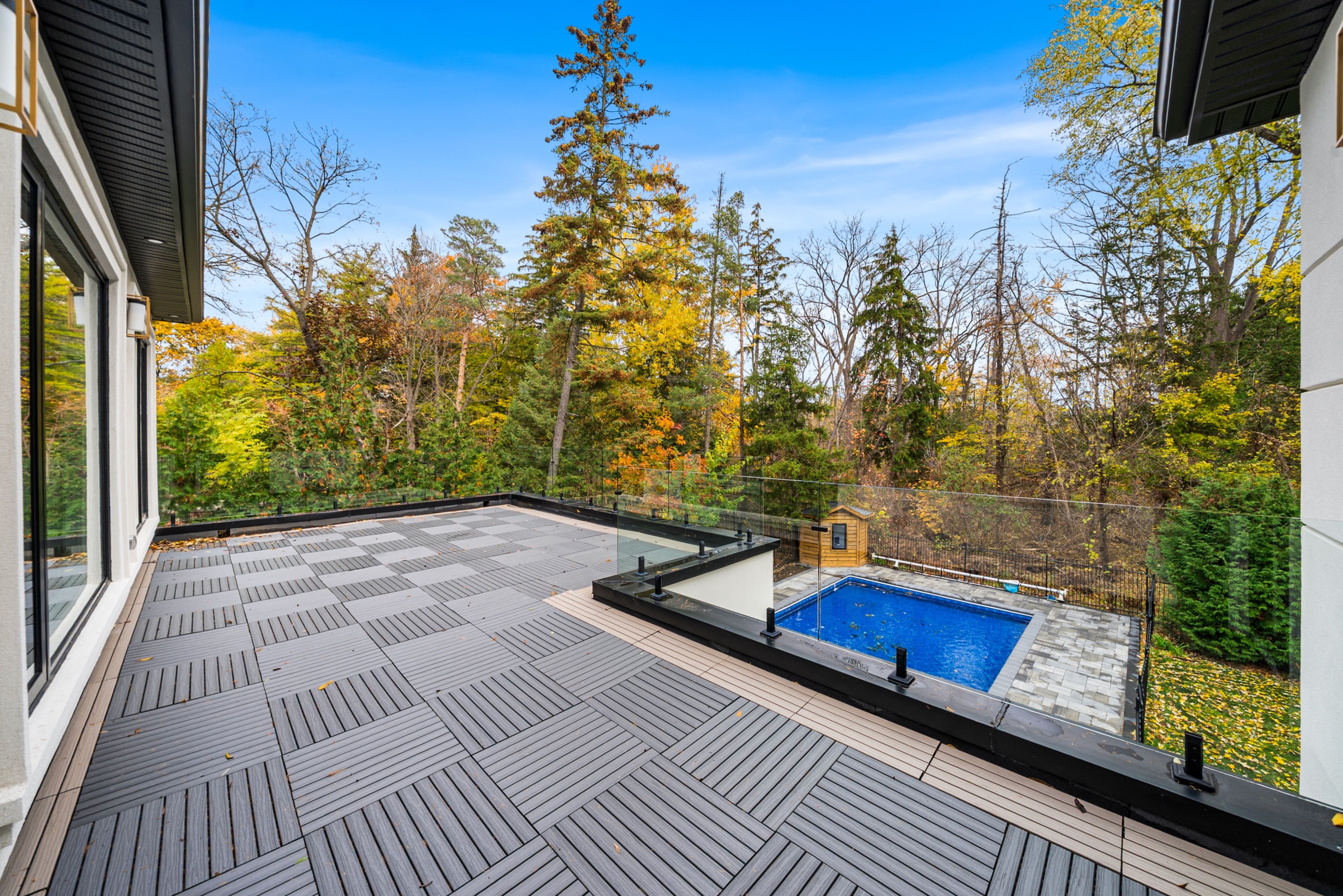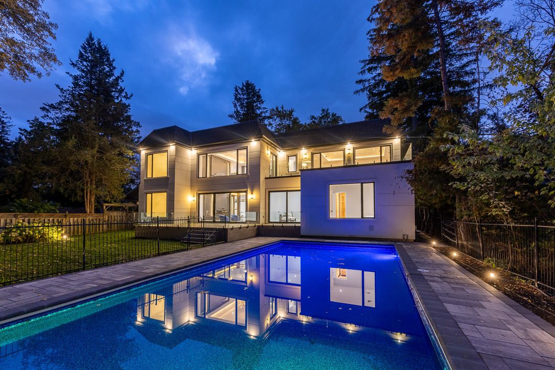 Introducing markham's premier gated dual residence estate, offering over 7000 sf (5,500 sf above grade) of luxurious living space on a breathtaking 80 by 200-foot ravine lot. A rare architectural achievement, this remarkable estate redefines modern multigenerational living - two complete residences, seamlessly integrated under one roof with an uncompromising commitment to design and function. The main-floor residence spans 3,005 sf above grade, featuring a stunning open-concept layout complemented by a 1,498 sf finished lower level. This lower level space is thoughtfully designed for leisure and includes a kitchenette, full bath, generous storage and also has its own separate entrance. Above, the upper residence offers 2,540 sf of refined living - highlighted by three spacious bedrooms, 2. 5 bathrooms, sun-filled skylights and an expansive 453 sf private balcony overlooking the tranquil ravine and pool. Each residence has been masterfully appointed with 10" ceilings, floor to ceiling windows, chef-inspired kitchens, premium integrated appliances, and bespoke cabinetry - capturing the essence of timeless luxury and modern sophistication. Additionally, this home is future-proofed w/an elevator rough-in, install anytime - no major construction needed. Built entirely new on the original foundation under markham's innovative dual residence bylaw, the property features two private entrances - ensuring privacy and independence for extended families, multi-generational living, or owner-occupant investors seeking flexibility and value. Outdoors, resort-style amenities elevate every moment - a sparkling pool overlooking the ravine, a fully gated entrance, and parking for ten vehicles, including a two-car attached garage w/eight additional spaces. Whether you envision two distinct residences or one grand estate, 41 sprucewood drive embodies versatility, luxury, and elegance - a true sanctuary in one of markham's most coveted locations. A world of magnificence awaits.
