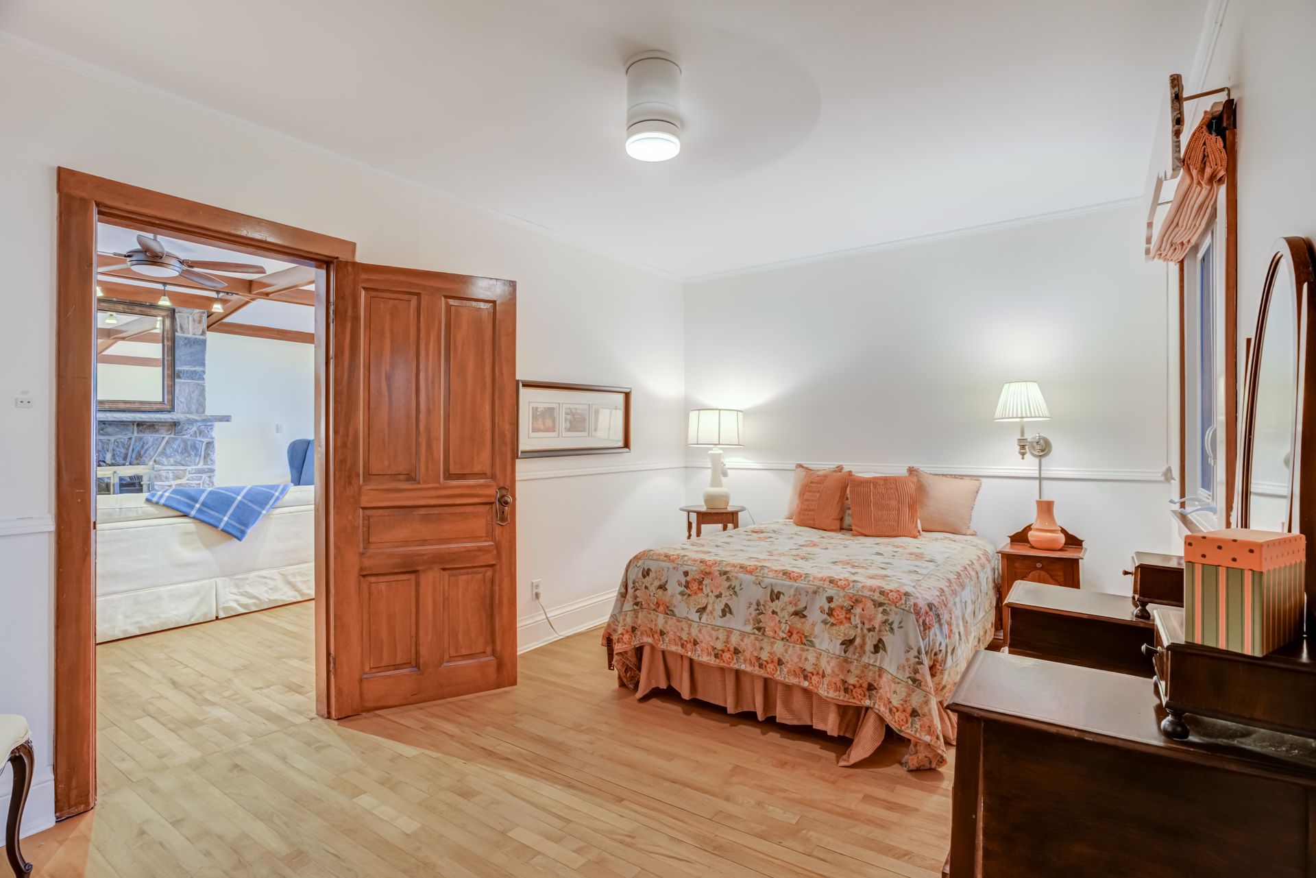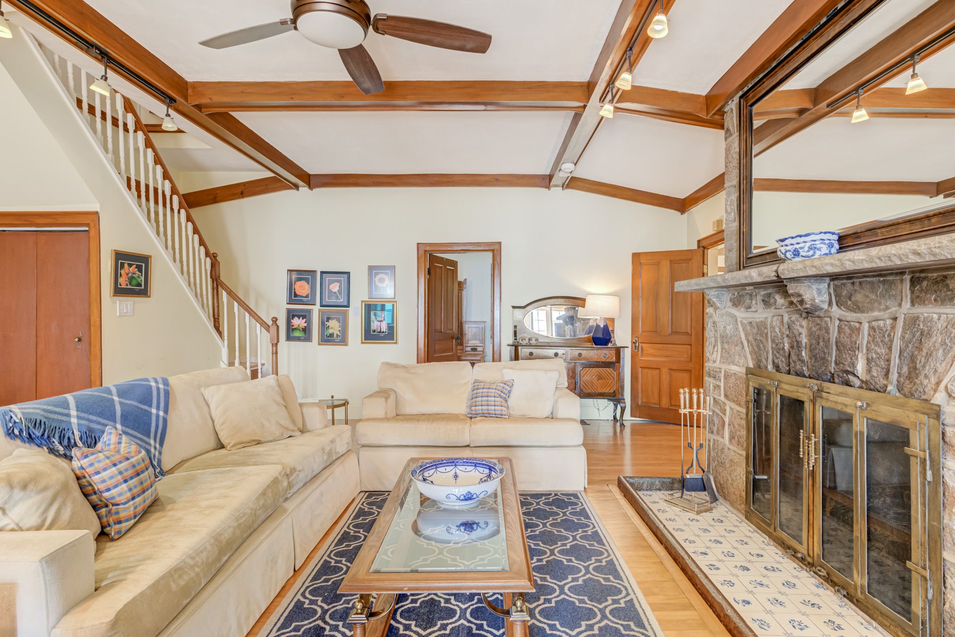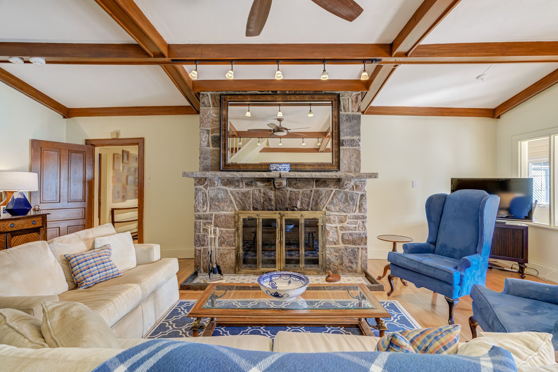 • Spacious living room with a cozy fireplace, perfect for family gatherings.