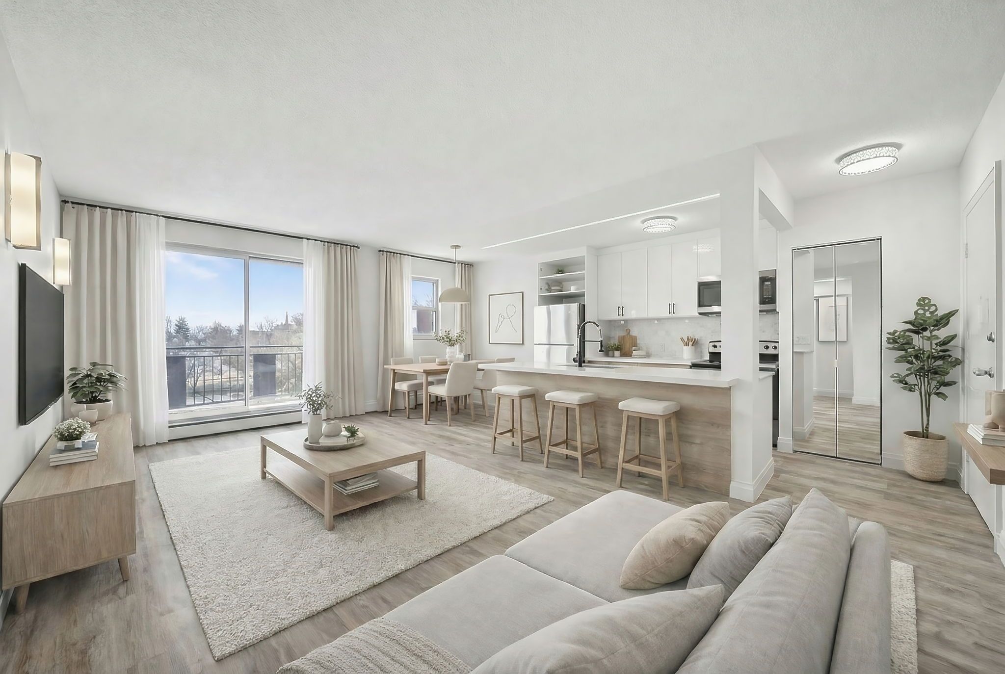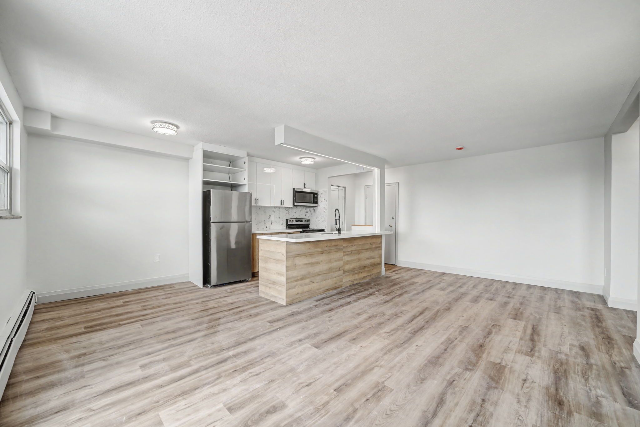 • No carpet for easy maintenance and a clean look.