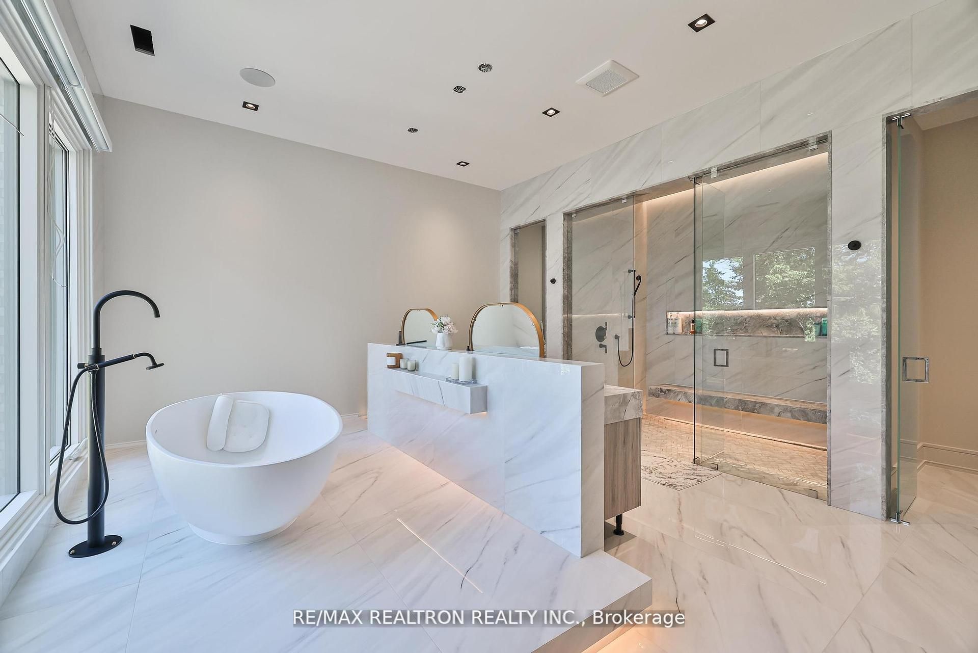 A triumph of architectural brilliance. Designed by award-winning raphael gomes, 41 thornbank rd. Is an architectural gem on one of thornhill's most coveted streets in vaughan's most exclusive enclave. Surrounded by grand estates and mature trees, this brand new custom home sits on a spectacular 100 x 302 ft lot backing onto the best part of the thornhill club golf course, offering serene views and total privacy. Spanning about 16,200 sq. Ft with 10,771 sq. Ft above grade, including a partially finished 5,400+ sq. Ft lower level, this state-of-the-art smart home is equipped with 400-amp service and control4 automation. Features 5+2 bedrooms, 11 bathrooms (3 roughed-in l/l, 1 cabana), heated floors, and an elevator. The exterior pairs limestone with belden winter mist brick for a timeless aesthetic. Inside, a 28-ft cathedral foyer introduces a grand main floor with 12-ft ceilings and 10-ft solid-core doors. The show-stopping family room boasts a 2-storey glass wall and 28-ft ceiling, flooding the space with natural light. Lutron automated blinds ensure effortless light and privacy control. The gourmet miele kitchen with dacor prep kitchen features an oversized island, wine fridges, and built-ins. The main floor includes 2 powder rooms and a grand office with separate entrances. The upper level offers 10-ft ceilings and 5 luxury bedrooms with ensuites and walk-ins. The primary suite features a 400 sq. Ft 7-pc spa ensuite, 500 sq. Ft custom closet with dual islands, and a private terrace. The lower level is roughed-in for 2 bedrooms, 3 bathrooms, theatre, spa, gym, rec room, and laundry. Landscaping, driveway, and permit-ready pool await your customization. An exceptional offering priced far below replacement value, presenting a rare chance to secure a signature estate at a level impossible to replicate today. Quotes from contractors available to supply front and rear landscaping upgrade with a pool and to complete the basement for in or around $1m.