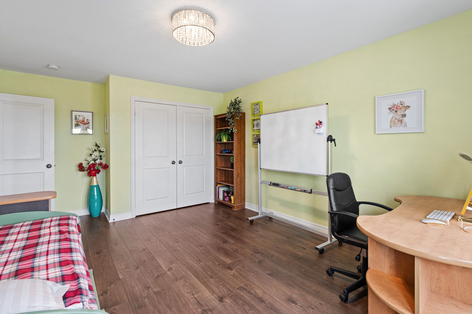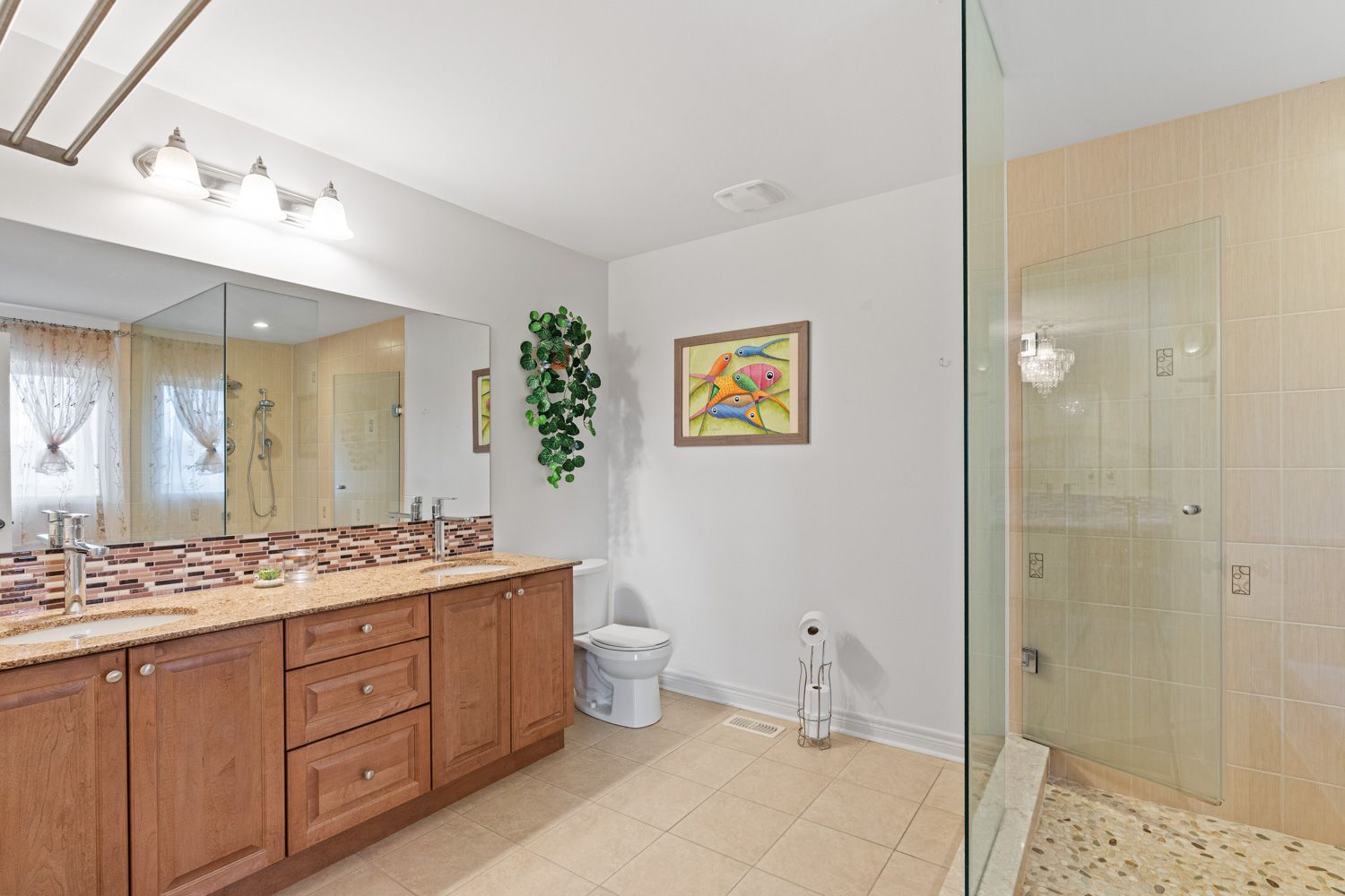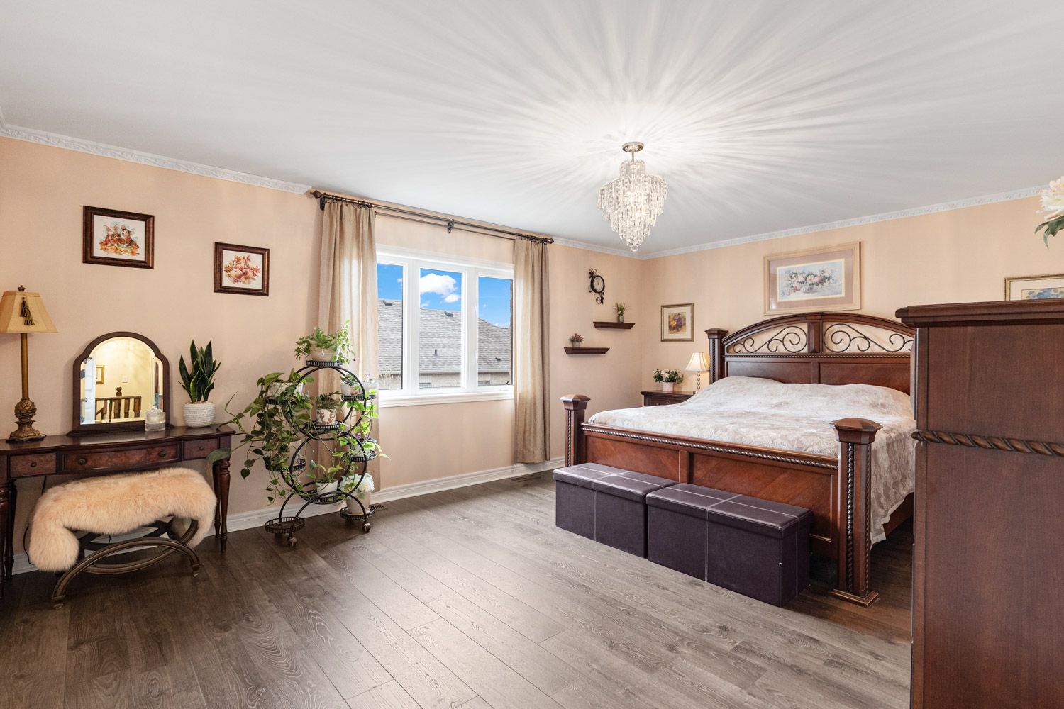 Across the street from the park this 2410 sq ft ( per mpac ) spacious 3 + 1 bedroom vs 4 smaller bedroom optional floorplan comes with over 600 sq ft of lower level finished living space for a total of over 3000 sq ft. Approx $100,000 in upgrades ( please see attached seller feature sheet ). Which includes smart lutron lighting, 2nd floor triple pane windows on north side, smooth ceilings, potlights, crown molding, quartz countertops, upgraded kitchen cabinets/pantry/ backsplash, hardwood and laminate floors no carpet on main and 2nd floor, very convenient 2nd floor laundry, porch enclosure.