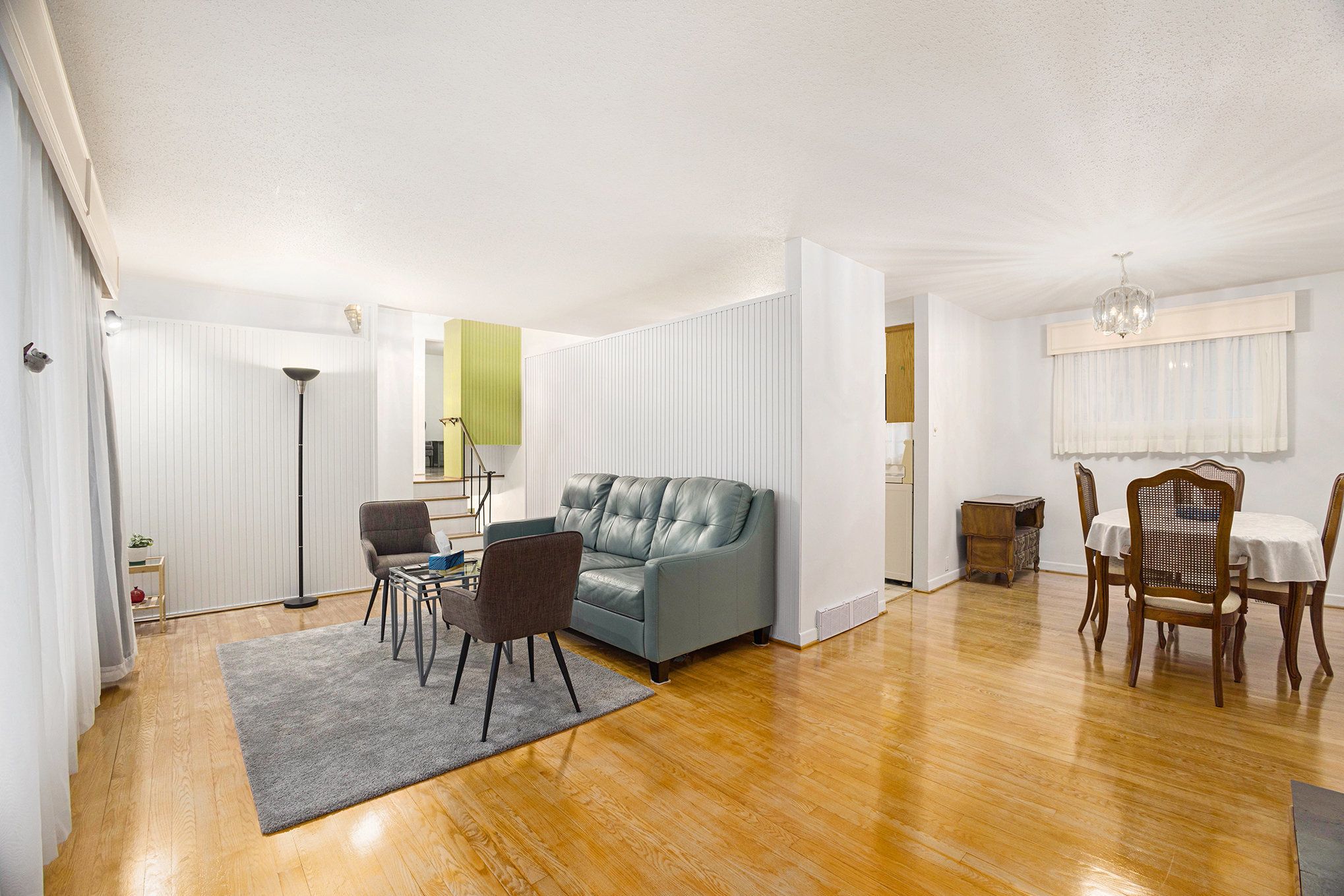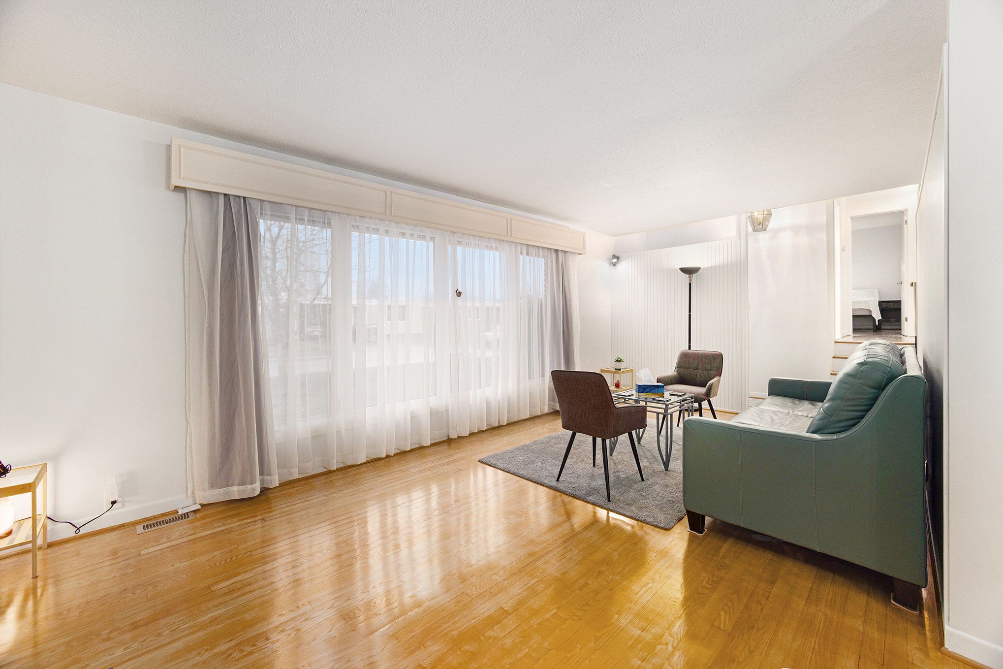 • Hardwood flooring and large windows create a bright and inviting main level.