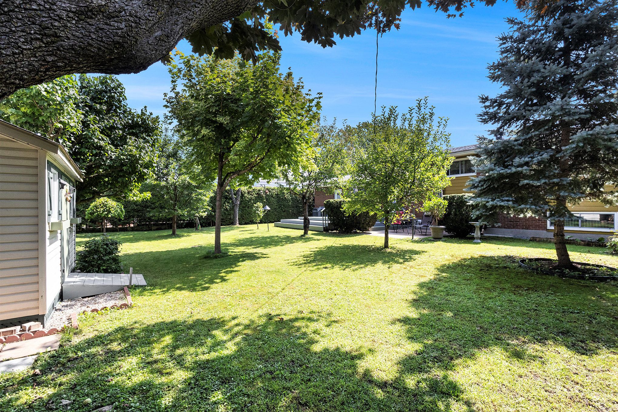 Welcome to this wonderful 3+1 bed, 2 bath, lovingly cared for home and set on a generous 75' x 100' lot in a highly convenient, family-friendly neighbourhood! From the moment you arrive, the stunning landscaping, lush trees, and exceptional curb appeal make a lasting impression, complemented by an elegant interlock front entryway. Step inside to discover hardwood flooring throughout the main level and a cozy living room with fireplace - perfect for relaxing evenings. Large windows fill the space with natural light, creating a warm and inviting atmosphere. The dining room is conveniently located just off the kitchen, making everyday meals and entertaining seamless. The kitchen offers plenty of cabinetry and counterspace for prep, cooking, and hosting. Upstairs, you will find 3 sizeable bedrooms and a well-appointed 4pc bathroom, ideal for family living. The lower level features an additional bedroom, a second 4pc bath, and a versatile kitchenette complete with stove and fridge - an excellent opportunity for an in-law suite, multi-generational living, or potential income space. A spacious rec room, laundry area with sink, and plenty of storage complete this level, offering flexibility for growing families or hobby space. Out back, enjoy your own private oasis with a deck and patio designed for outdoor dining, summer gatherings, or quiet morning coffee. The fully treed yard offers exceptional privacy and is filled with mature greenery, along with a charming garden featuring apple, cherry, sour cherry trees, raspberries, black currants, gooseberries, and blackberries - perfect for those who appreciate nature and homegrown harvests. Pride of ownership shines throughout this home and property, offering both move-in comfort and the opportunity to make it your own with minimal effort. Ideally situated close to schools, parks, shopping, public transit, and everyday amenities, this location delivers both convenience and a true sense of community. Don't miss this gem!