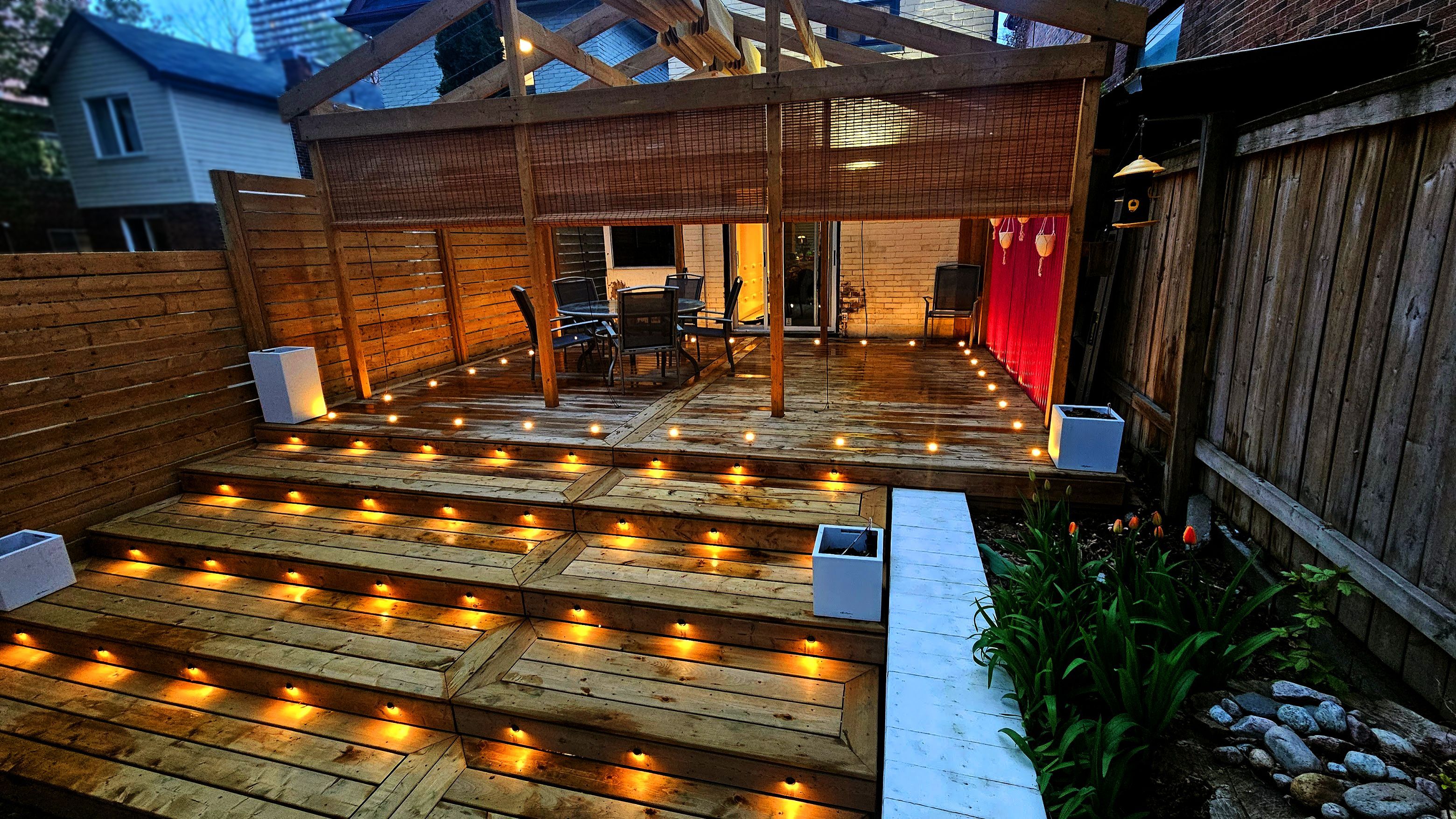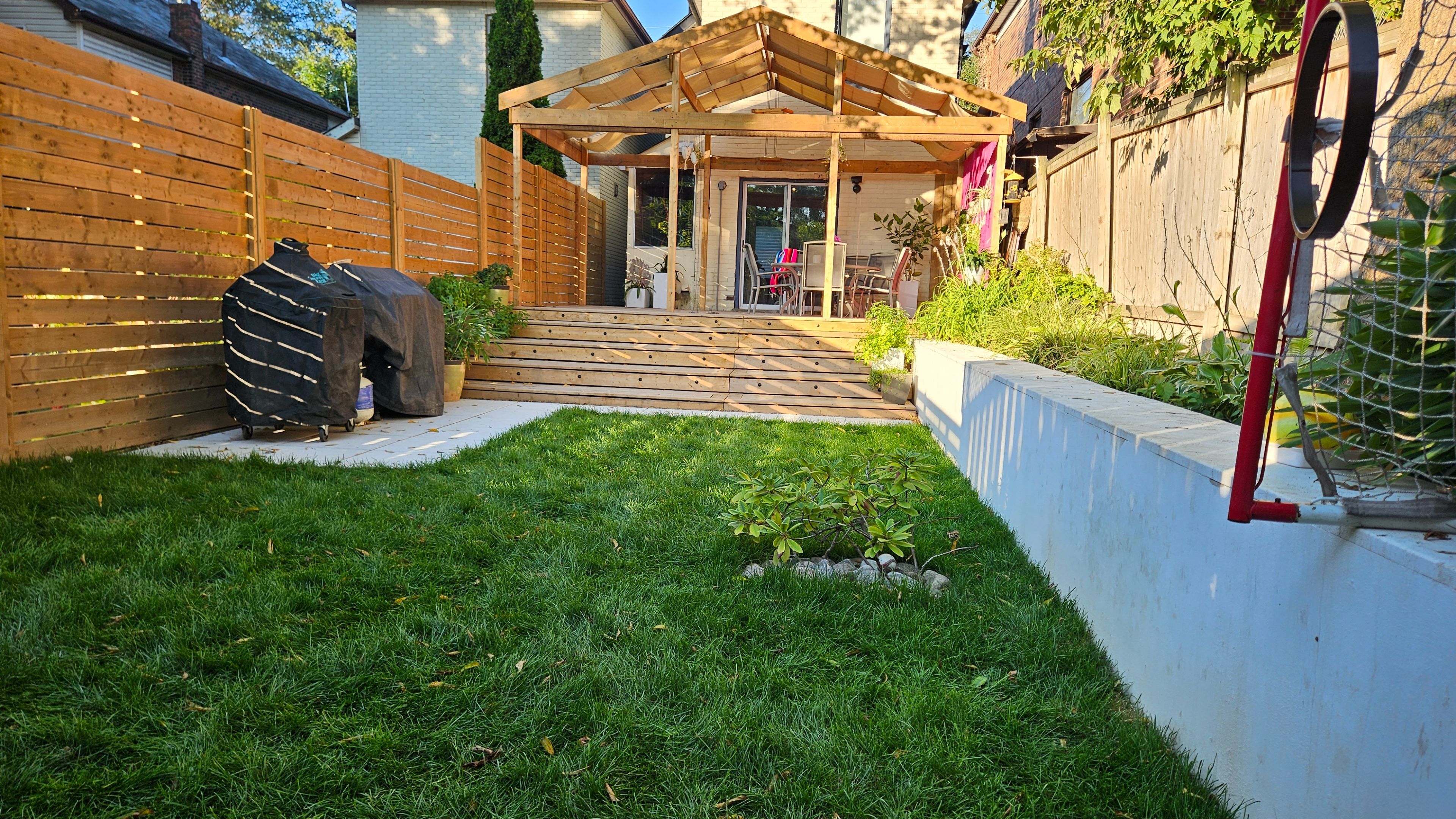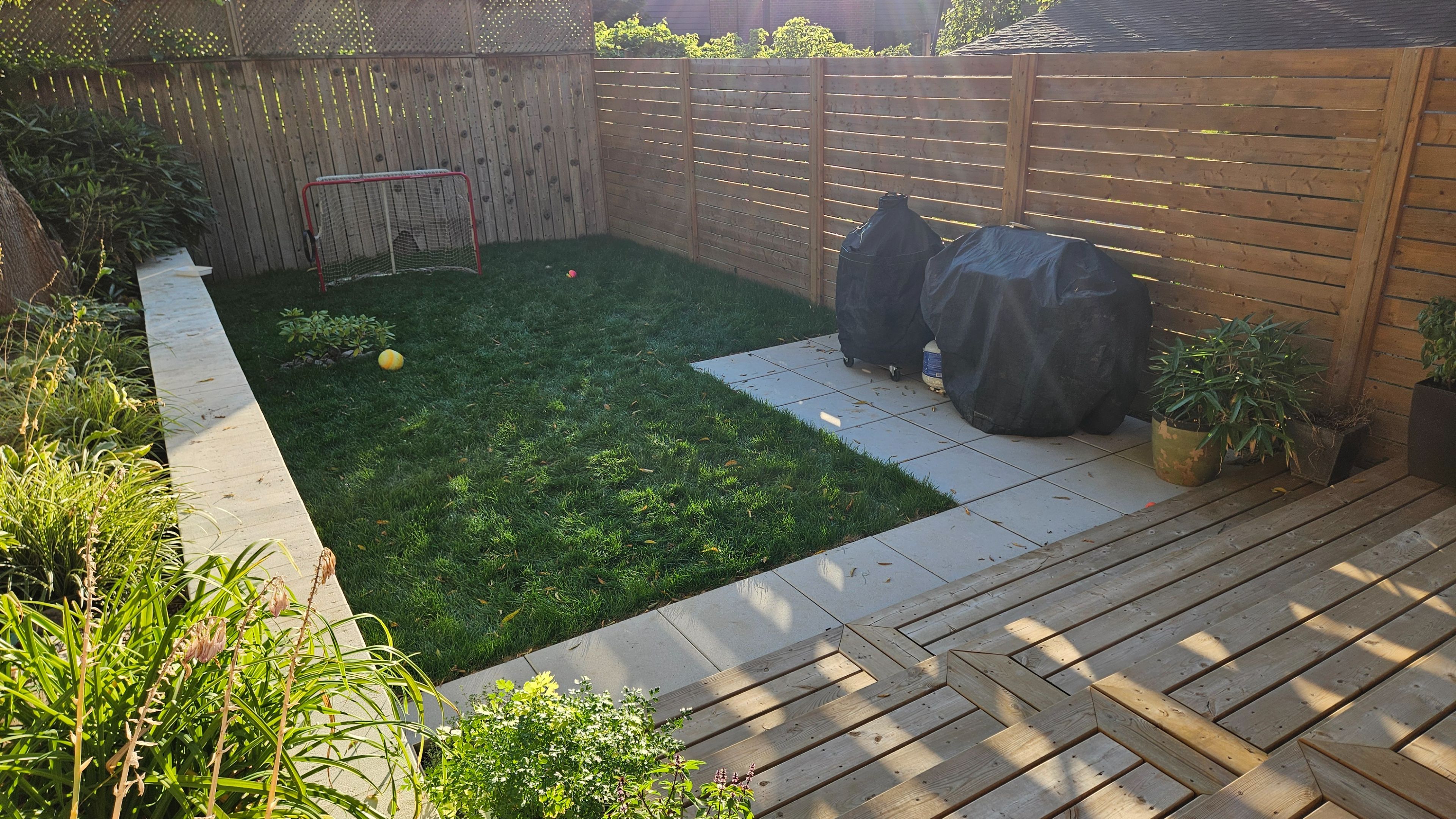 • Relaxing backyard oasis with a new deck for summer gatherings.
