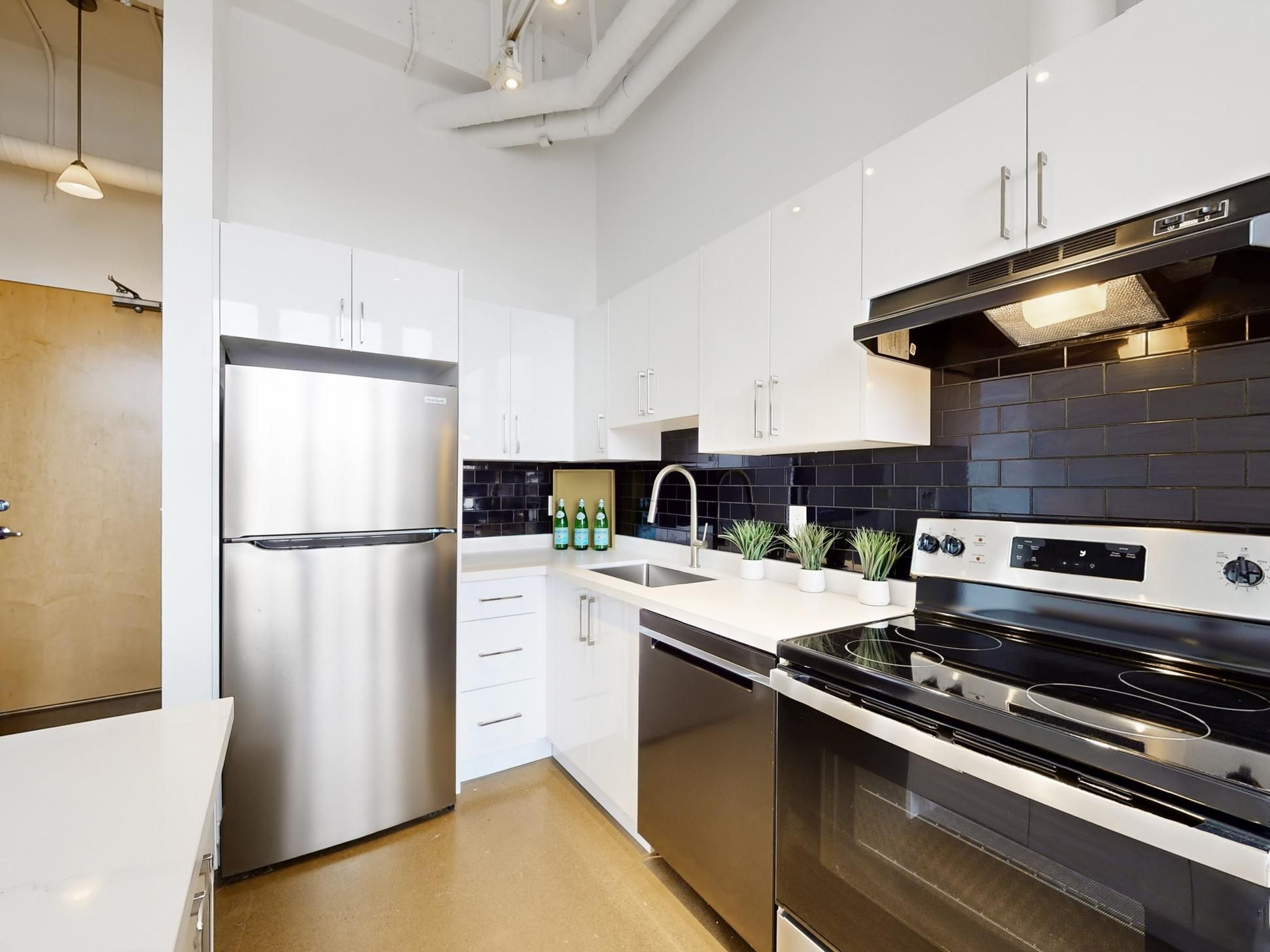 Elevate your lifestyle in this beautifully updated loft perfectly situated within one of kitchener's most iconic historic buildings. This immaculate professionally painted 1 bedroom plus den highlights striking industrial architecture, featuring soaring 13 -foot ceilings and expansive windows that bathe the space in abundant natural light, creating a bright and inviting atmosphere. The heart of this home is a stunning modern kitchen, complete with brand-new stainless-steel fridge and stove appliances, quartz countertops, and a large functional island that offers additional seating for entertaining as well as ample storage for all your culinarily needs. Residents enjoy access to premium building amenities including a rooftop patio with a communal barbeque area perfect for entertaining. Located steps away from transit, restaurants, university of waterloo school of pharmacy and the new google office.