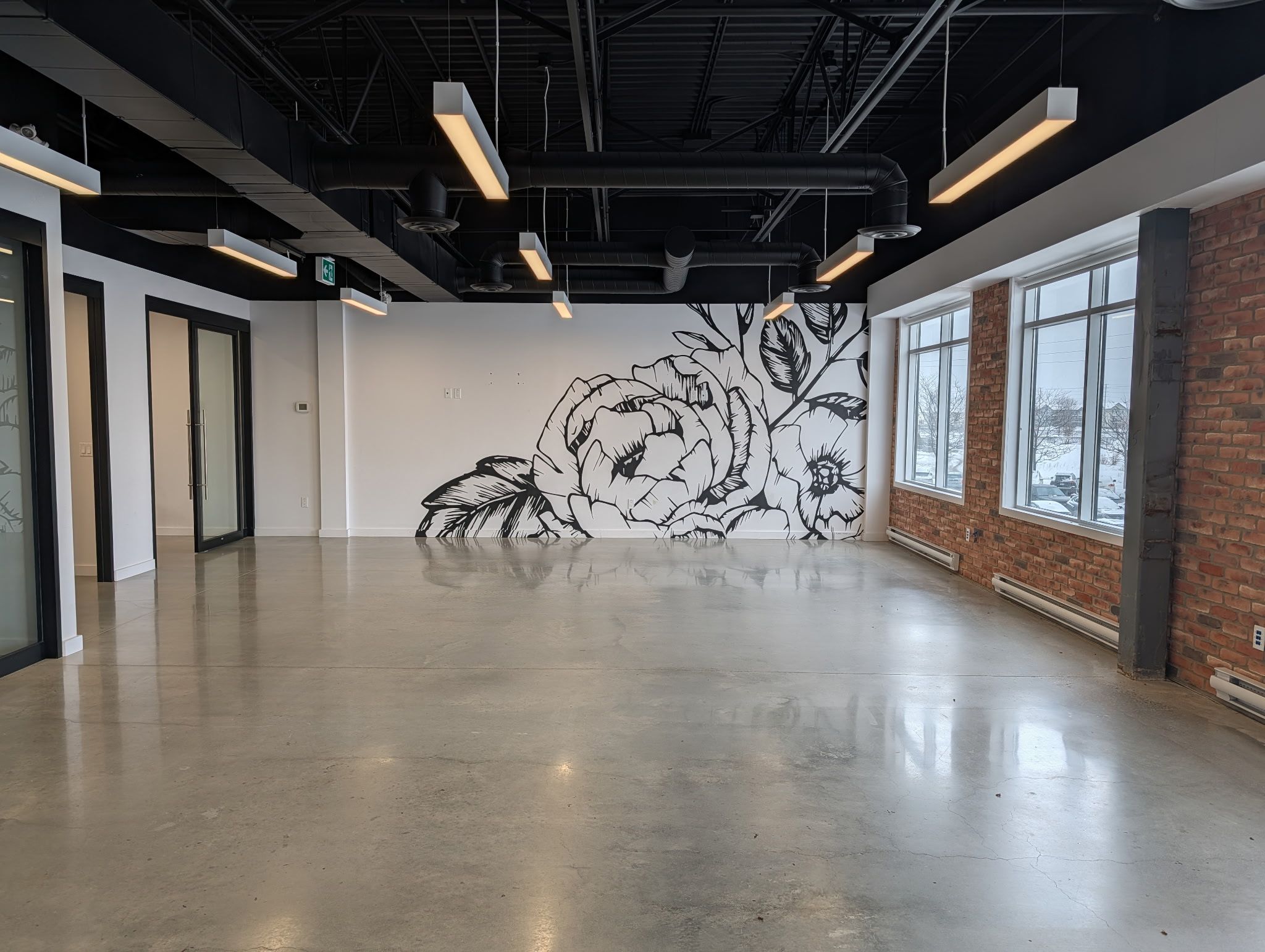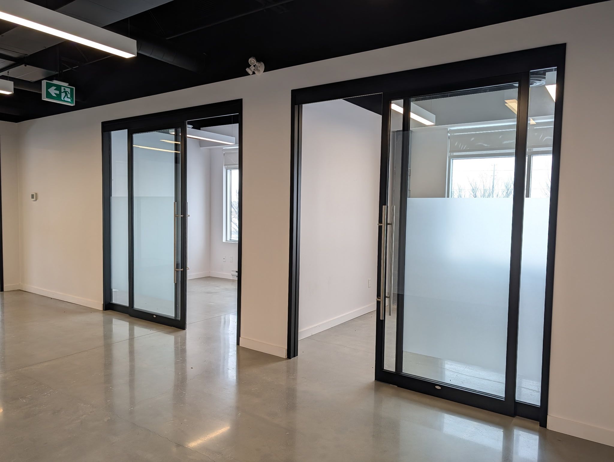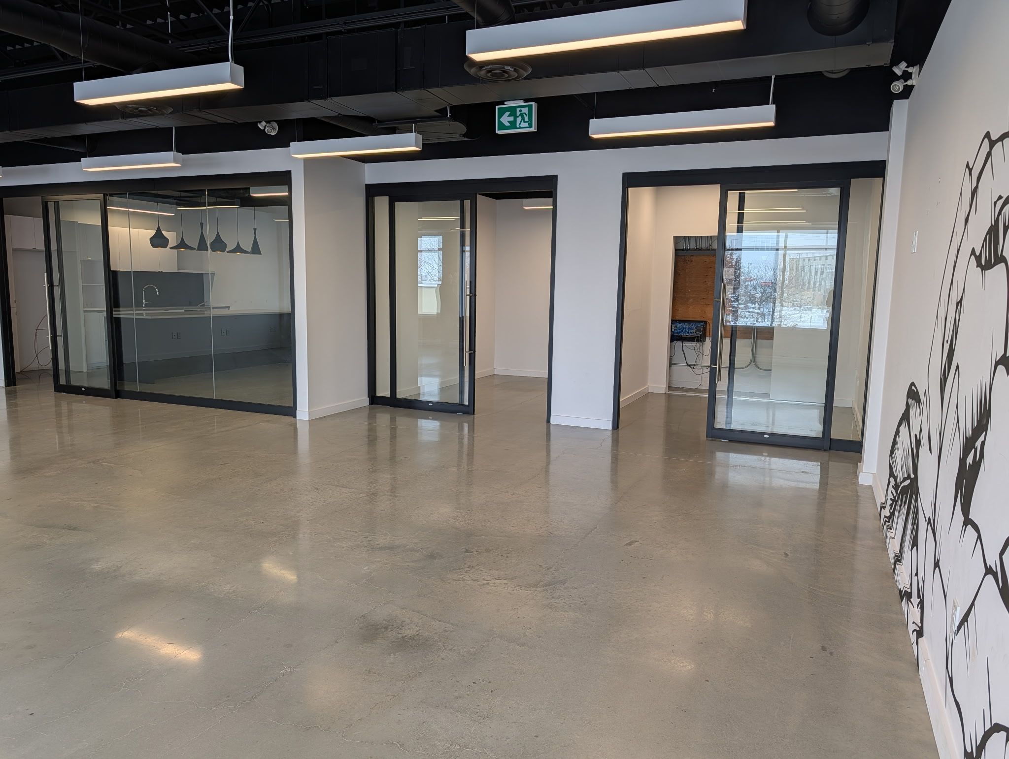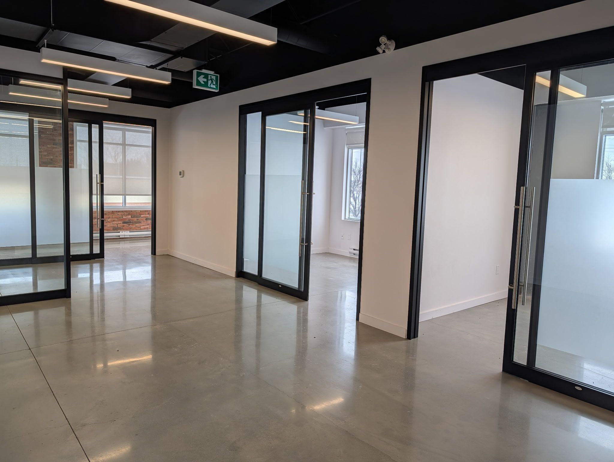 • Includes reception, boardroom, kitchen, and both open and enclosed offices.