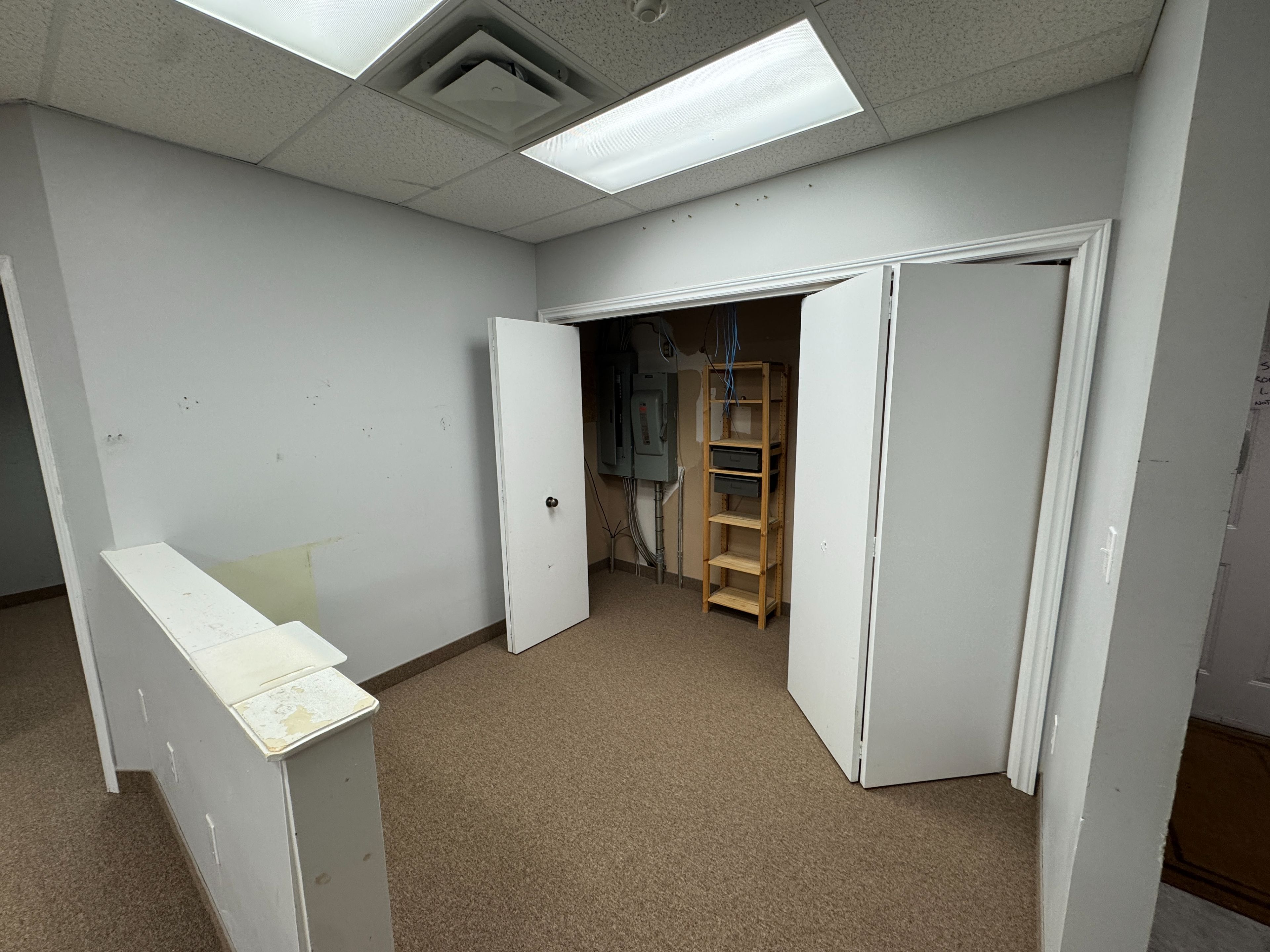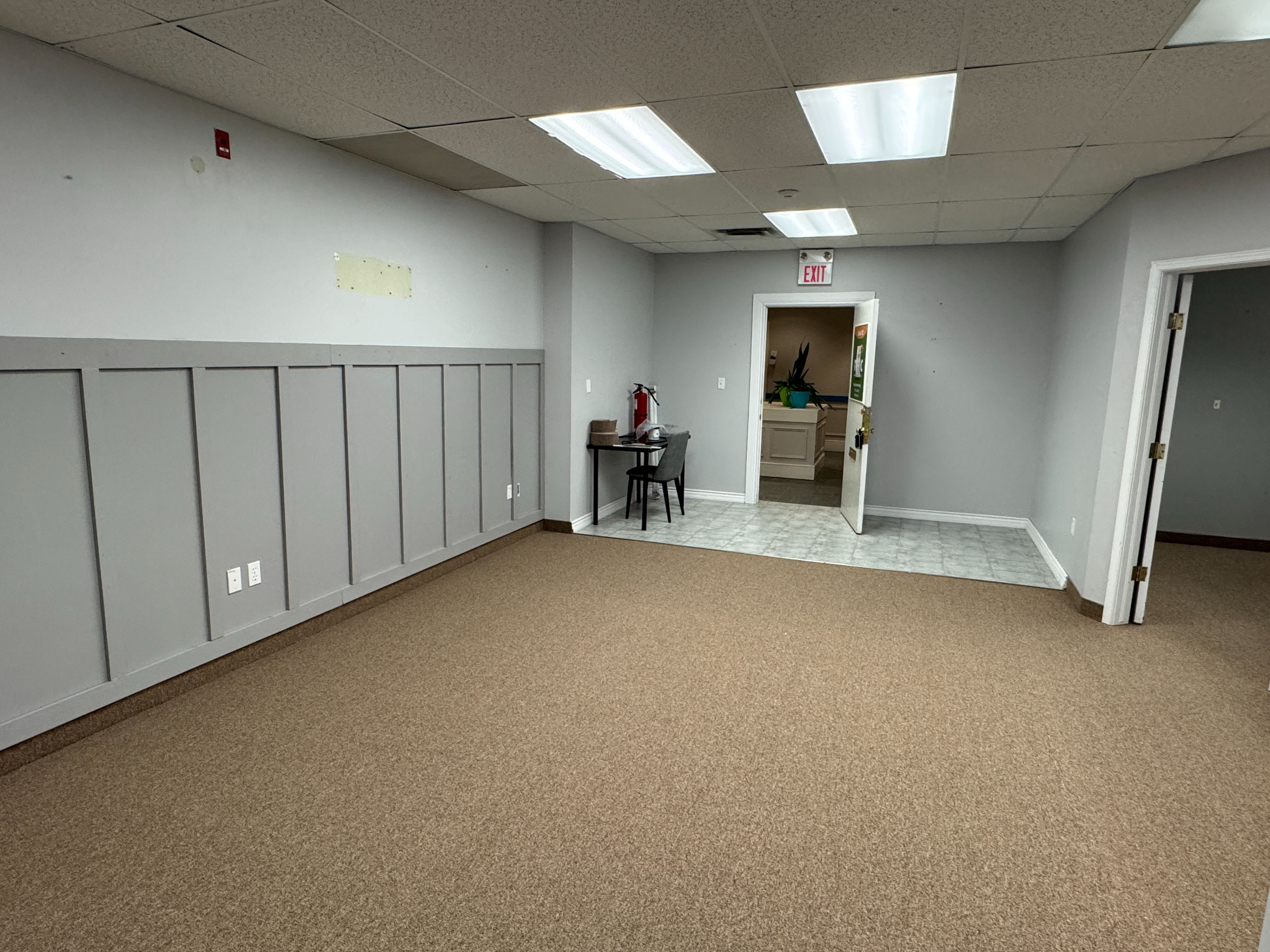 • Features three spacious private offices for varied uses.