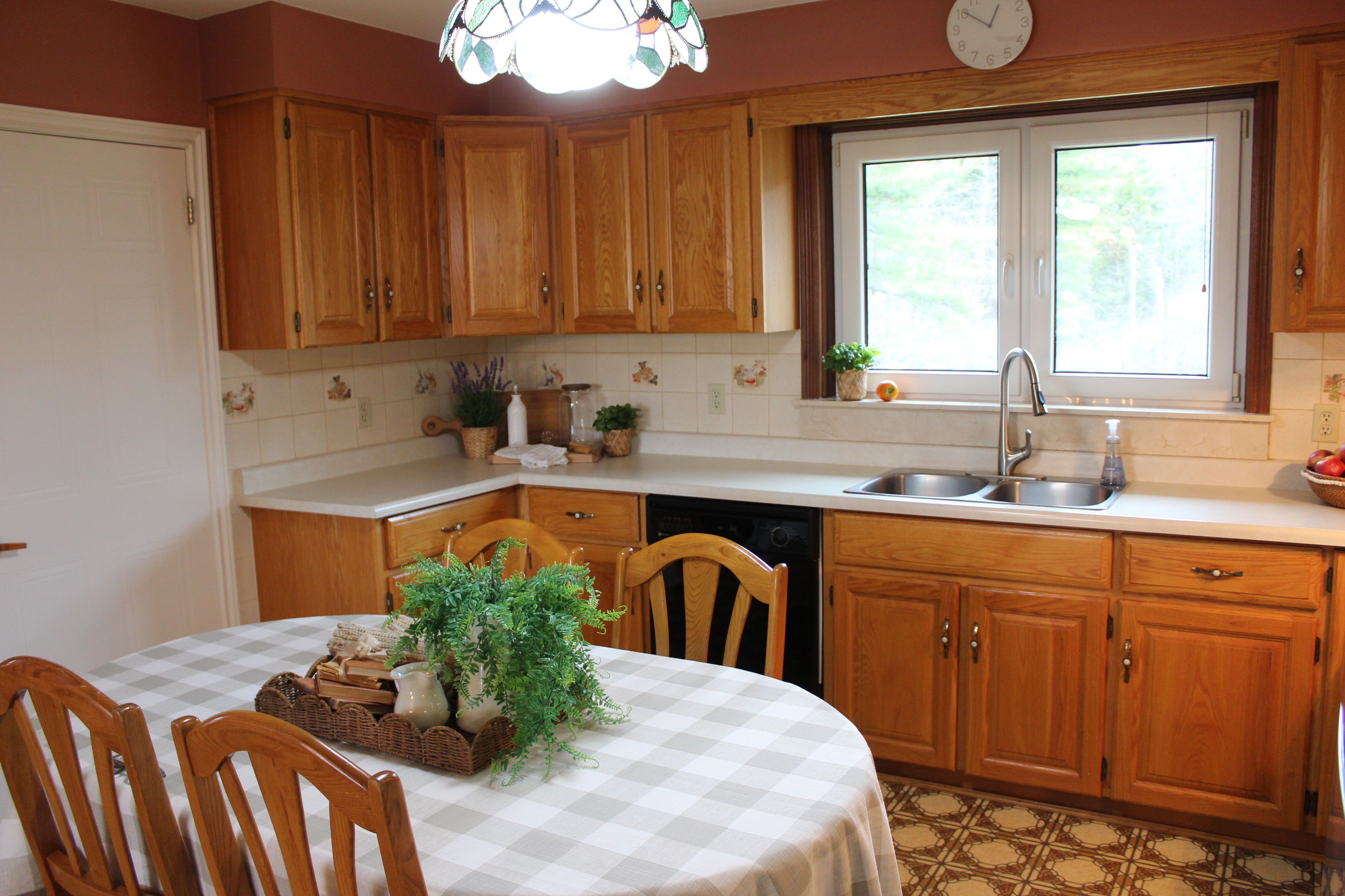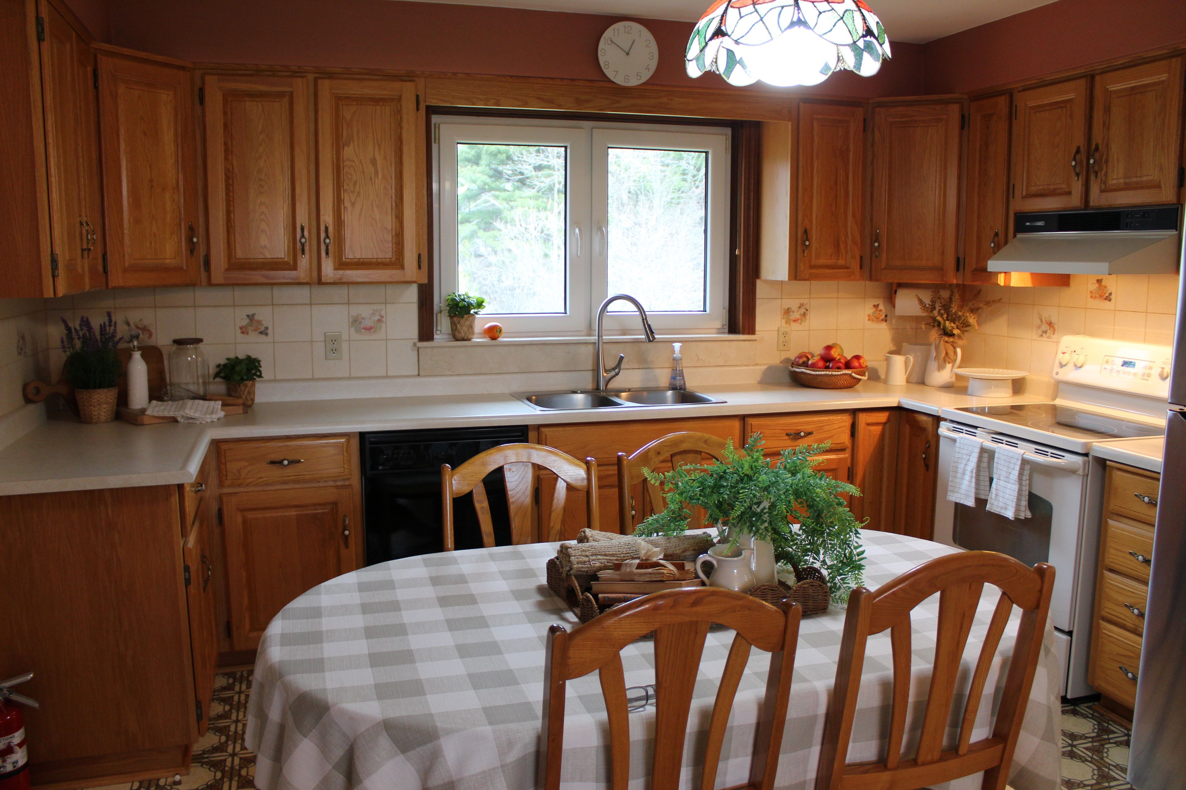 • Welcoming eat-in kitchen and cozy living room with wood-burning fireplace.