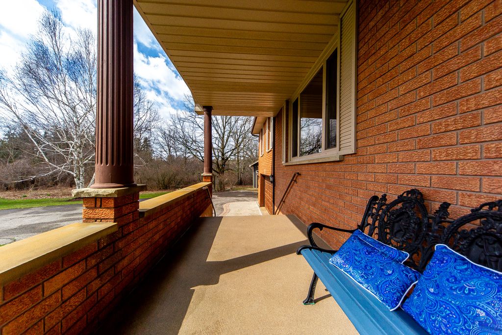 Discover the charm of this 2,066 sq ft brick bungalow, perfectly nestled on 1. 4 acres backing onto conservation land along 16 mile creek. Step inside to a welcoming eat-in kitchen, a bright dining room, and a cozy living room complete with a wood-burning fireplace-ideal for relaxing evenings. The home offers three comfortable bedrooms, all with hardwood floors, including a primary with a 3-piece semi-ensuite. The spacious full basement with 9-foot ceilings provides endless possibilities, already equipped with a roughed-in bathroom and a wine cellar tucked under the garage. With an efficient electric furnace, heat pump, new central air (all 2023), and 200-amp service, upgraded windows, this home is ready for modern living. Outdoors, enjoy a large 16 x25 ft deck, a double attached garage, and a 36' x 24' shop-perfect for hobbies, storage, or workspace. This property seamlessly blends comfort, nature, and opportunity in a stunning natural setting with- in walking distance to hilton falls conservation