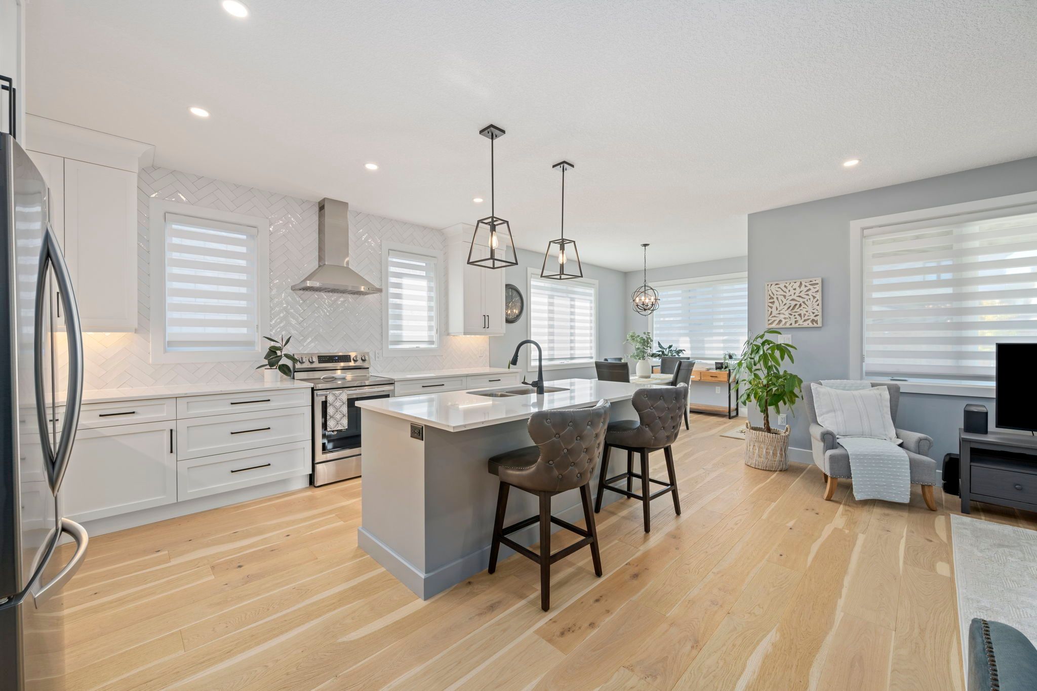 • Open concept layout ideal for entertaining with a quartz island and gas fireplace.