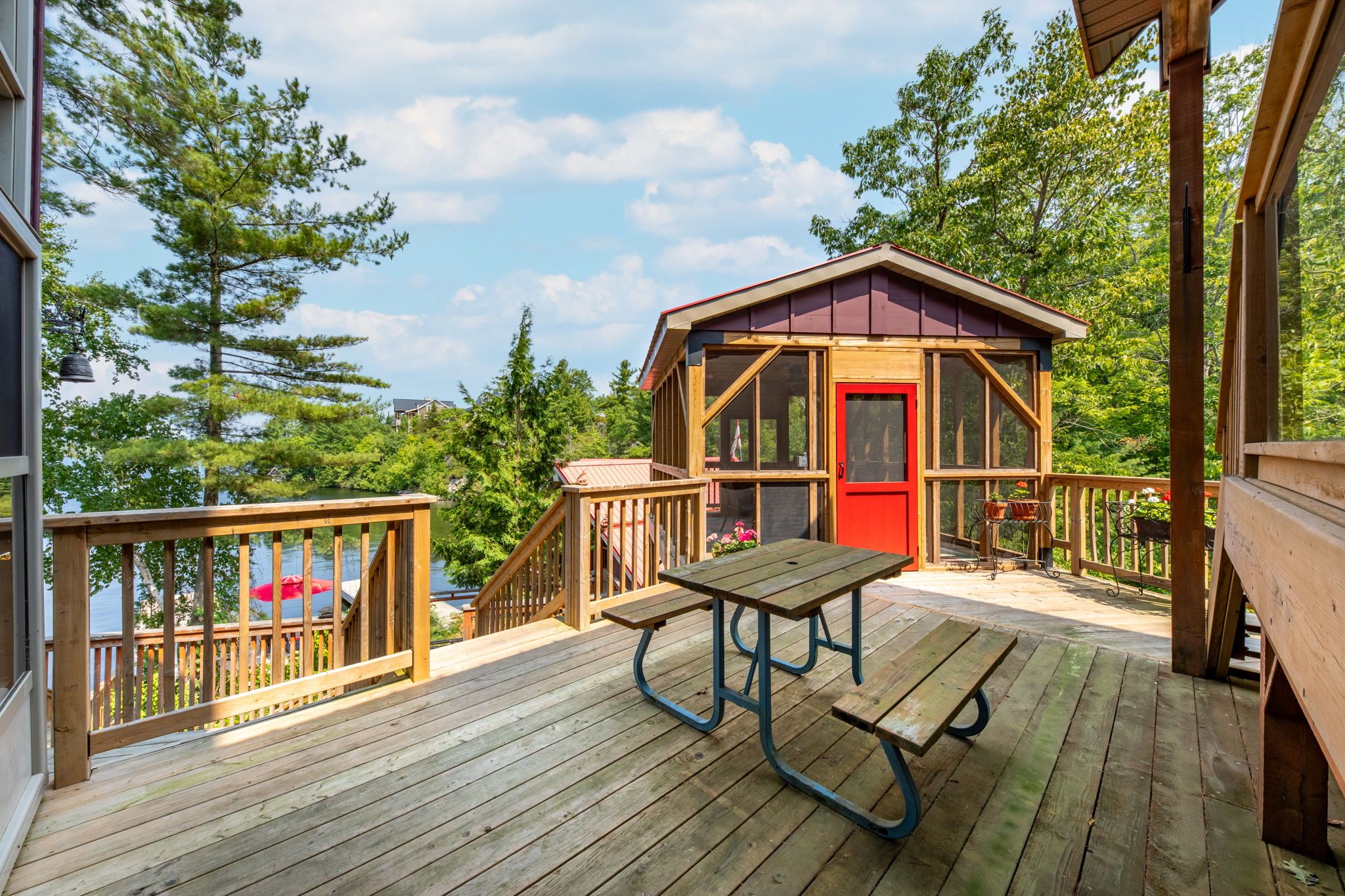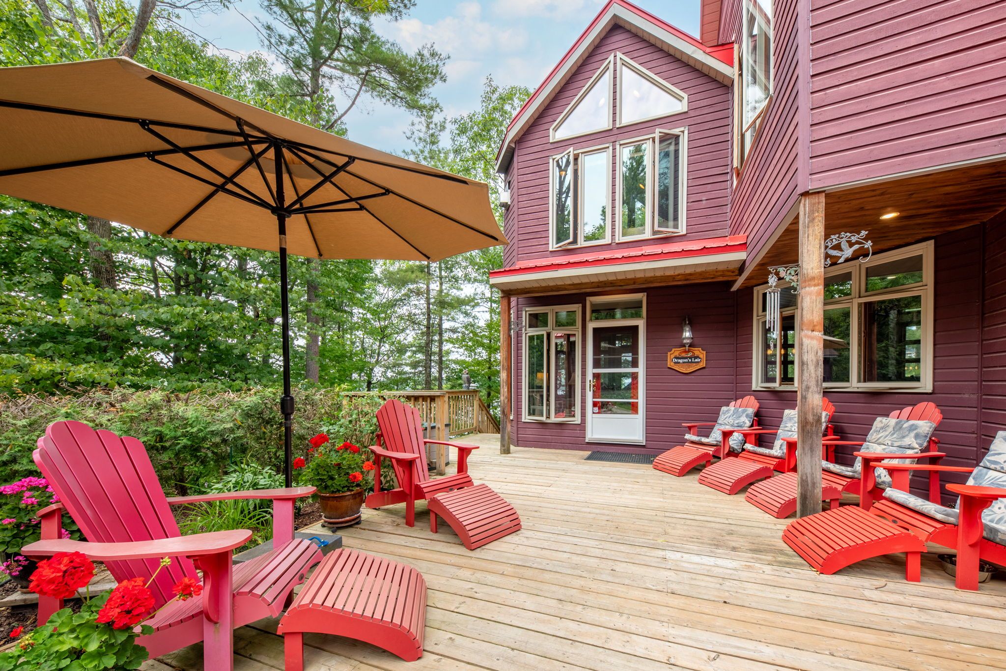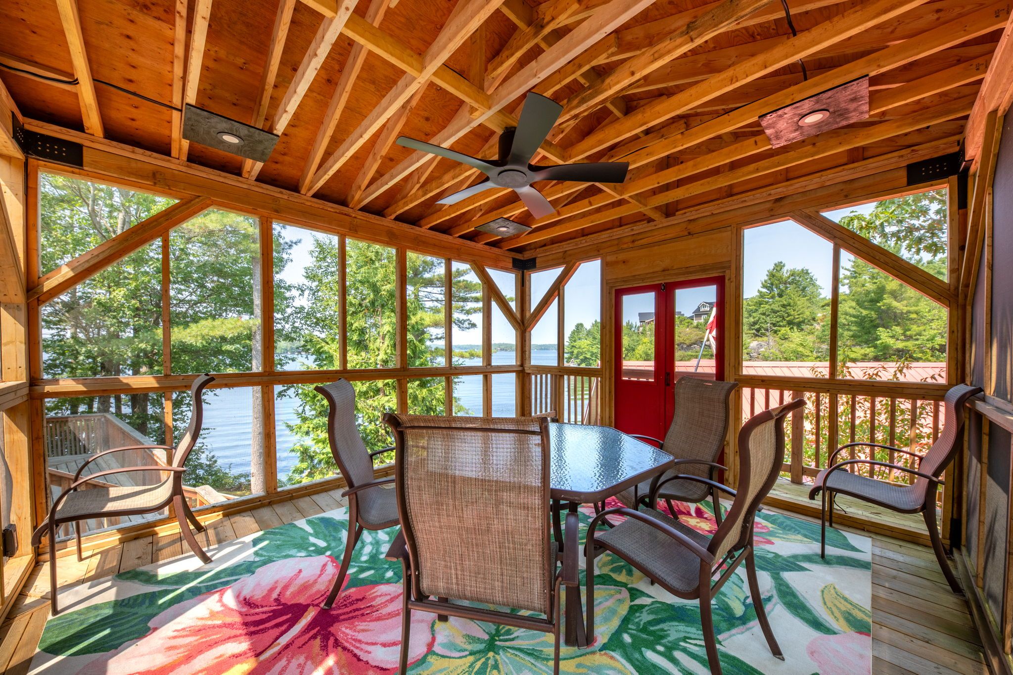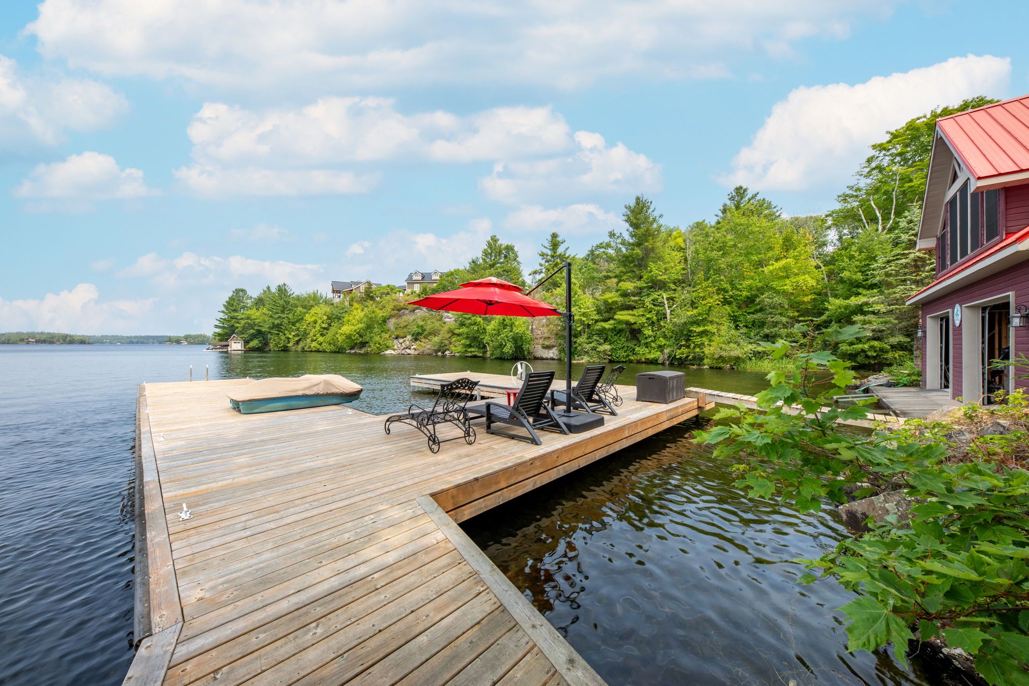 Discover your waterfront sanctuary where exceptional craftsmanship meets pristine natural beauty. This stunning 3-bed, 3-bath home showcases superior construction throughout, featuring an open concept design that connects living spaces while maximizing the breathtaking water views through expansive windows that flood the interior with natural light. The heart of this home centers around a massive stone fireplace, creating a focal point perfect for cozy evenings after days spent on the water. The thoughtful layout includes generous guest accommodations, ensuring friends and family feel welcome during their lakeside retreats. Multiple ceiling fans provide comfort during warm summer months, while the winterized construction allows for year-round enjoyment. Step outside to experience the magic of waterfront living. The property has an array of outdoor amenities, including a large dock perfect for mooring watercraft, a convenient double marine rail for easy boat launching, and your own private boathouse for secure storage. Gloucester pool offers refreshing swims, scenic water views and access to georgian bay and severn river, while the screened patio provides bug-free relaxation during summer evenings. Multiple decks create various outdoor entertainment zones, complemented by beautifully maintained gardens that add natural charm to the landscape. A practical shed offers additional storage for outdoor equipment and seasonal items. Privacy is paramount here, with the secluded location ensuring peaceful mornings with coffee overlooking the water and tranquil evenings watching spectacular sunsets. Whether you're an avid boater, swimming enthusiast, or simply someone who appreciates the finer things in life, this property delivers an unmatched combination of luxury, functionality, and natural splendor. This is more than just a house it's your gateway to the ultimate waterfront lifestyle, where every day feels like a vacation and memories are made to last a lifetime.