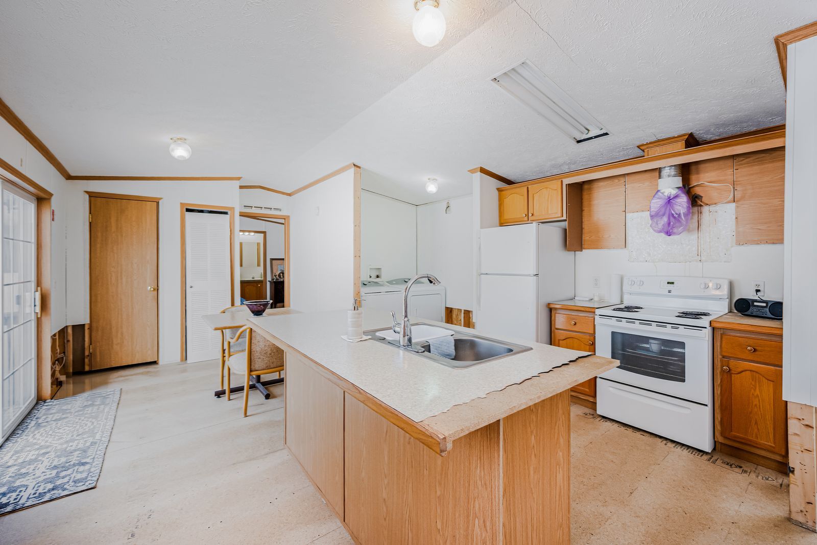 Low-maintenance one-level living in quiet silver creek estates with opportunity to personalize & build value! This is the kind of place where your ideas actually matter, bring the pinterest inspiration, make upgrades on your timeline, and let the value grow with every improvement you make. Set in quiet, well-established silver creek estates, you're only 5 minutes from orillia for shopping, restaurants, healthcare services, and everyday essentials. Updated landscaping, a newly paved driveway, and a detached shed or outbuilding add instant practicality, and the large front deck is ready for slow mornings outdoors. The interior is clean and well-maintained with generous room sizes and an open layout that keeps everyday life simple. The kitchen delivers an island with a double sink, included appliances, and clear sightlines into the dedicated dining space and living room, where movie nights, game days, and laid-back evenings feel right at home. Two bedrooms and two full bathrooms round it out, including a primary suite with a walk-in closet and a private ensuite with a dual sink vanity. A newer furnace and air conditioner add confidence, and no rental items means everything is owned. It's a smart, low-maintenance option for first-time buyers or downsizers who want a solid start now, with the opportunity to add value over time as you complete the finishing touches.