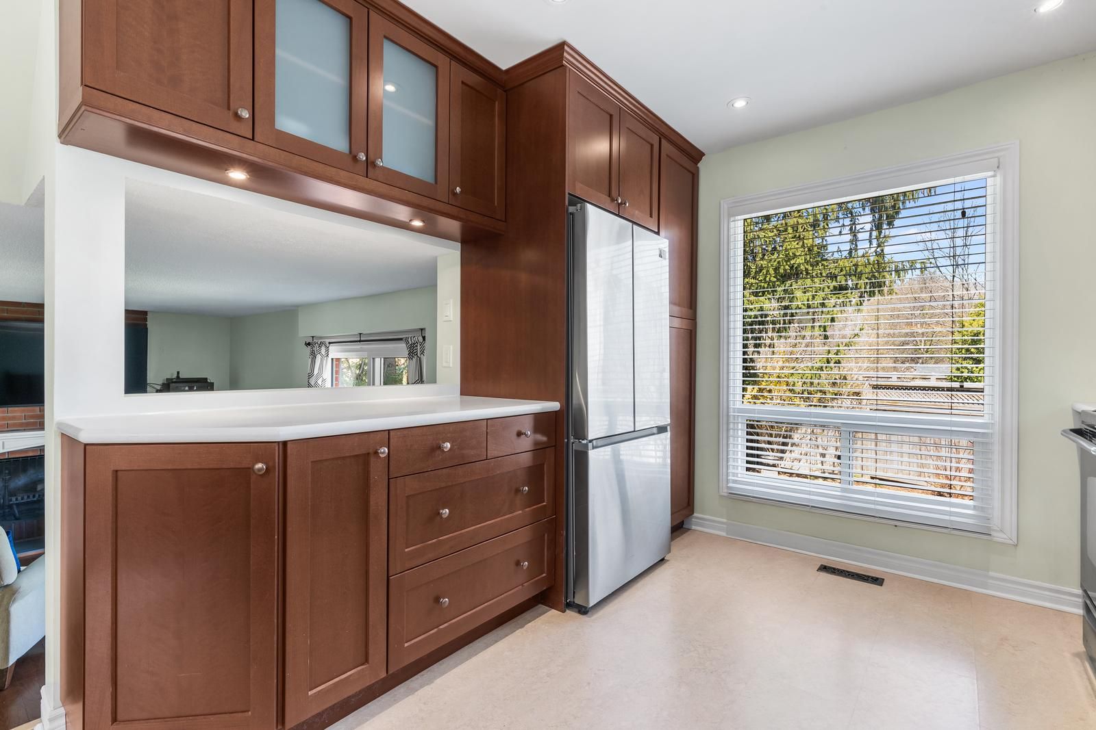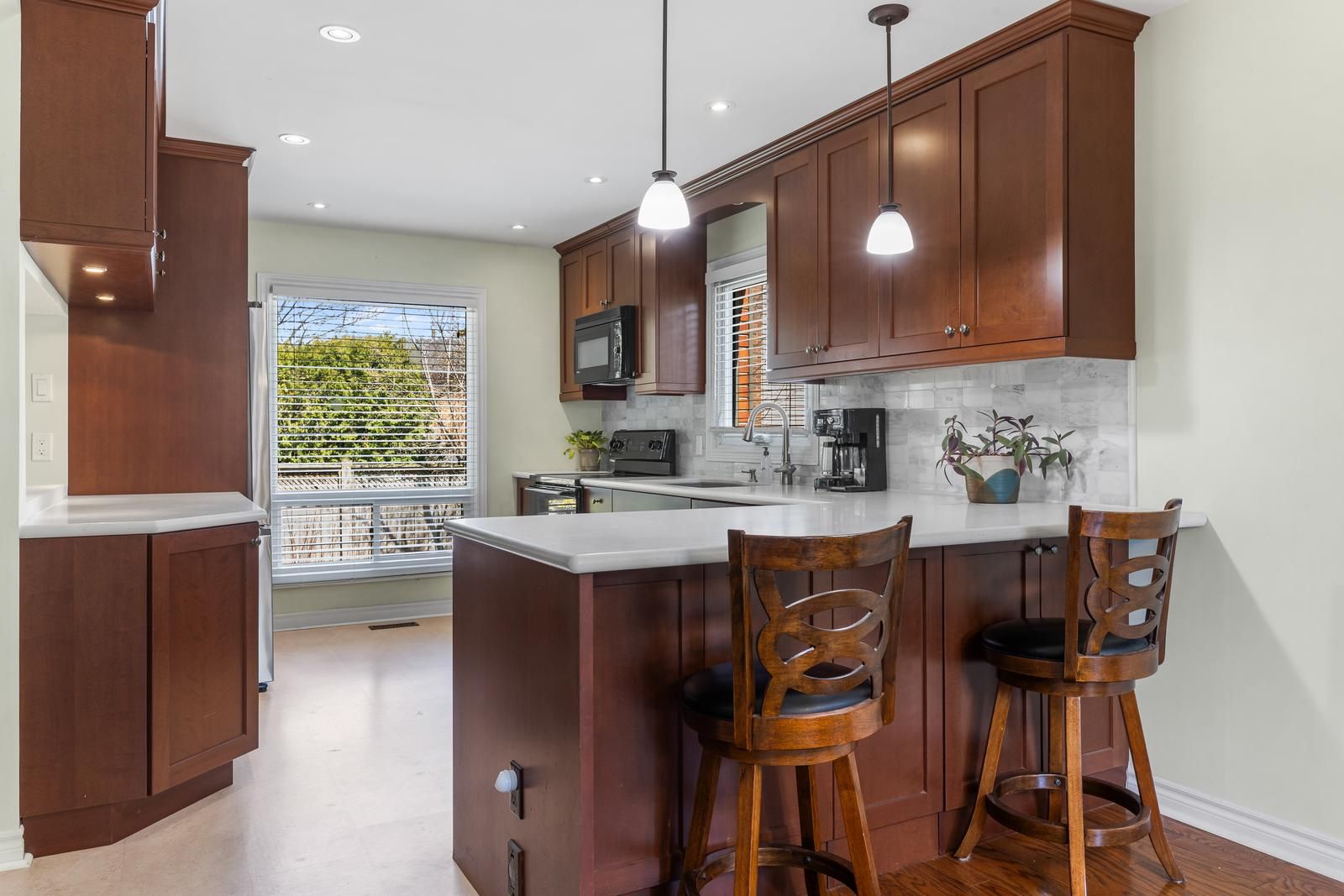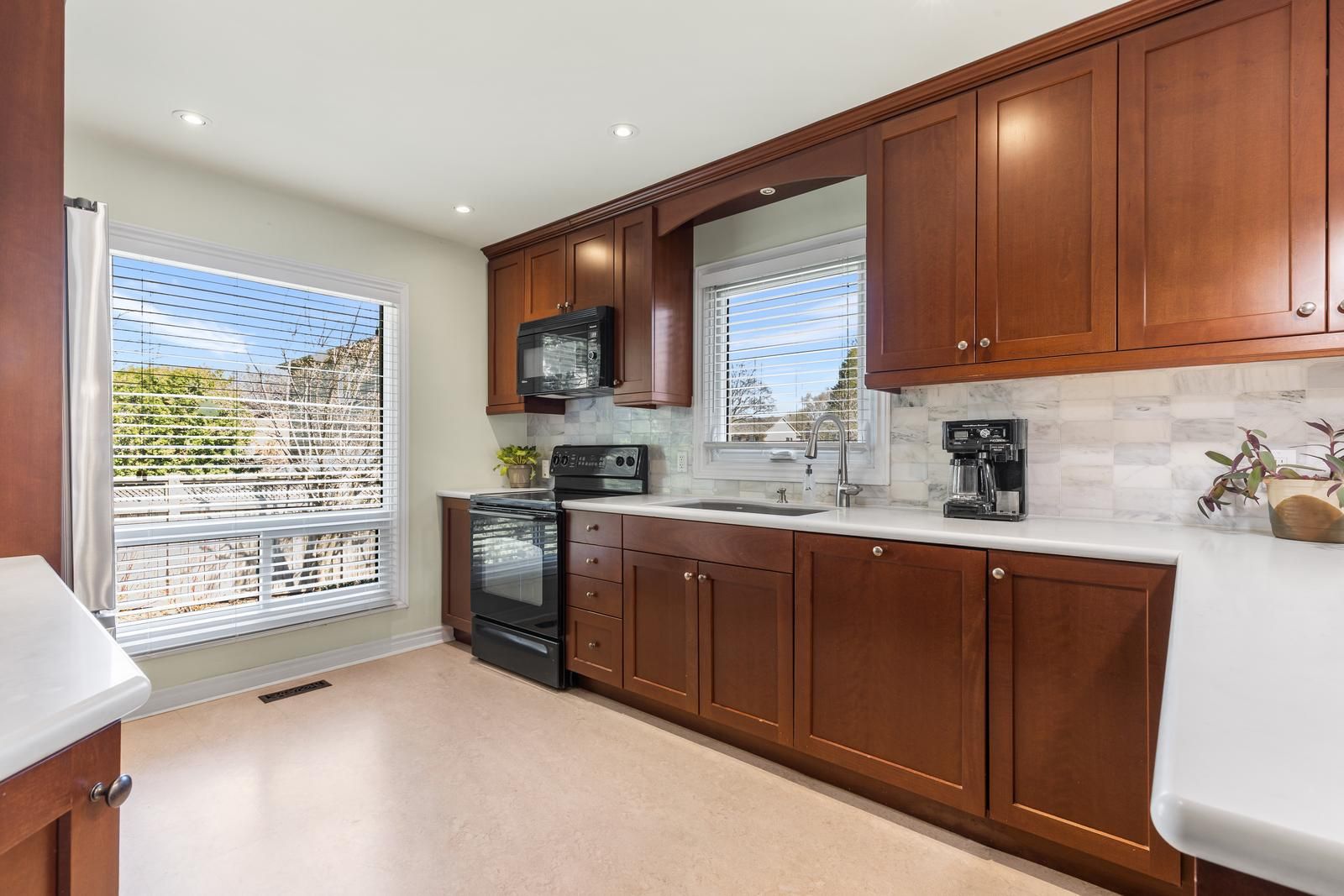 • Beautifully renovated kitchen with quartz countertops and custom cabinetry.