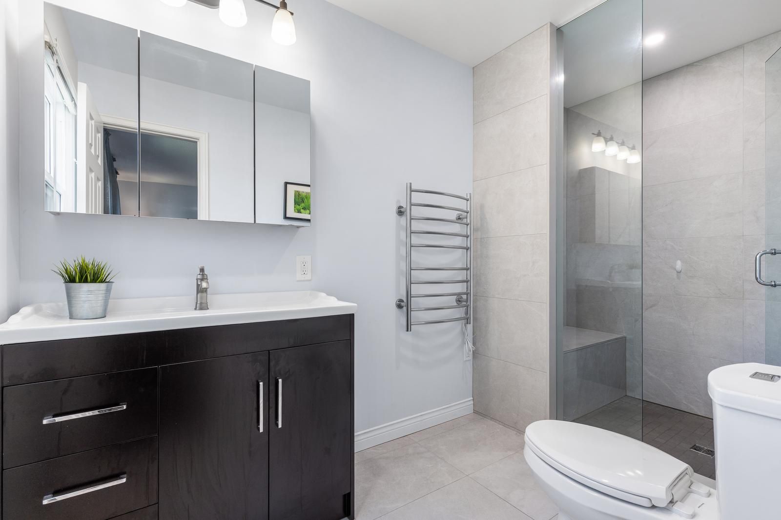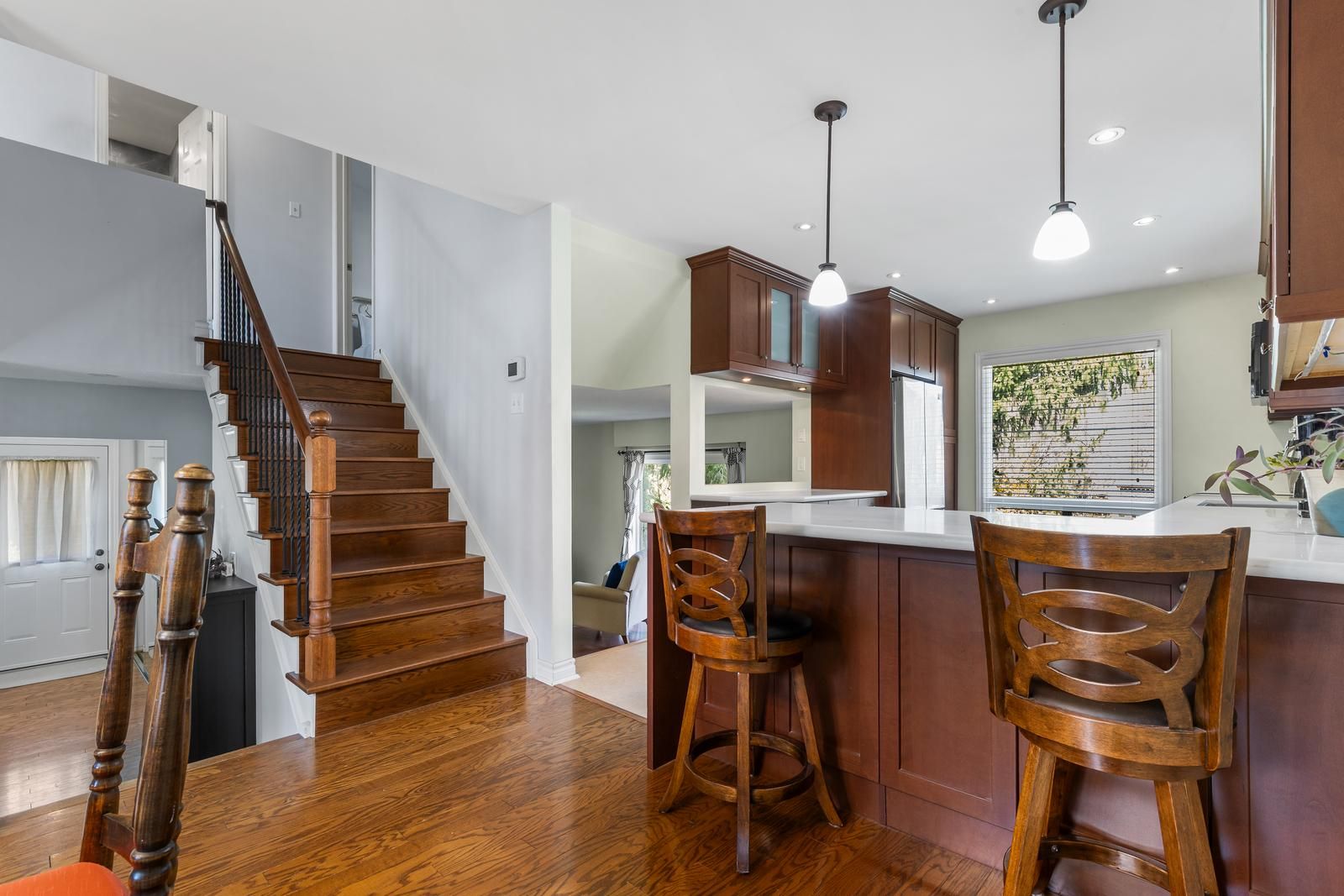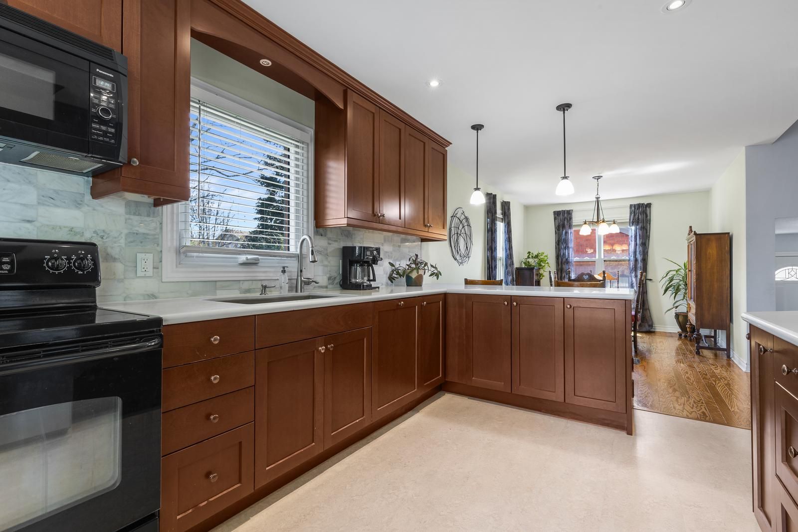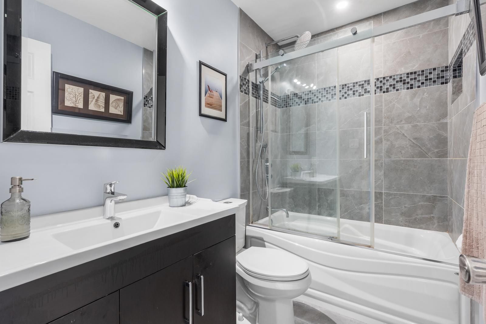 • Beautifully renovated kitchen with quartz countertops and custom cabinetry.