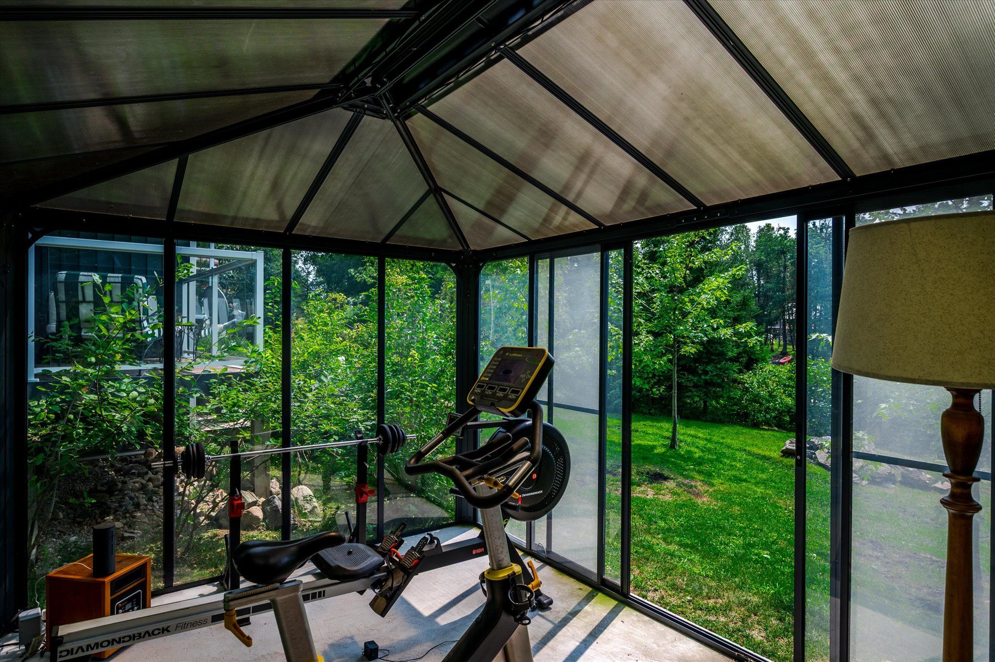 Magnificent year-round waterfront retreat offering approximately 675 feet of river frontage on 1. 66 acres of wooded landscape. Tucked along the serene waters of beaver creek, this contemporary home enjoys boating access to crowe lake and is located just 10 minutes outside marmora, ontario. Inside, the home has been meticulously updated with a modern design that blends comfort and style. The sunken living room creates a cozy yet spacious atmosphere, centered around a beautiful wood stove, perfect for quiet evenings while enjoying views of the river. The custom-designed kitchen features quartz countertops, sleek finishes, and a charming dining area nearby. Down the hall are two spacious bedrooms, including the primary suite with a private walkout balcony for two overlooking the water. A convenient laundry room and a modern bathroom with glass shower complete the home's refined interior. Step outside and experience everything this remarkable property has to offer. Relax in the luxurious private spa tub, enjoy a workout in the fully enclosed glass gym overlooking the water, take a leisurely boat ride along the river to crowe lake and its popular sandbar or follow the peaceful forest trail toward the fidlar rapids, where a charming gazebo invites you to unwind with the soothing sounds of nature. The detached insulated 1. 5 car toy garage provides excellent storage for recreational gear and includes an upper loft finished as a bright guest space, studio, or office, complete with a ductless heat pump and walkout sundeck overlooking the river. A clearing in the woods has also been prepared for a future guest cabin or bunkie, offering even more possibilities for hosting family and friends. This property is a rare blend of nature, privacy, and modern comfort - more than just a home, it's a lifestyle... And definitely worth the drive to experience.
