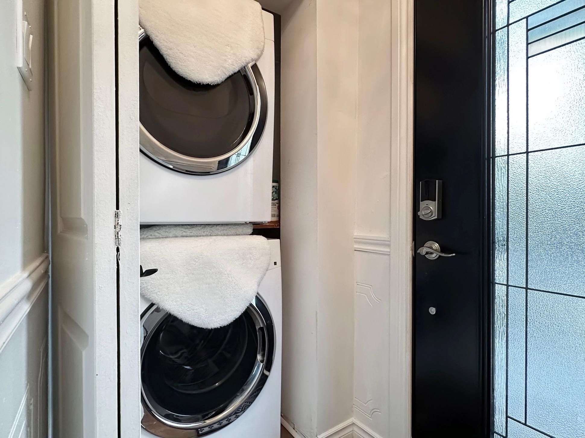 • Chef's kitchen with quartz countertops and stainless steel appliances.