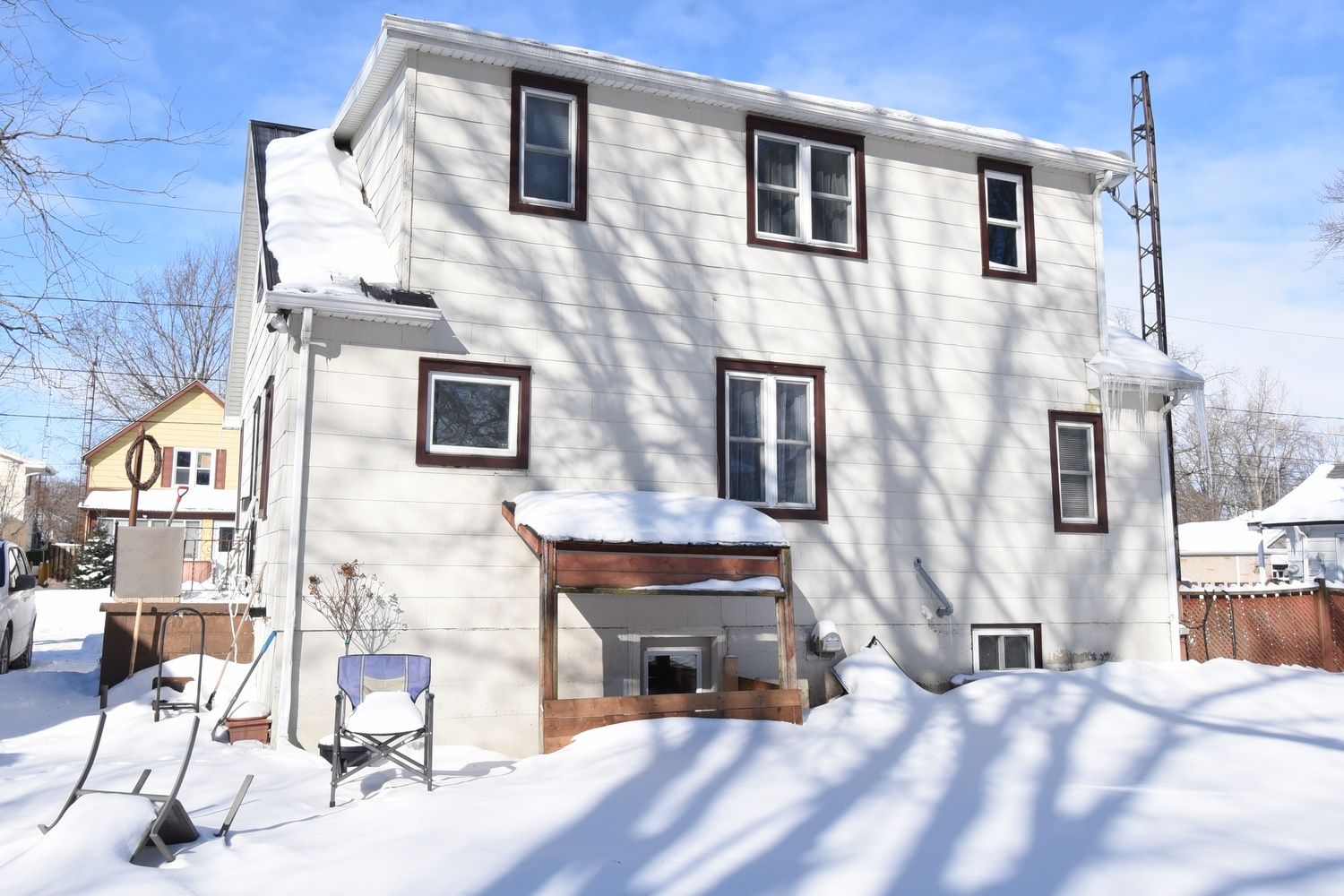 4+1 bedroom, 1. 5-storey, 2-bath home located on a quiet residential street in dunnville on an extra-wide 76-foot lot, featuring two bedrooms on the main floor. The layout allows this property to function as a large single-family home, with the upper level suitable as a spacious primary bedroom or private master retreat, or it can be configured into three separate units consisting of a basement unit, main-floor unit, and upper-level unit, each with its own separate entrance. Extensive updates were completed in 2026, including new kitchen cupboards, new main-floor flooring, a remodeled main-floor bathroom, fresh paint throughout, a new side entrance door, new side fencing, hot water tank 9 owned) ss fridge and stove. Mitsubishi heat pump and ac 2020. The home includes a full poured concrete basement with a separate entrance, supporting the multi-unit configuration. Property is being sold as-is.