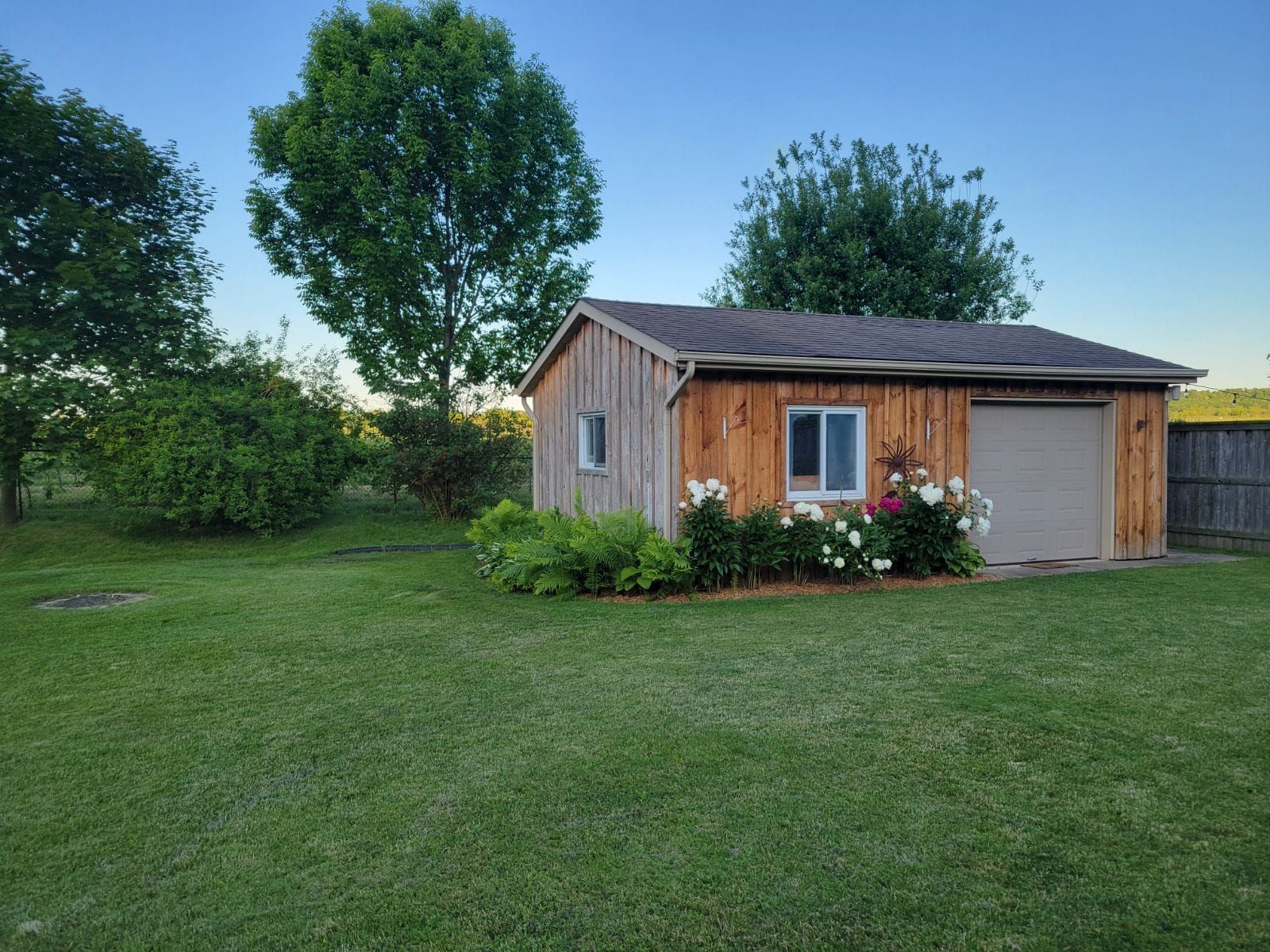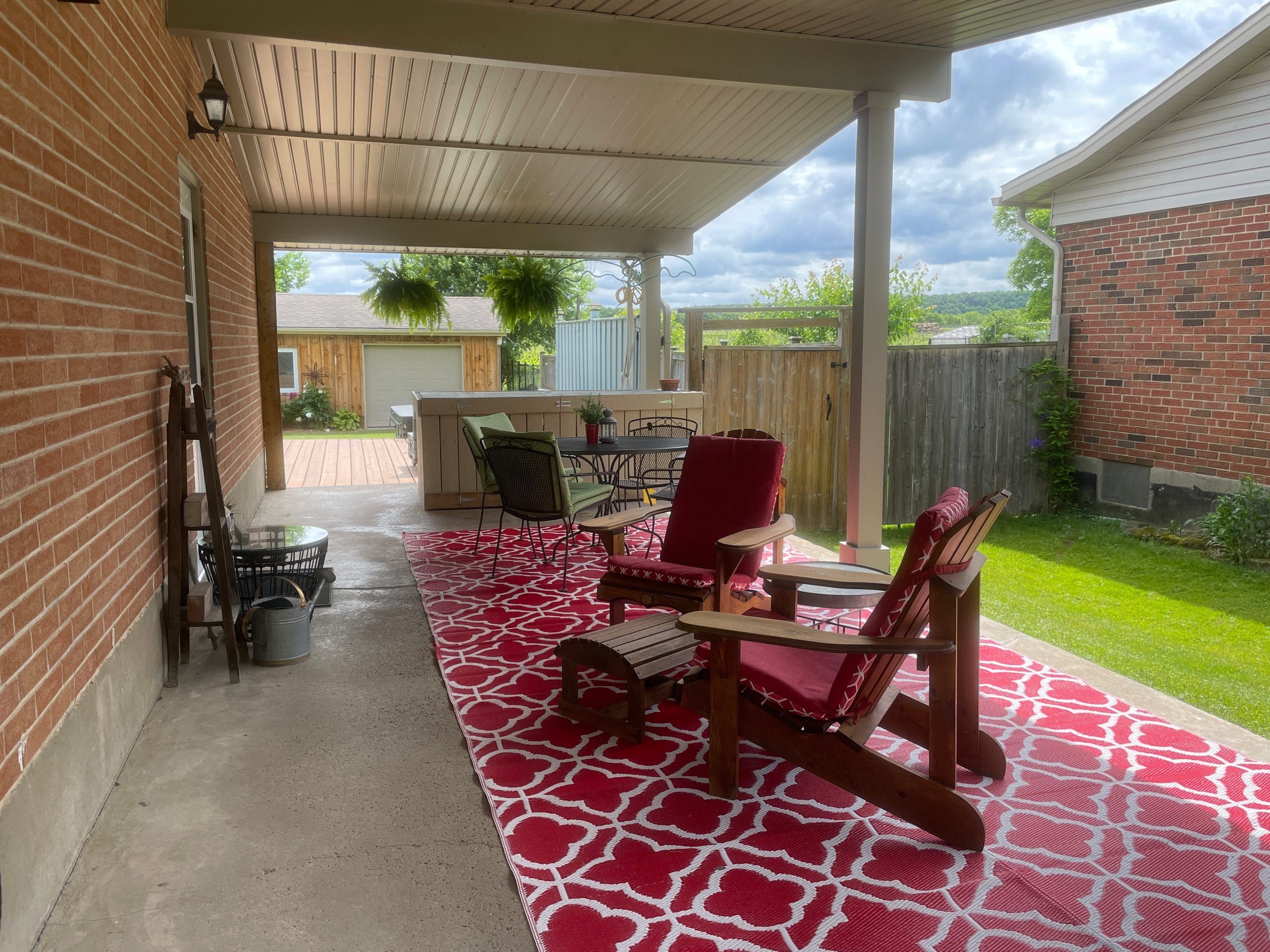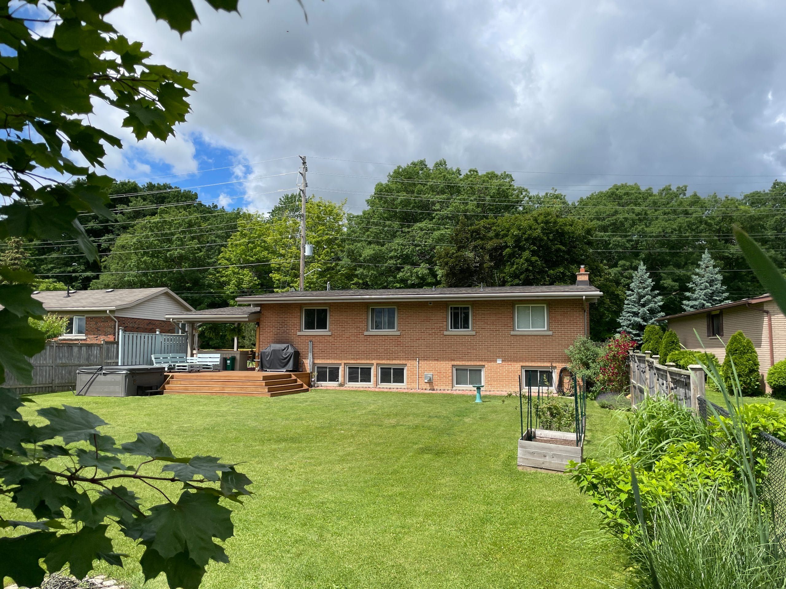 • Fenced backyard with deck, hot tub, and insulated outbuilding.