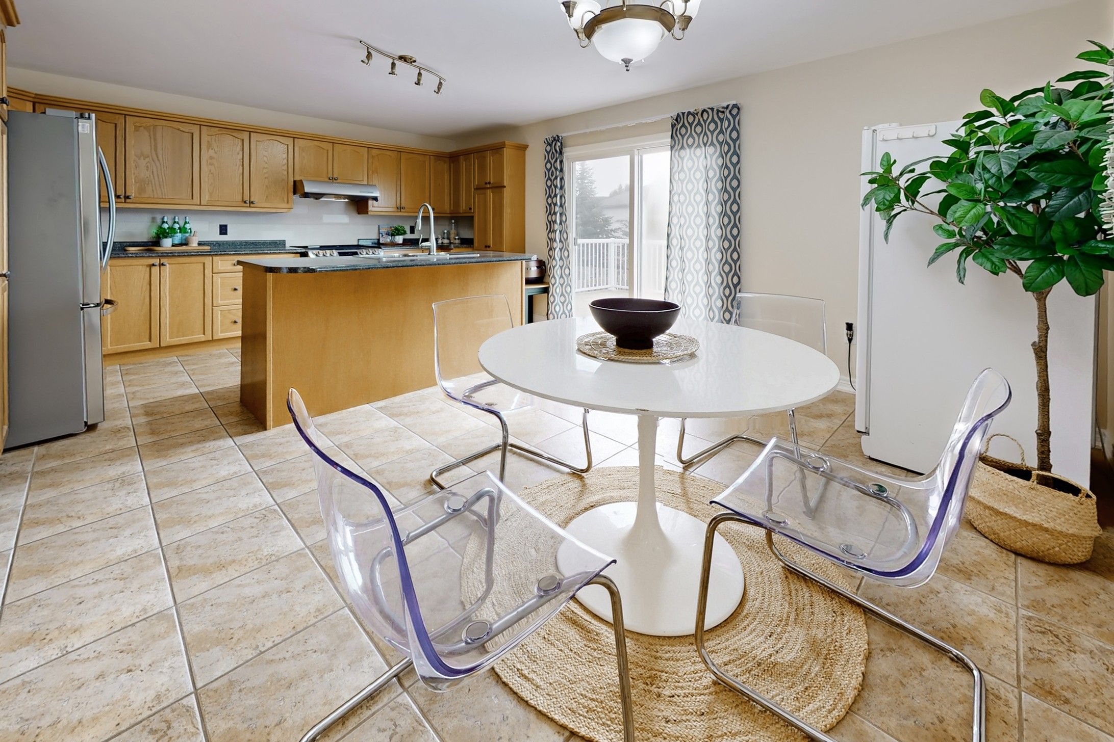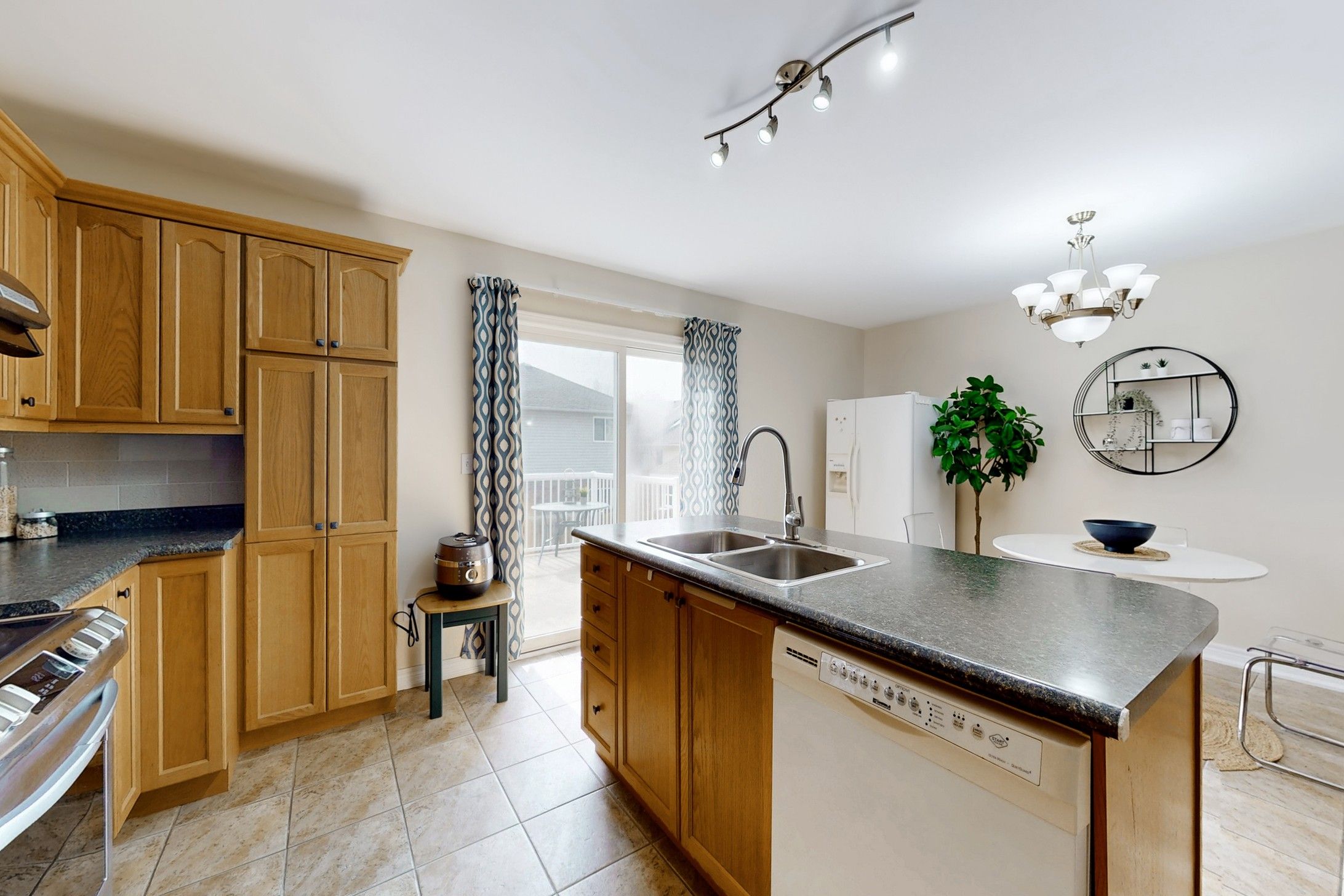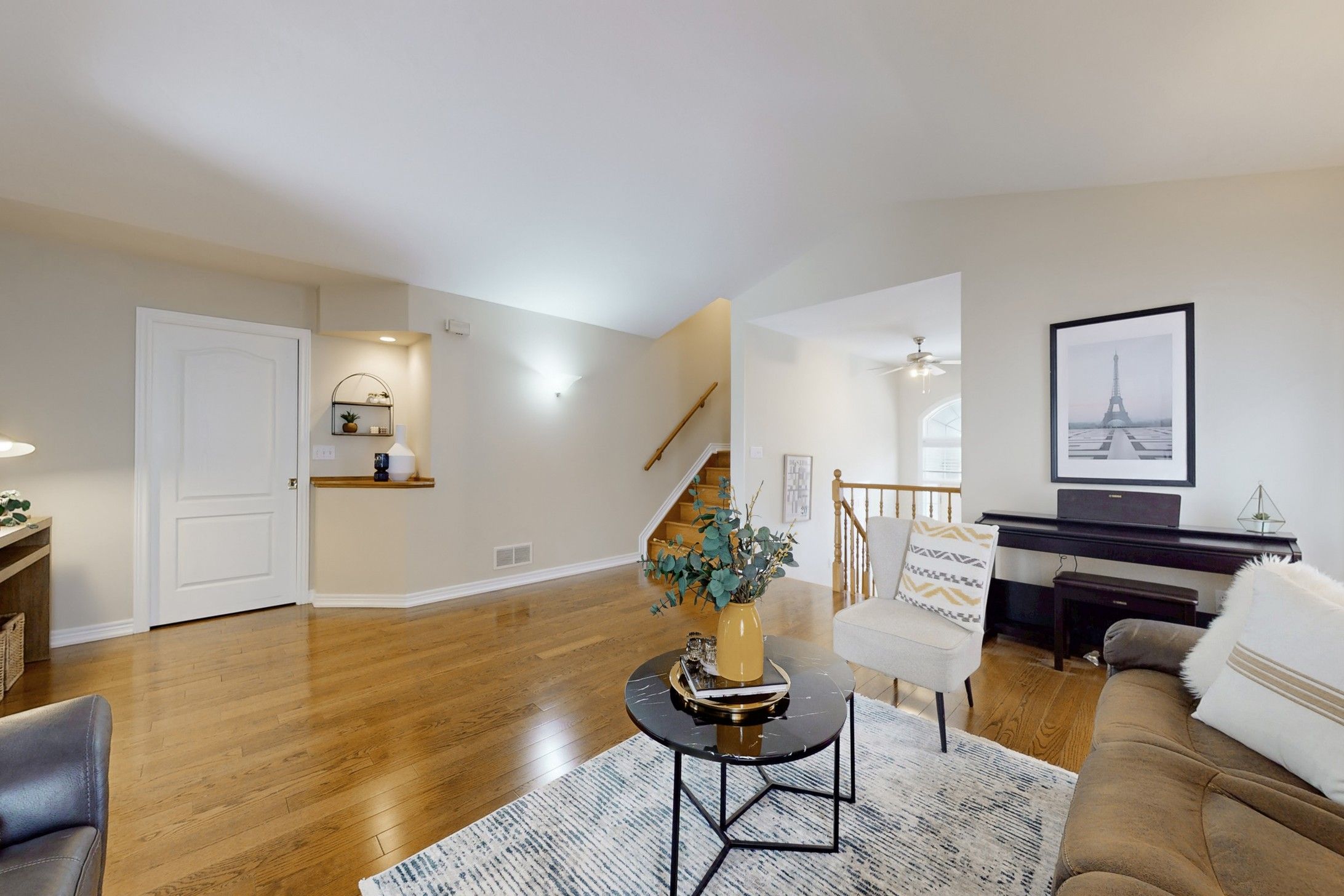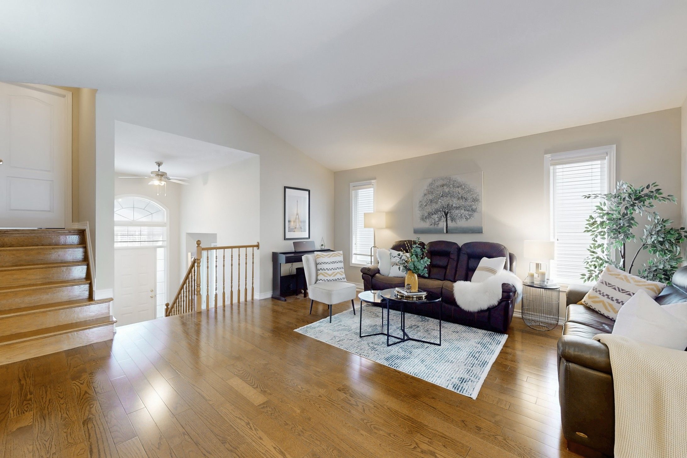 • Bright living room with a stunning cathedral ceiling for an airy feel.