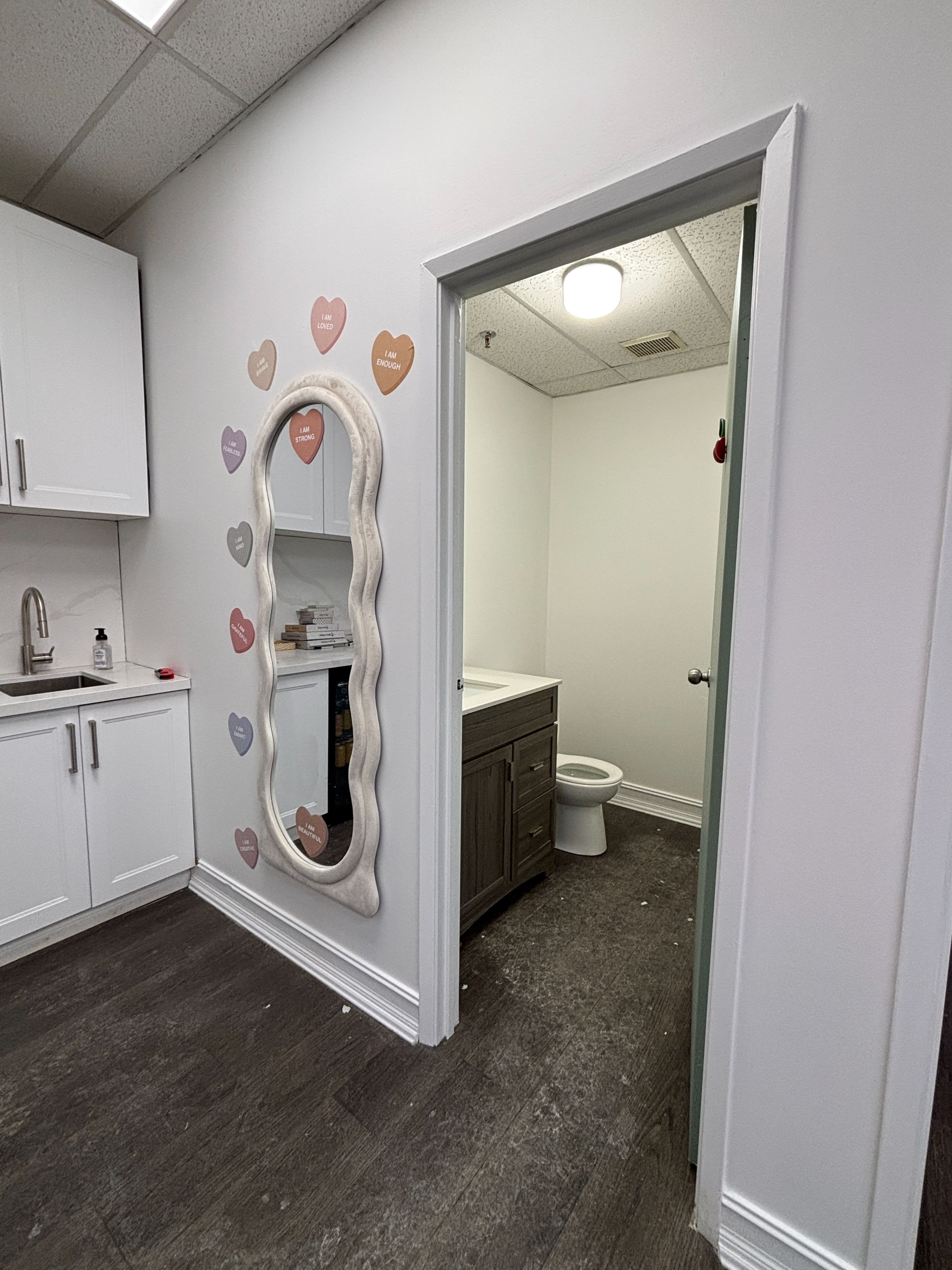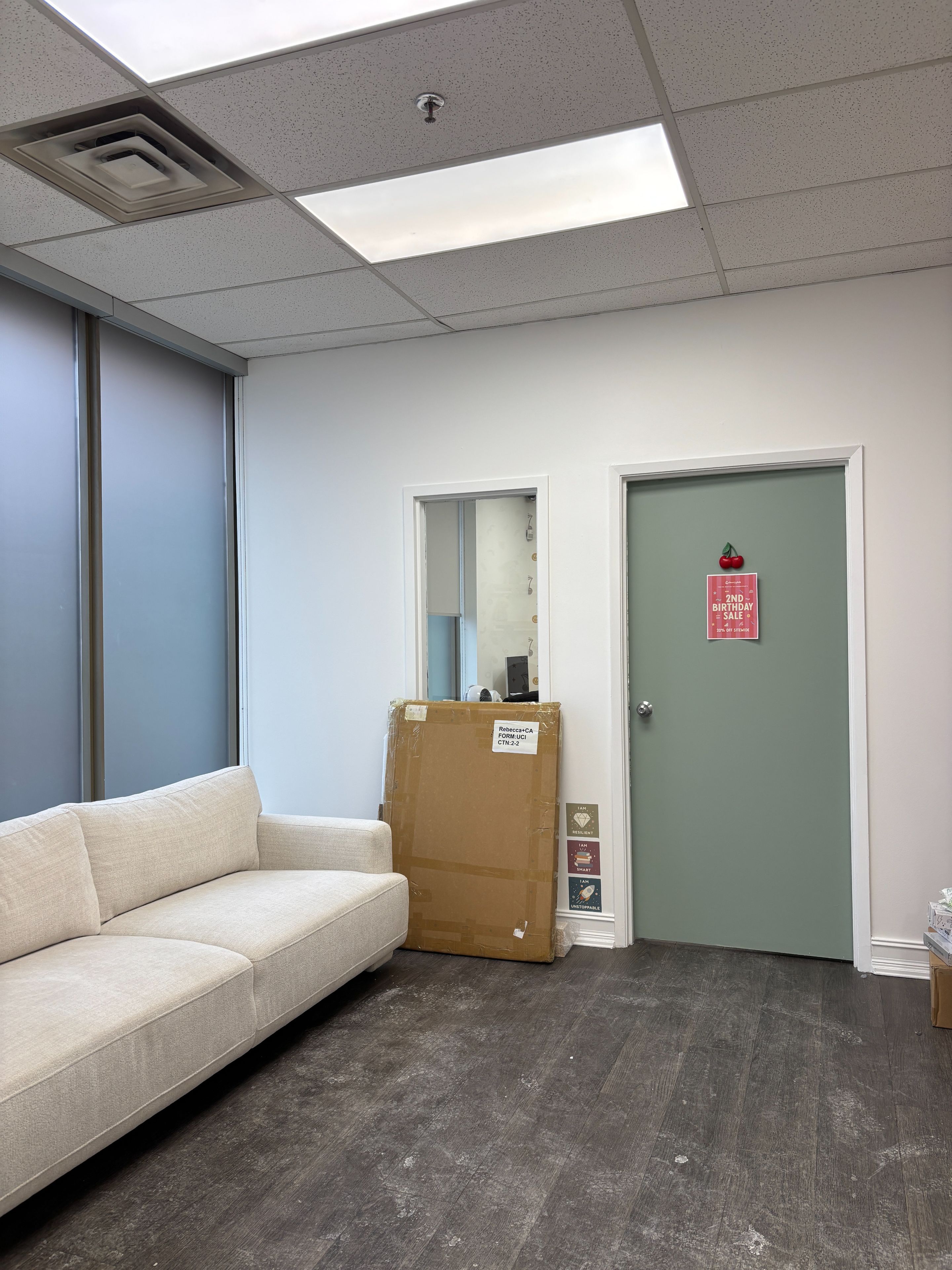 • Includes front office area, private office, and kitchenette.
