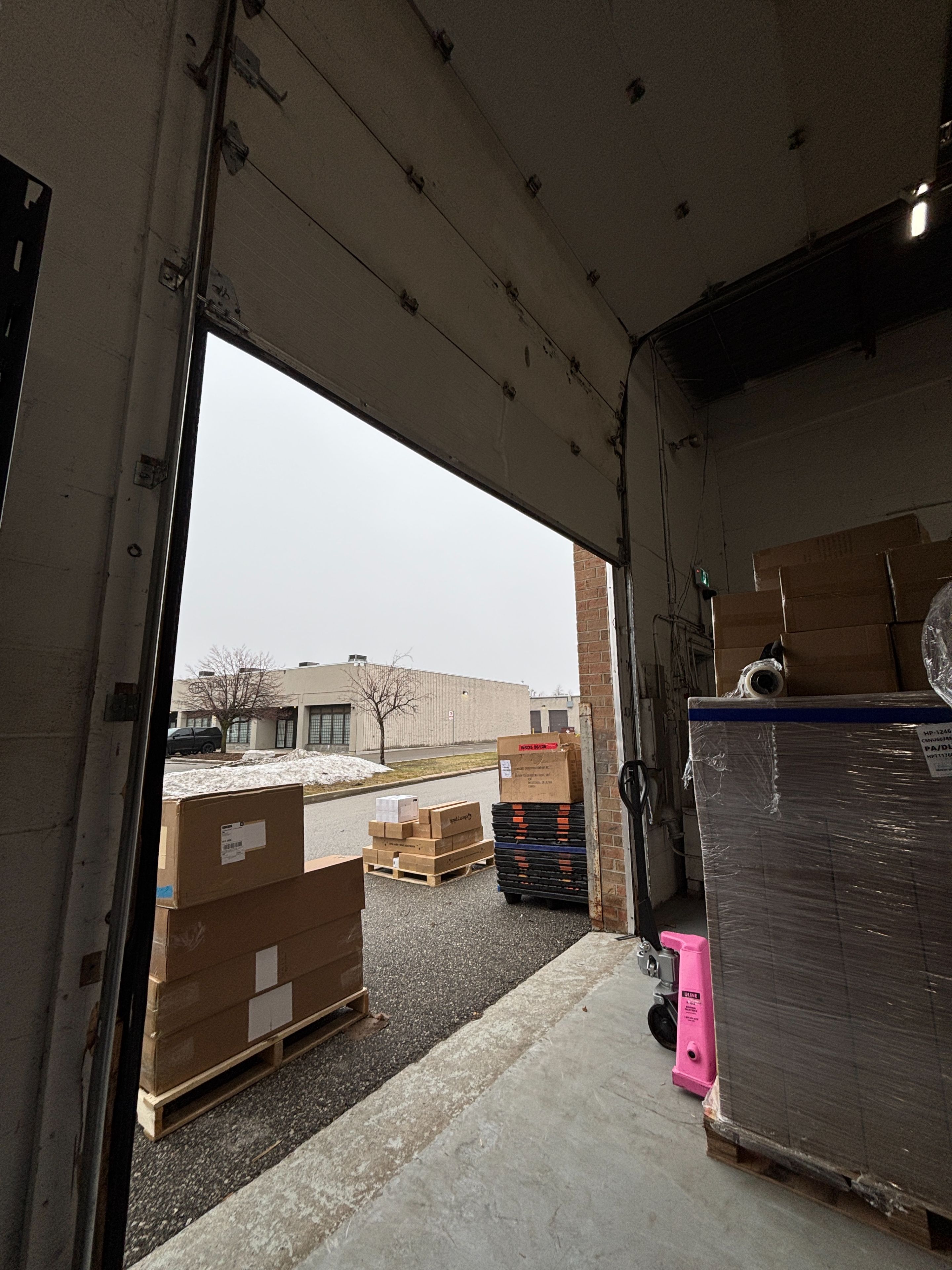 • Open warehouse with 16'2" clear height and a drive-in door.