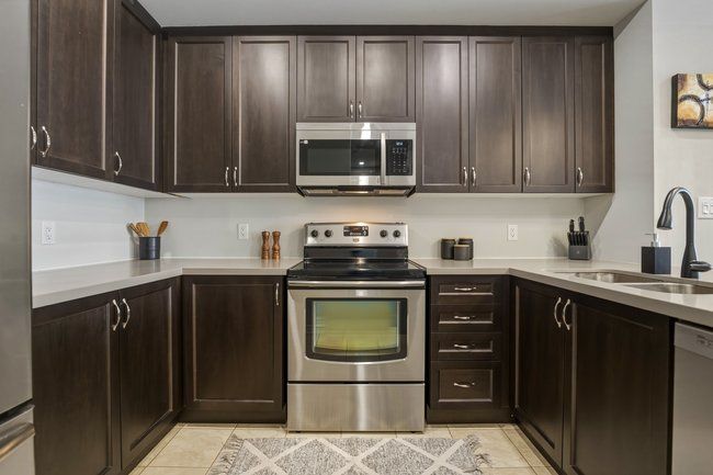 • Open kitchen and living area with nine-foot ceilings for a roomy feel.