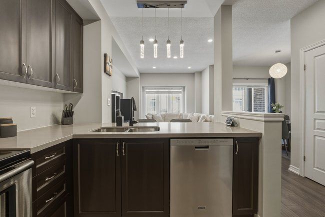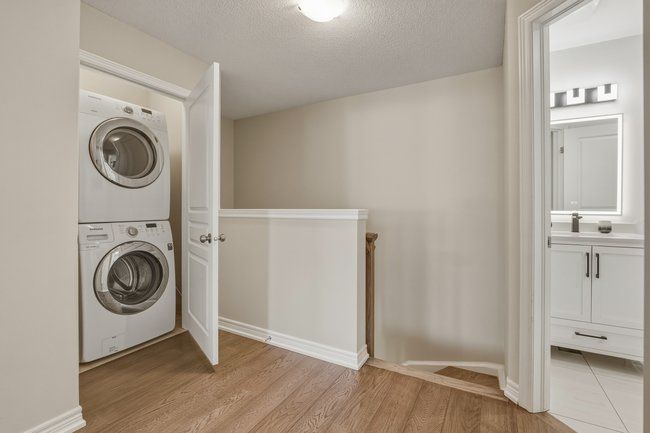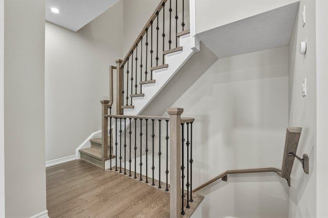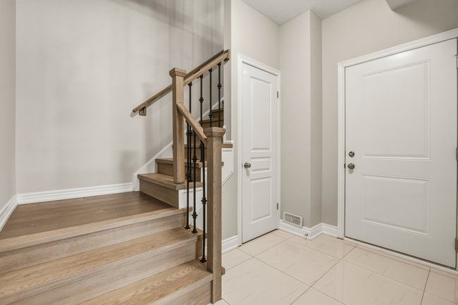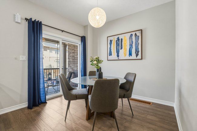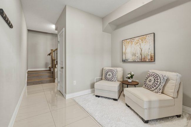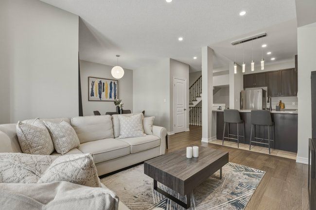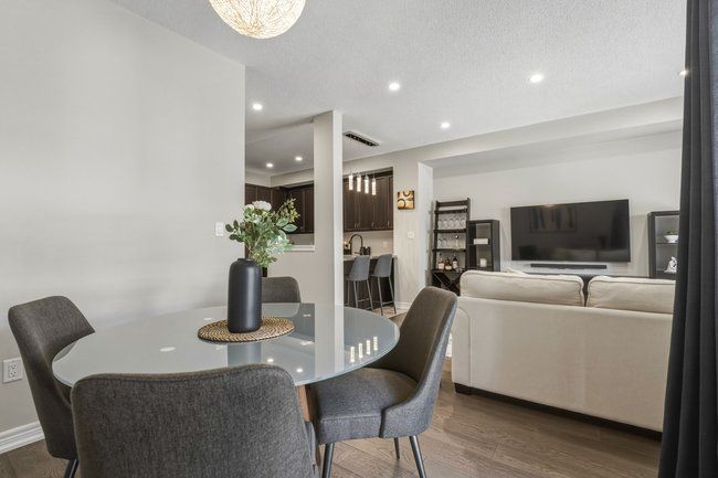Three-storey freehold townhome in one of burlington's most convenient locations, thoughtfully updated from top to bottom. Newer hardwood staircase with iron pickets, engineered hardwood on the second and third levels, renovated bathrooms, and smart home features including a nest thermostat, video doorbell, smart smoke detectors and smart lighting with dimmers throughout. The main level has a versatile den that works well as a home office or sitting area, plus a coat closet and access to the garage. Step upstairs to the second level where nine foot ceilings, pot lights, and an open kitchen, living, and dining area give the space a bigger feel. Glass patio doors lead out to a covered terrace. The kitchen has extended cabinetry, quartz countertops, stainless steel appliances, a new microwave, fresh dual sinks and black faucet, and a pantry with organizers. Head up to the third level and you've got two bedrooms, both with engineered hardwood, a primary suite with a walk-in closet with built-in organizers, and a fully renovated bathroom with an oversized shower, pierdeco designer column, quartz vanity, and black hardware. Laundry is on this level too with full-size washer and dryer. Tucked away in a quiet, private enclave yet right in the middle of everything burlington has to offer, top rated schools, parks, shopping, the qew, and appleby go are all minutes away. One car garage, owned furnace and ac. All you need to do is move in.
