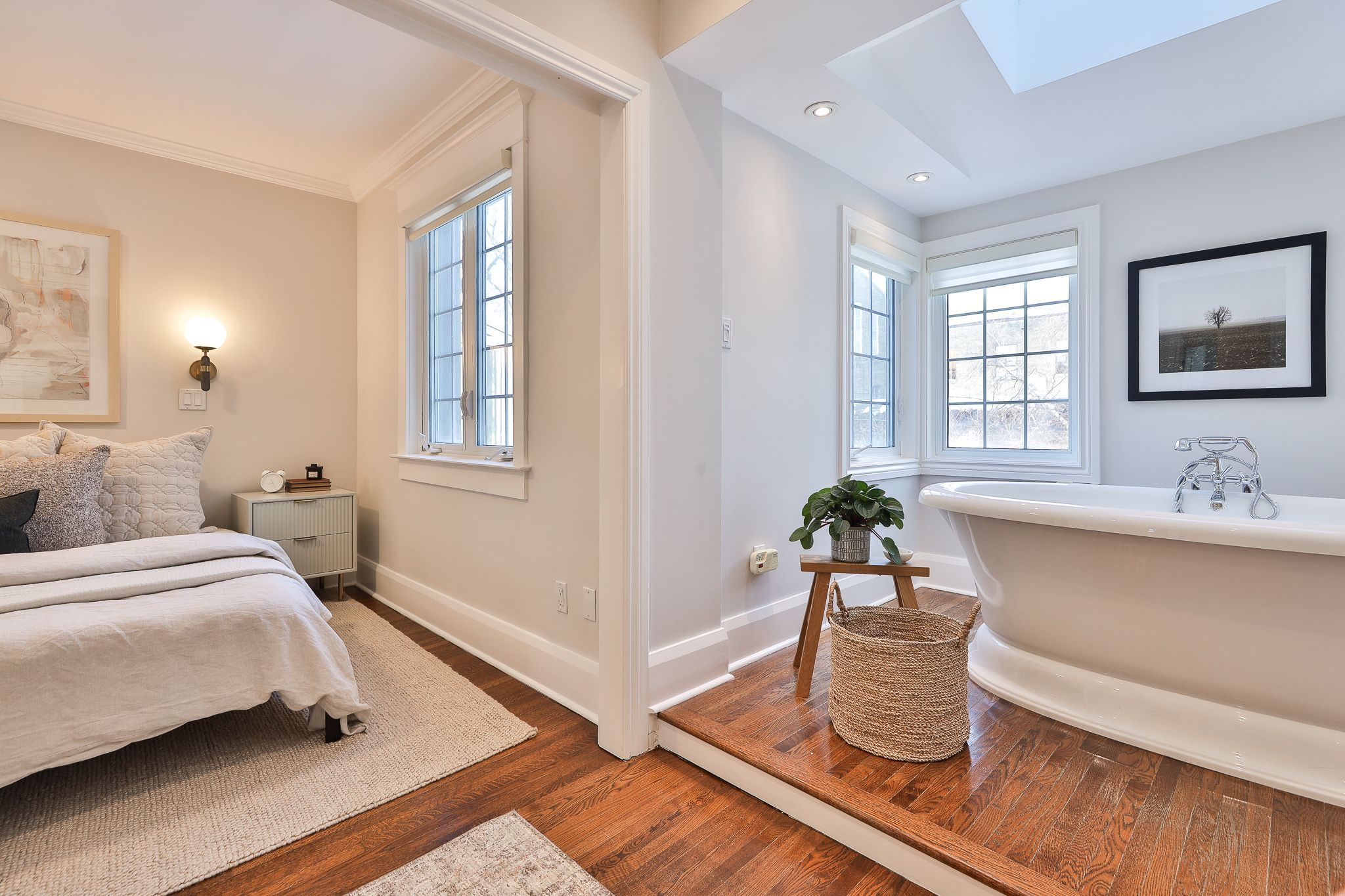 Discover this incredible bloor west village home. A handsome w-i-d-e semi that looks and feels like a detached home, set on one of the neighbourhood's most coveted streets. The heart of the home is the chef's kitchen and dining area; an epicurean's delight and natural gathering spot, perfect for entertaining family and friends, culinary exploration, or homework alike. A cook's dream with fresh quartz countertops, generous workspace, abundant storage, stainless steel appliances including an induction stove, all drenched in natural light and featuring a walk-out to the rear yard. Upstairs, the incredible primary suite overlooks the lush rear garden and boasts a walk-in closet, office nook, and a freestanding jacuzzi tub beneath a skylight; perfect for stargazing while you soak and unwind. The spectacular semi-ensuite offers double sinks, excellent storage, a glass shower, and classic marble finishes throughout. Two spacious front-facing bedrooms complete the second floor. The finished basement features a separate side entrance, media room, laundry, and a stylish 3-piece bathroom with heated floors. Professionally landscaped front and back gardens with a welcoming front porch; the perfect perch for watching sunsets. The tranquil, fully fenced backyard is the main summer attraction, ideal for bbq-ing, entertaining, or relaxing under the gazebo. Enjoy norman rockwell views overlooking beresford park, where families and dogs gather year-round and neighbours lace up in winter at the beloved outdoor skating rink (hats off to the community hosers!). Ideally located in the coveted tdsb catchment for runnymede ps and humberside ci. Steps to runnymede subway station and an easy stroll to bloor west village shops, restaurants, and everyday amenities. Everything you love, right at your doorstep!