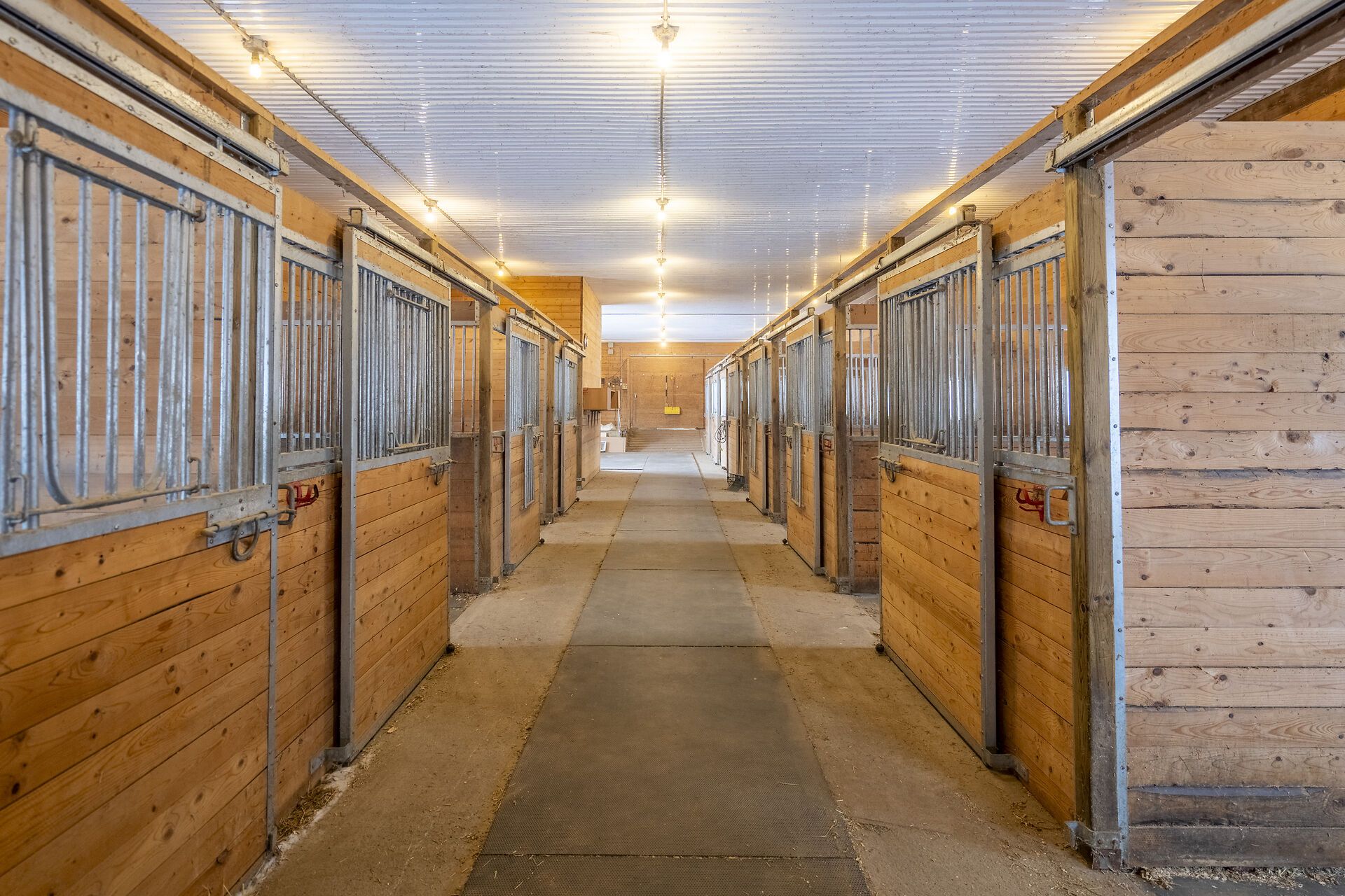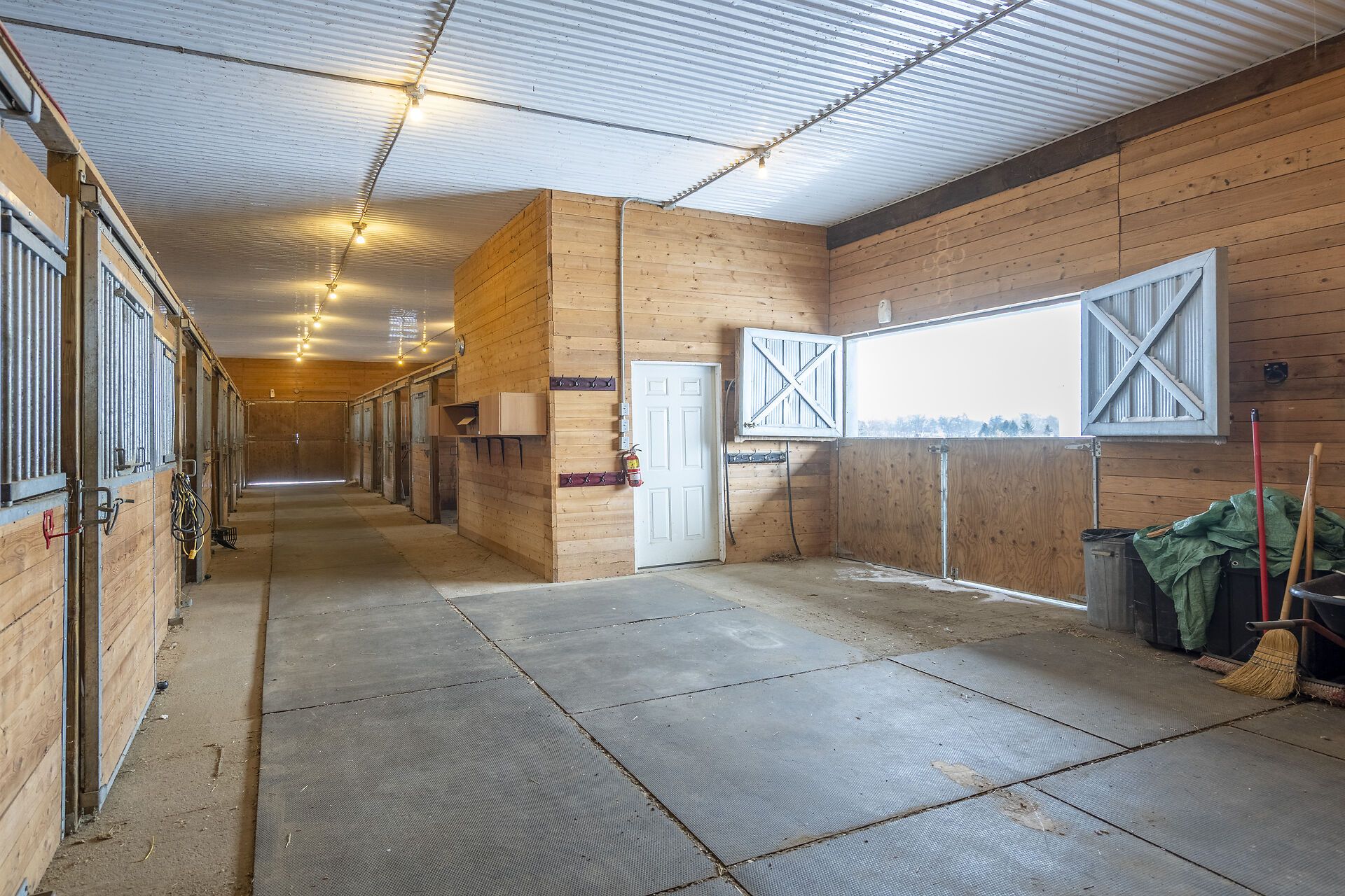 • Insulated horse barn featuring 11 stalls, tack room, and frost tap for water.